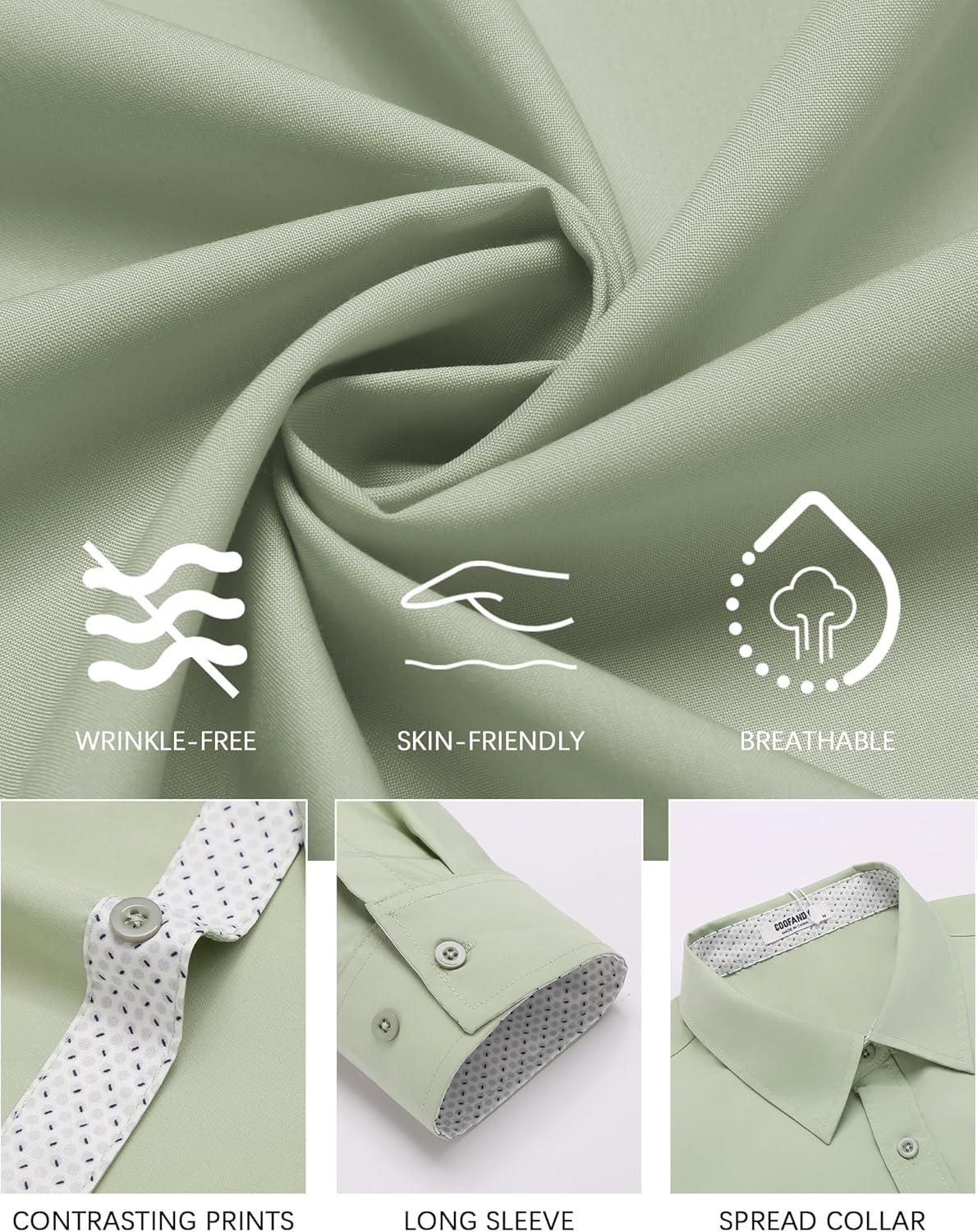 PREMIUM QUALITY MATERIAL:Crafted from breathable, lightweight, and micro-stretch fabric, our long sleeve button down dress shirts offer wrinkle-free wear and ultimate comfort. Whether you're at the office, a formal event, or a casual outing, these shirts ensure you stay cool and composed, even during the hottest days.