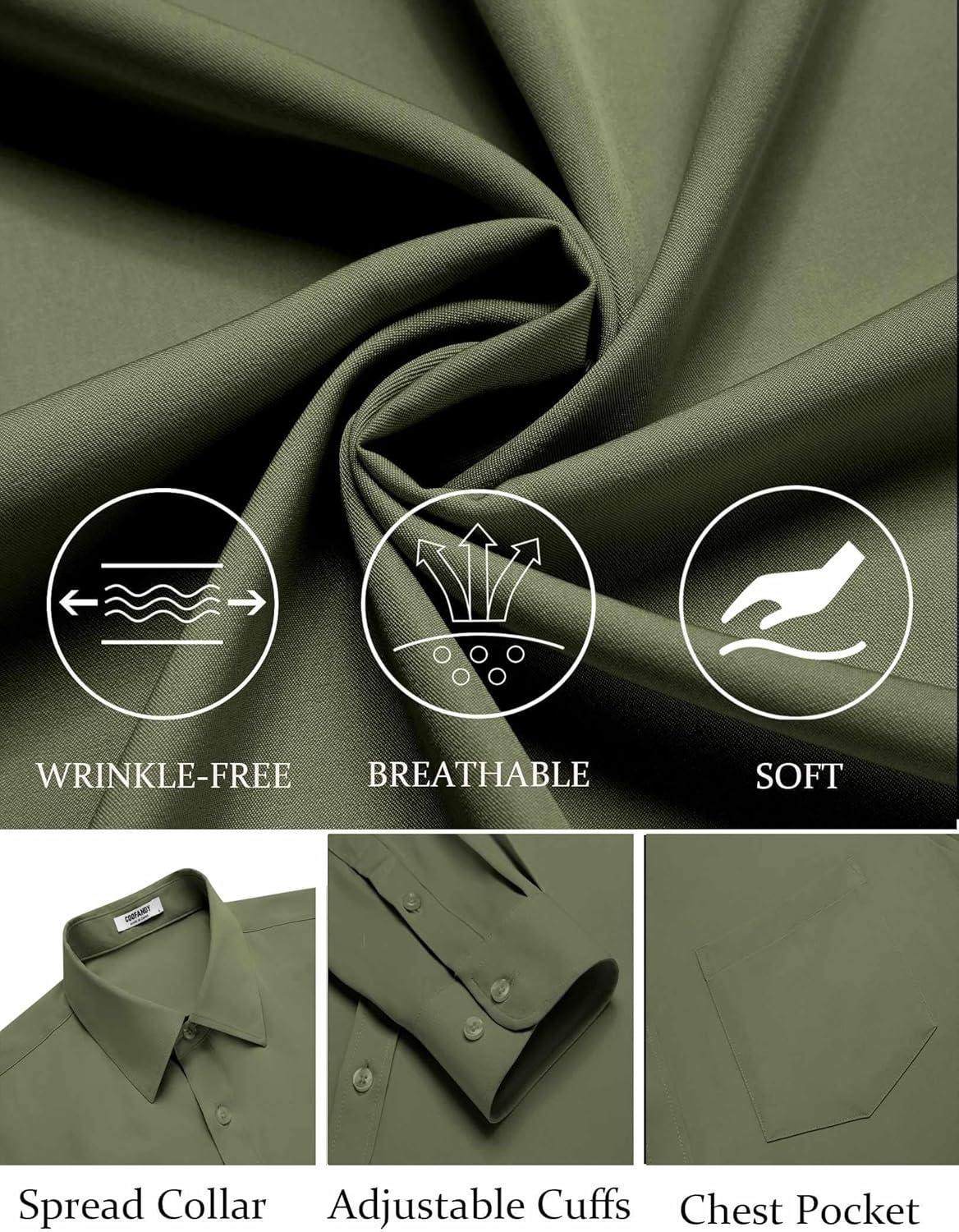 PREMIUM QUALITY MATERIAL:Crafted from breathable, lightweight, and micro-stretch fabric, our long sleeve button down dress shirts offer wrinkle-free wear and ultimate comfort. Whether you're at the office, a formal event, or a casual outing, these shirts ensure you stay cool and composed, even during the hottest days.