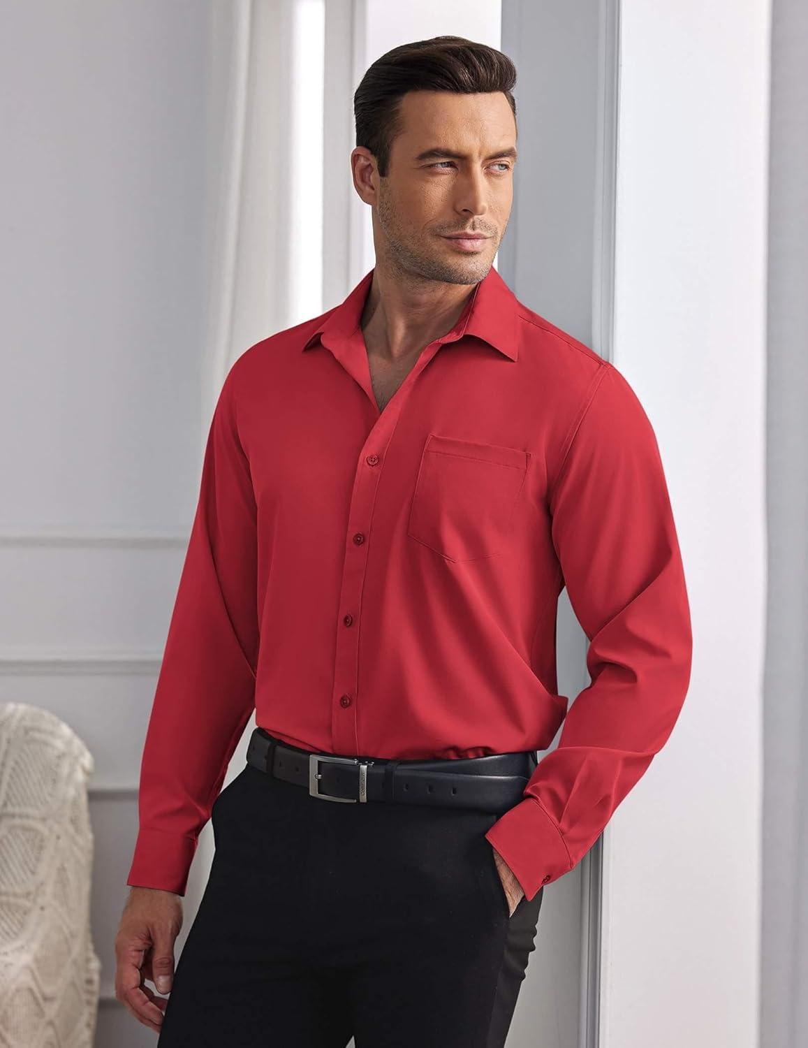 PREMIUM QUALITY MATERIAL:Crafted from breathable, lightweight, and micro-stretch fabric, our long sleeve button down dress shirts offer wrinkle-free wear and ultimate comfort. Whether you're at the office, a formal event, or a casual outing, these shirts ensure you stay cool and composed, even during the hottest days.