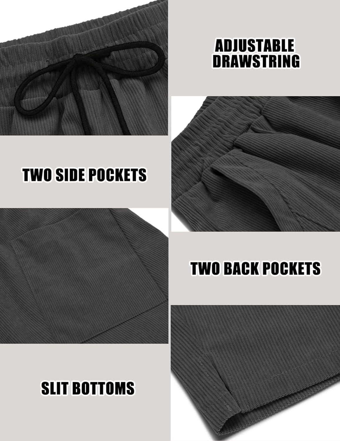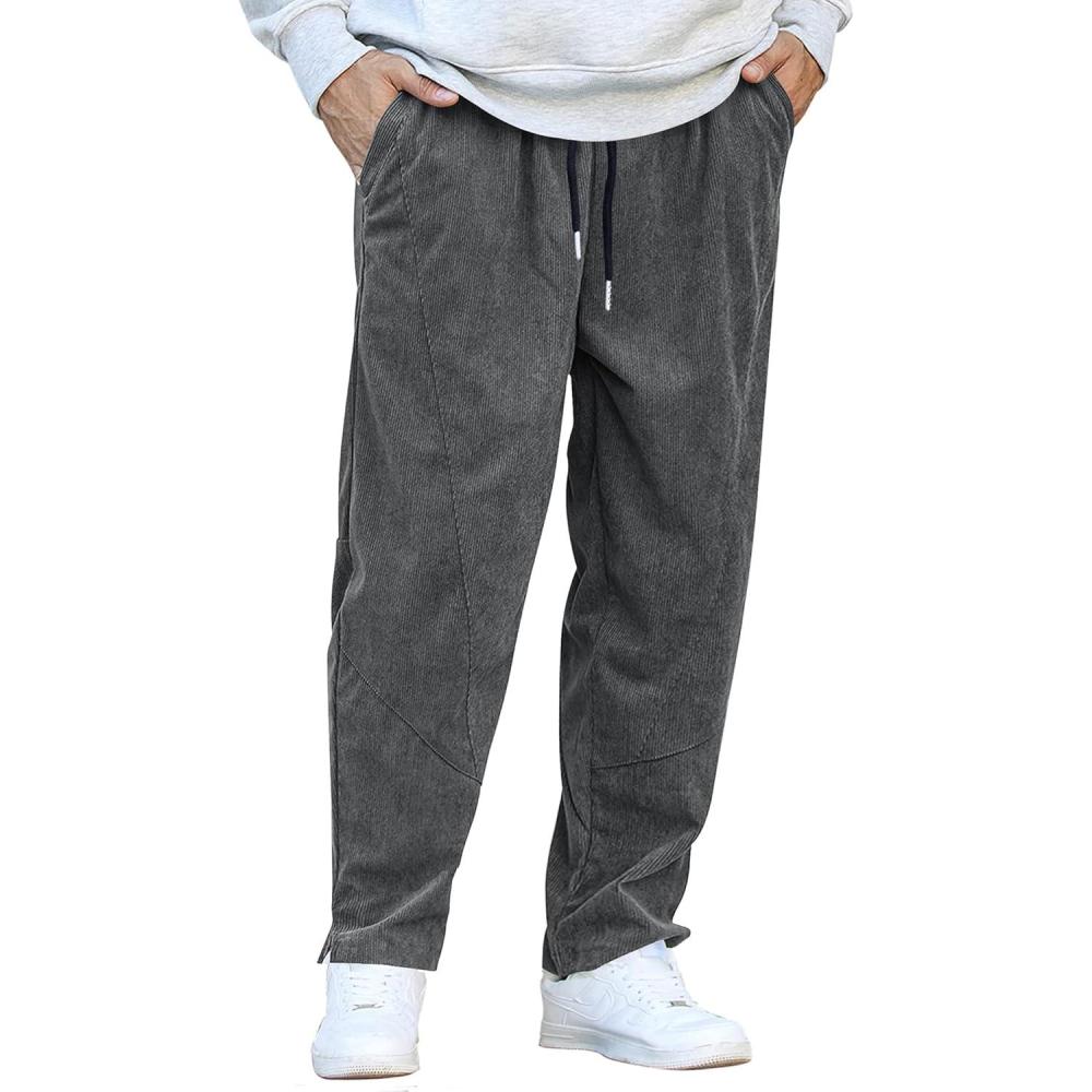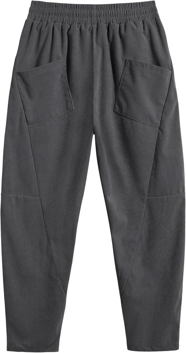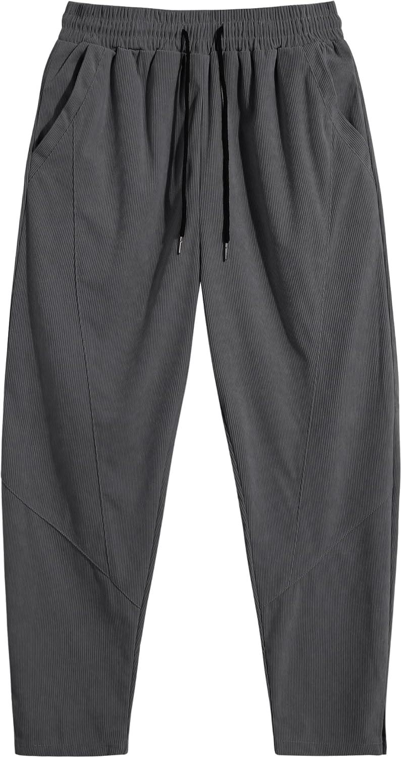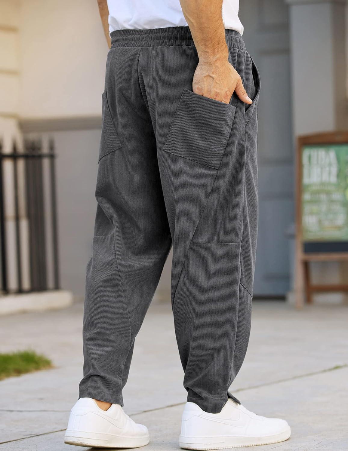 COOFANDY Men’s Corduroy Pants Elastic Waist Drawstring Harem Pants Fashion Loose Casual Long Trousers with 4 Pockets(Dark Grey)
