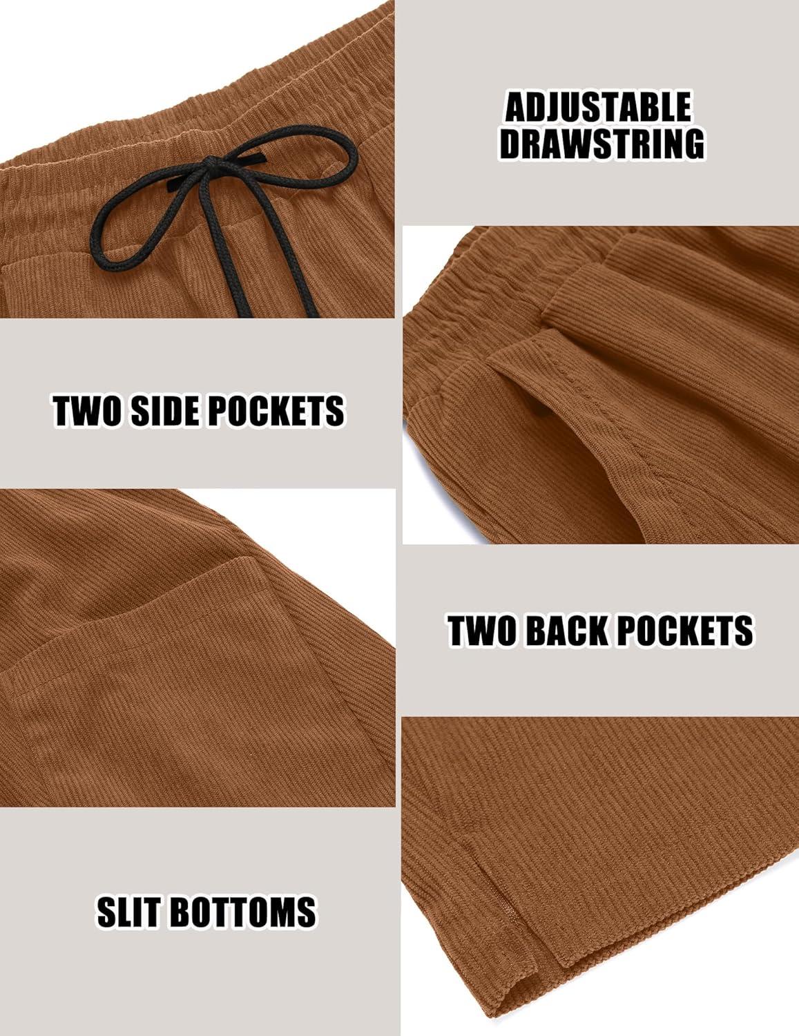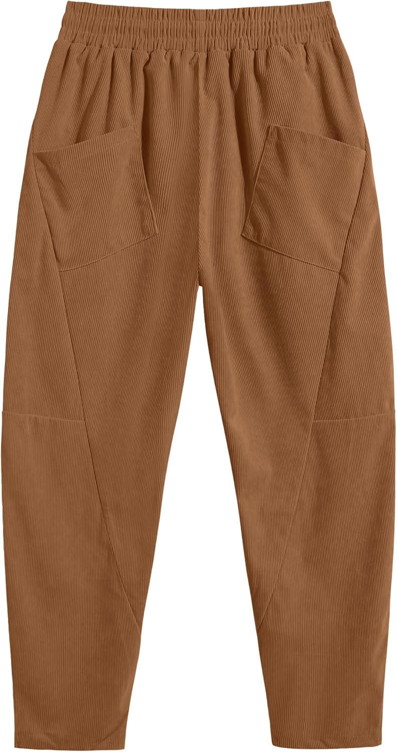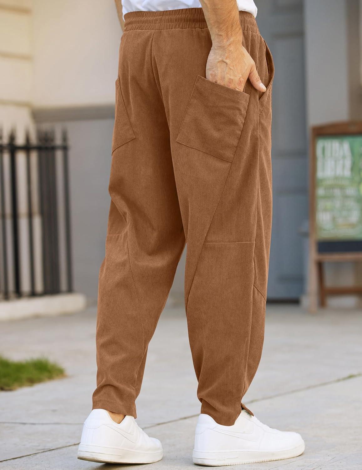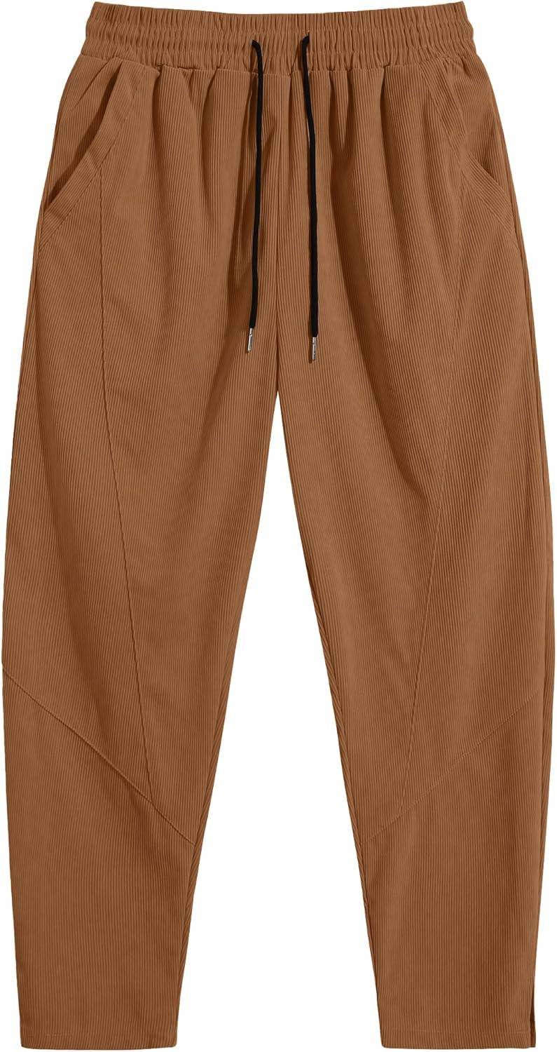 COOFANDY Men’s Corduroy Pants Elastic Waist Drawstring Harem Pants Fashion Loose Casual Long Trousers with 4 Pockets(Light Brown)