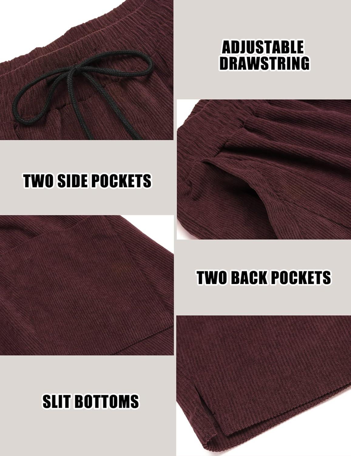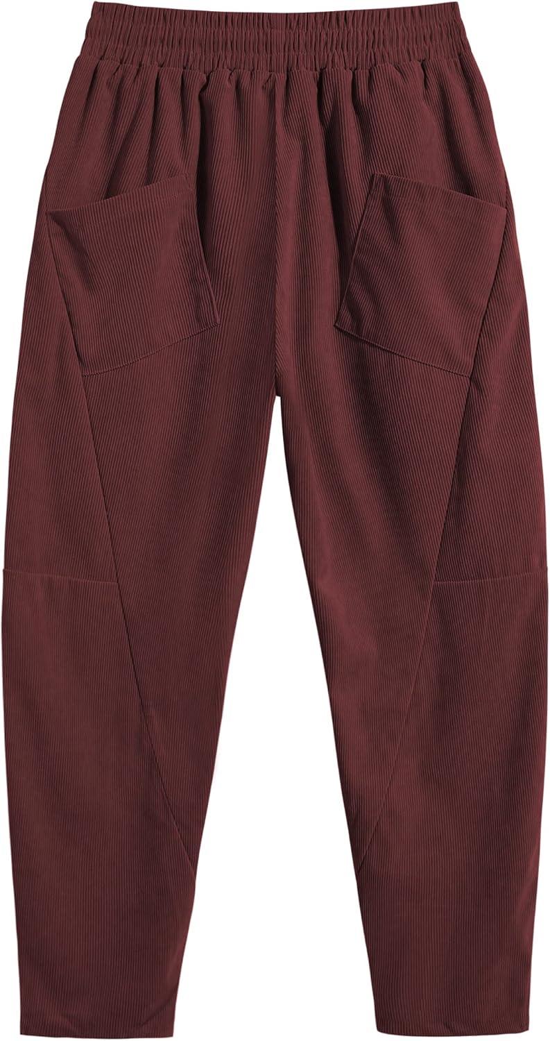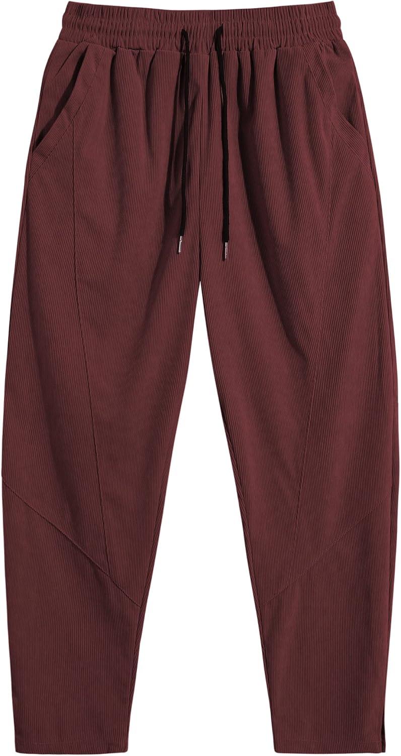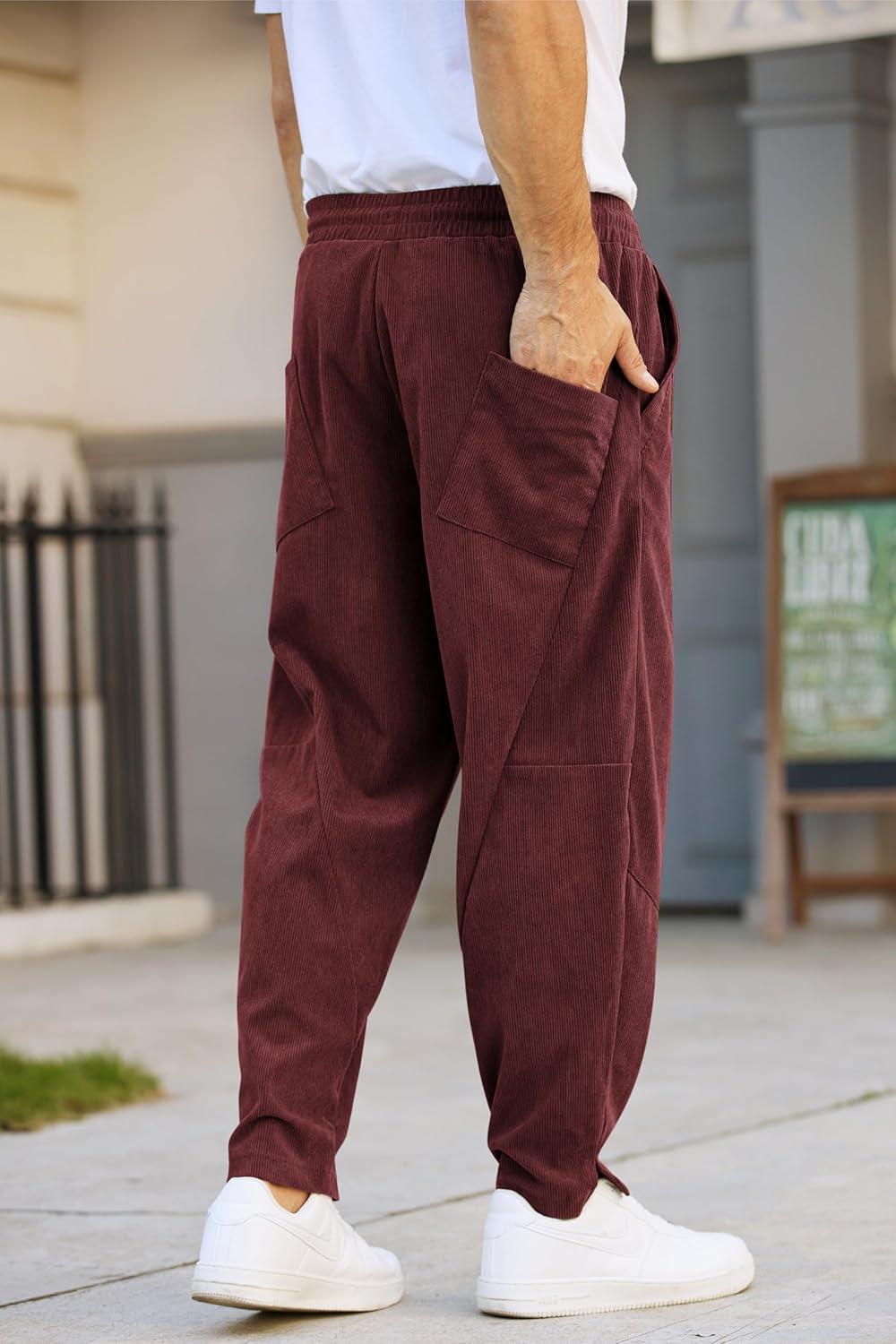 COOFANDY Men’s Corduroy Pants Elastic Waist Drawstring Harem Pants Fashion Loose Casual Long Trousers with 4 Pockets(Wine Red)