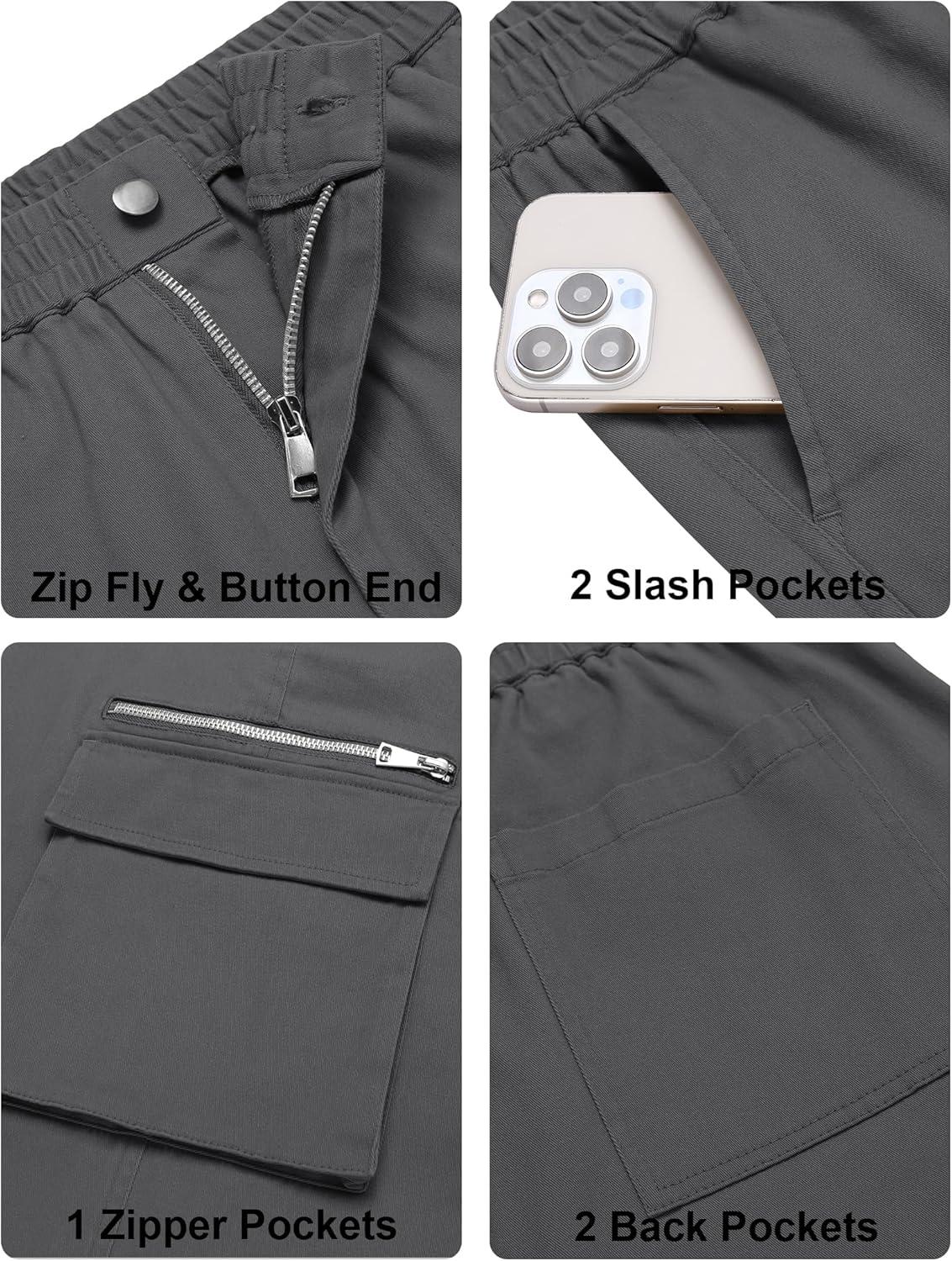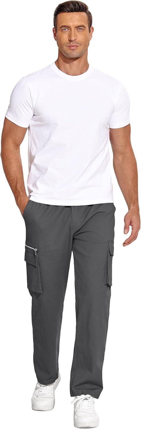 COOFANDY Men’s Cotton Cargo Pants Relaxed Fit Elastic Waist Casual Pants Stretch Work Cargo Pant with Pockets(Dark Grey)