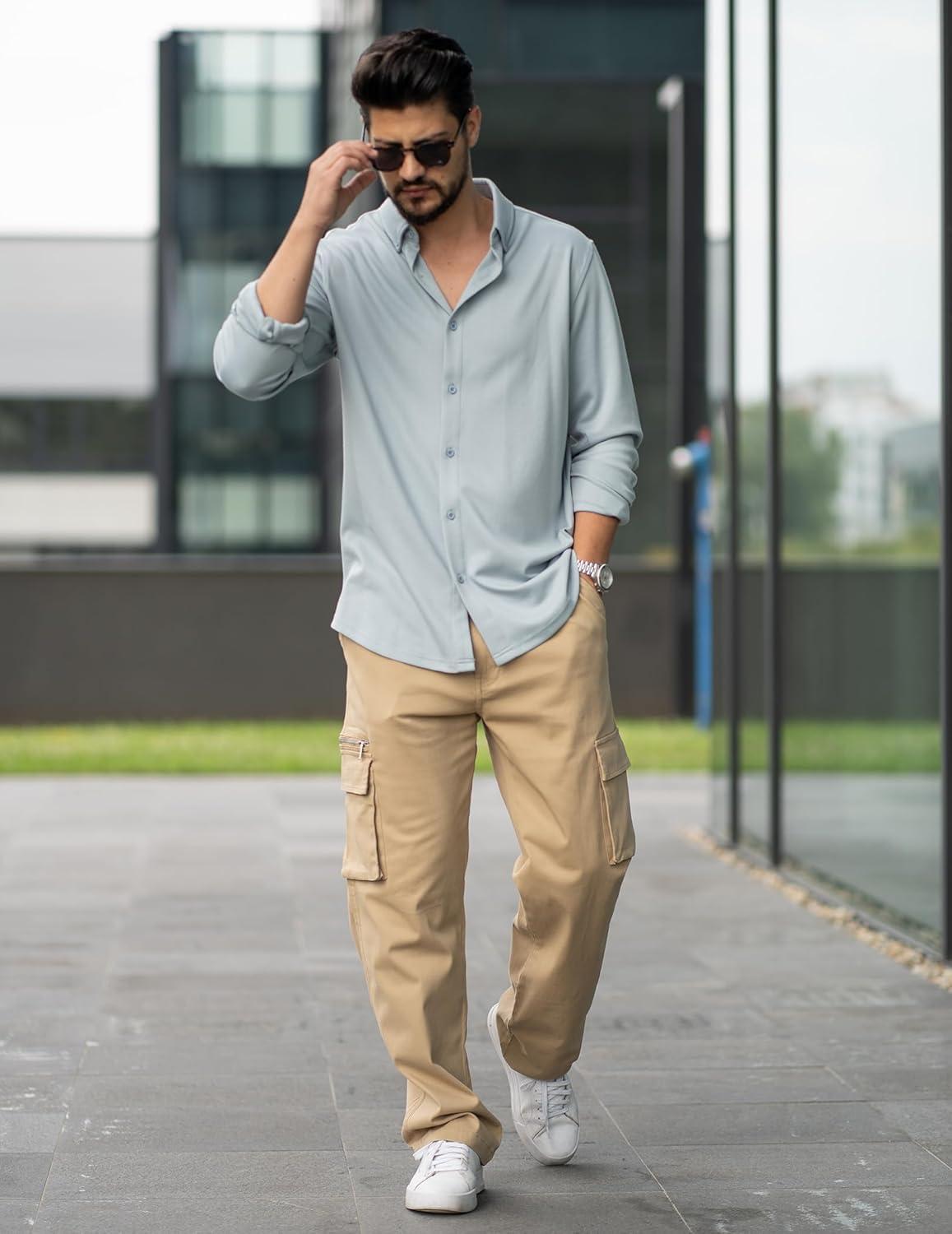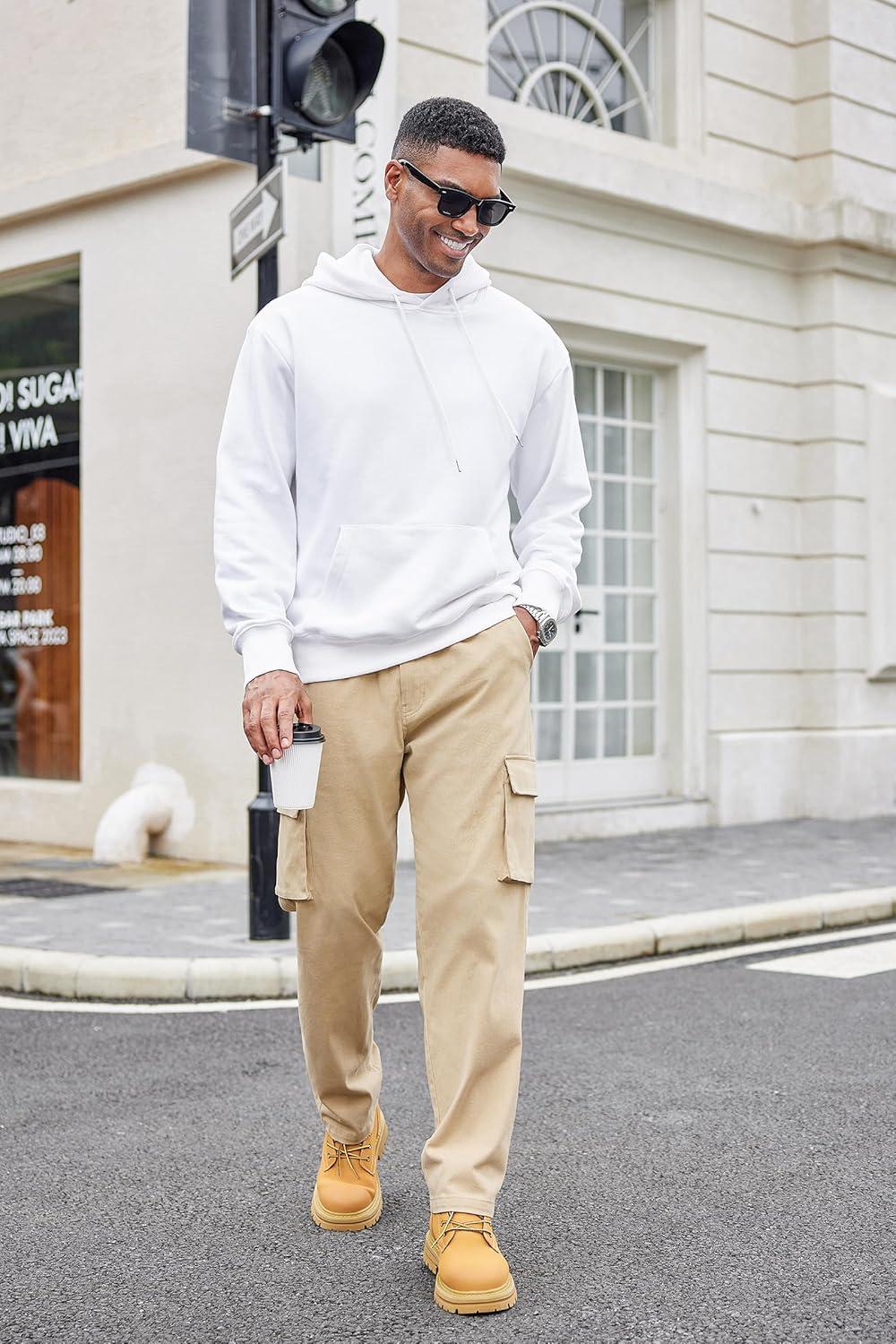 COOFANDY Men’s Cotton Cargo Pants Relaxed Fit Elastic Waist Casual Pants Stretch Work Cargo Pant with Pockets(Light Khaki)