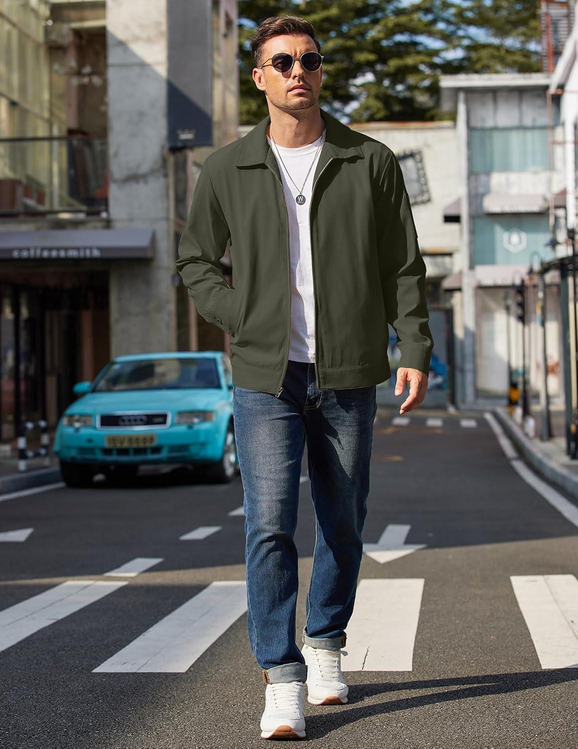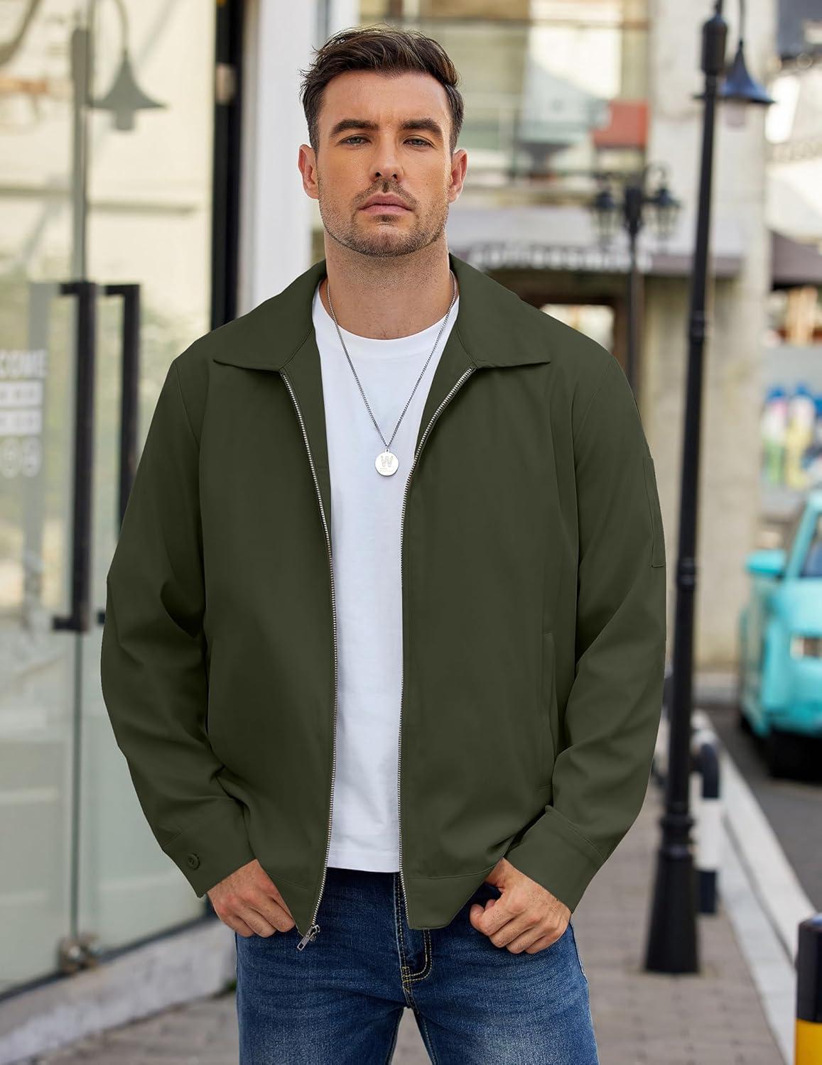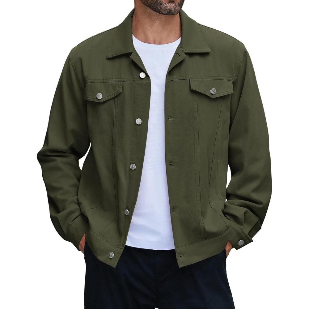 COOFANDY Men’s Cotton Denim Jacket Lightweight Trucker Western Jackets Casual Fashion Jean Coat(Army Green)