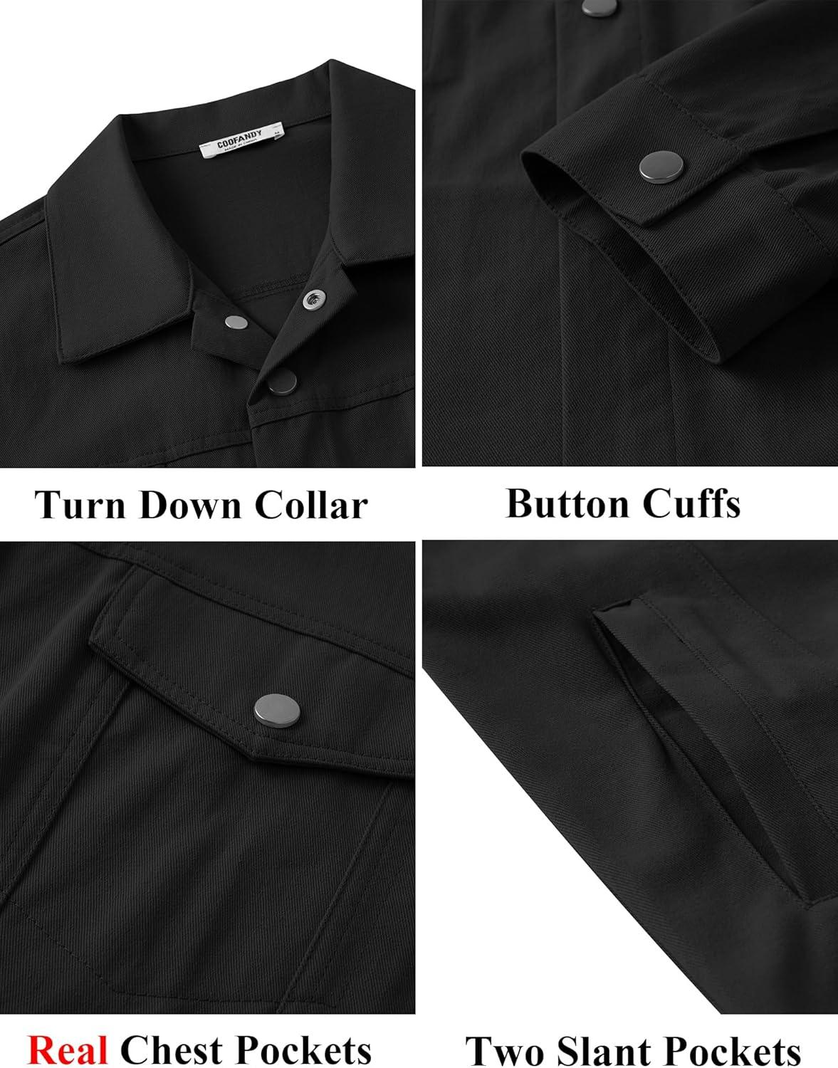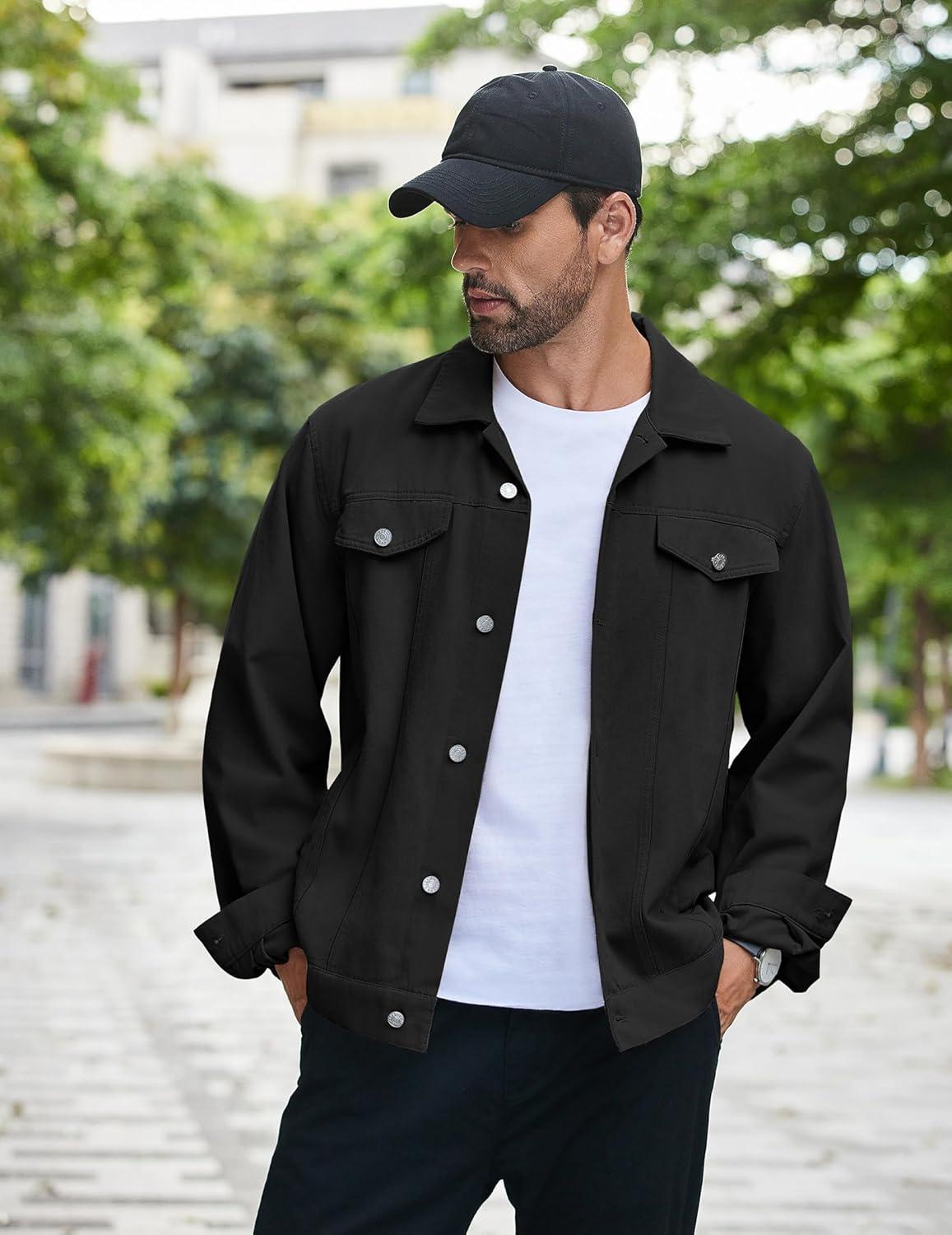 COOFANDY Men’s Cotton Denim Jacket Lightweight Trucker Western Jackets Casual Fashion Jean Coat(Black)