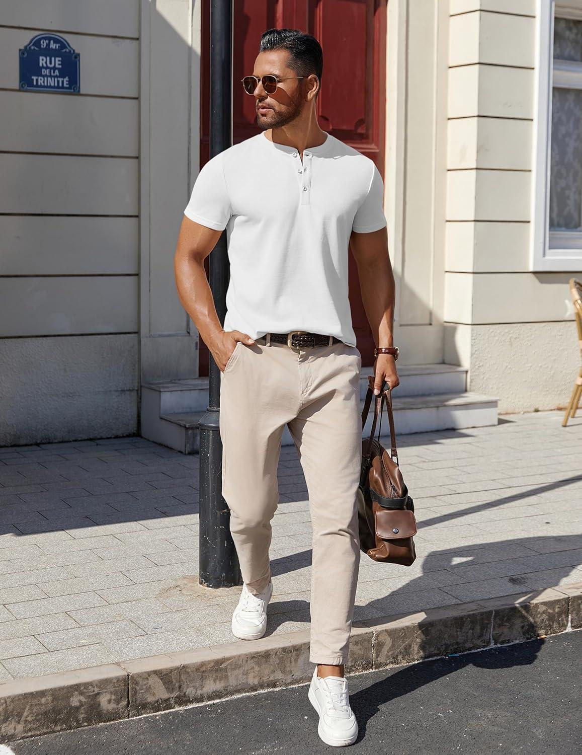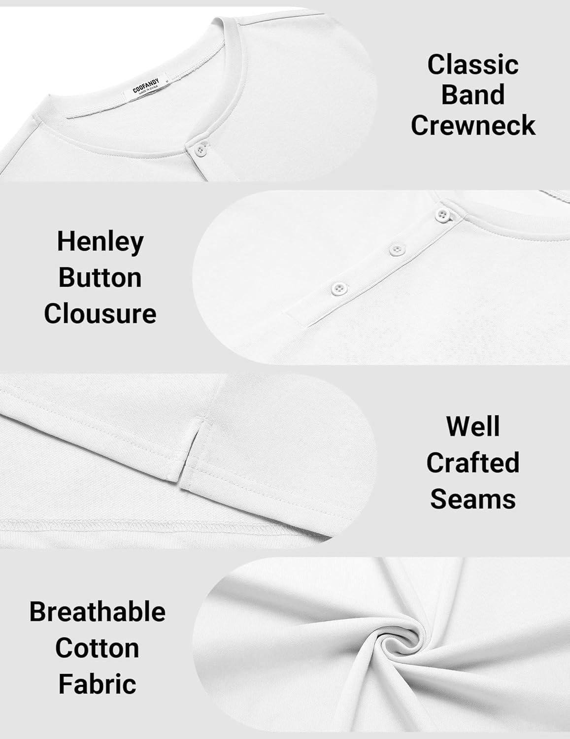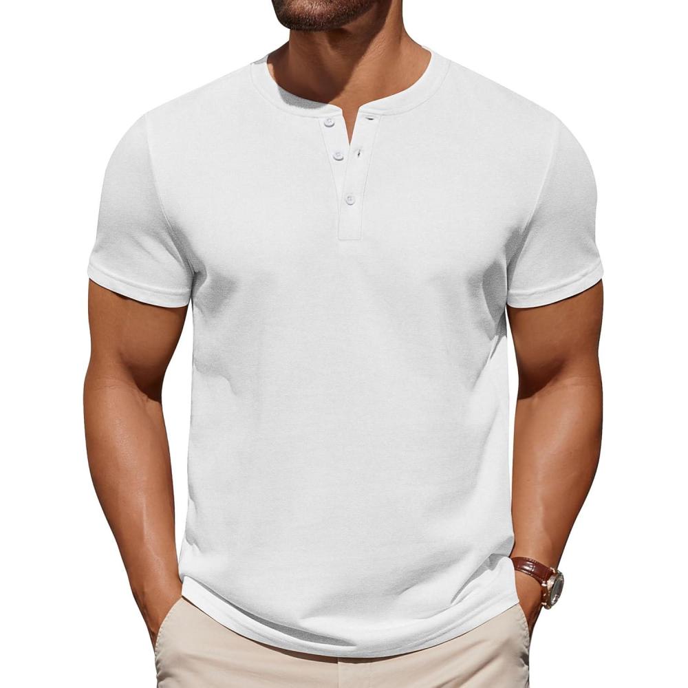 COOFANDY Mens Cotton Henley T-Shirts Short Sleeve Button Casual Basic Tees Work Shirts with Split Side(All White)