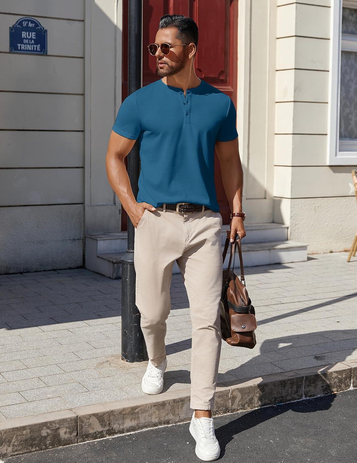 Be the first to review “COOFANDY Mens Cotton Henley T-Shirts Short Sleeve Button Casual Basic Tees Work Shirts with Split Side(Denim Blue)” Cancel reply