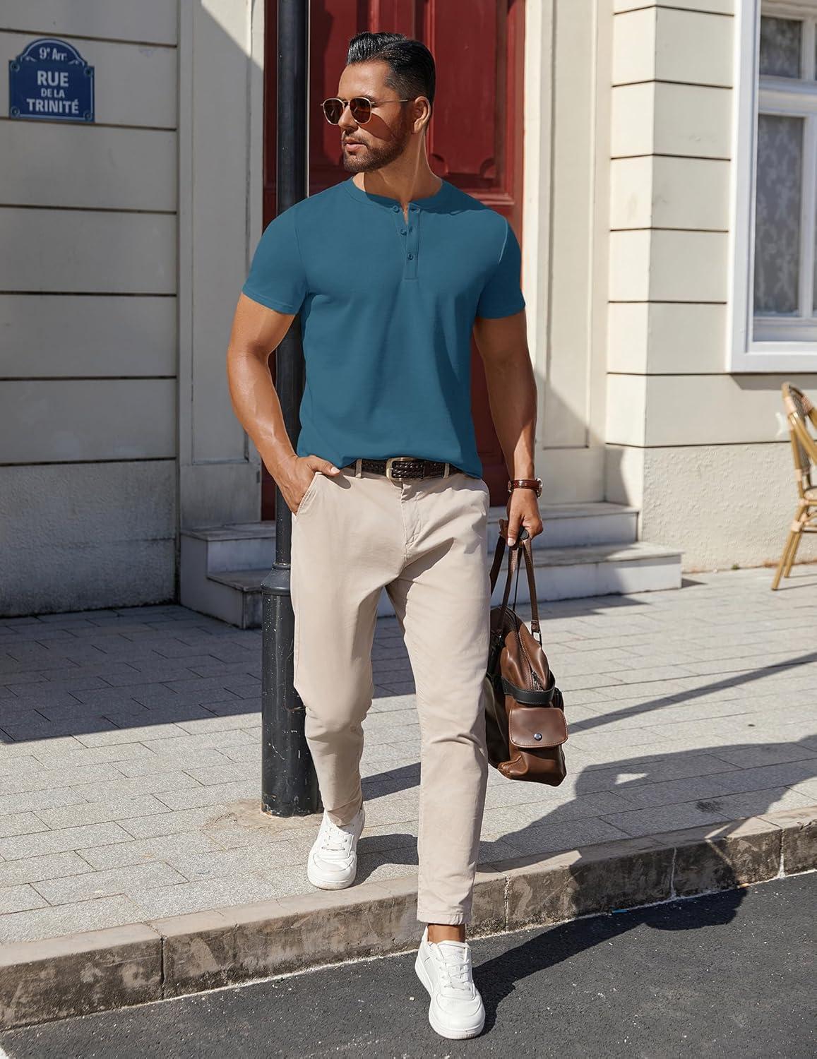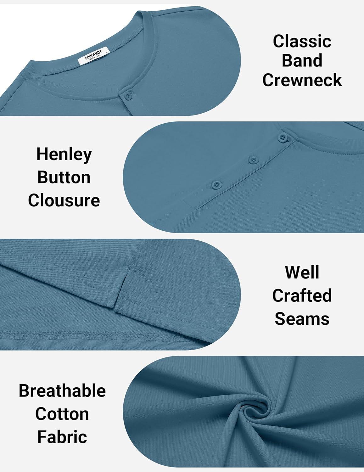 COOFANDY Mens Cotton Henley T-Shirts Short Sleeve Button Casual Basic Tees Work Shirts with Split Side(Grey Blue)