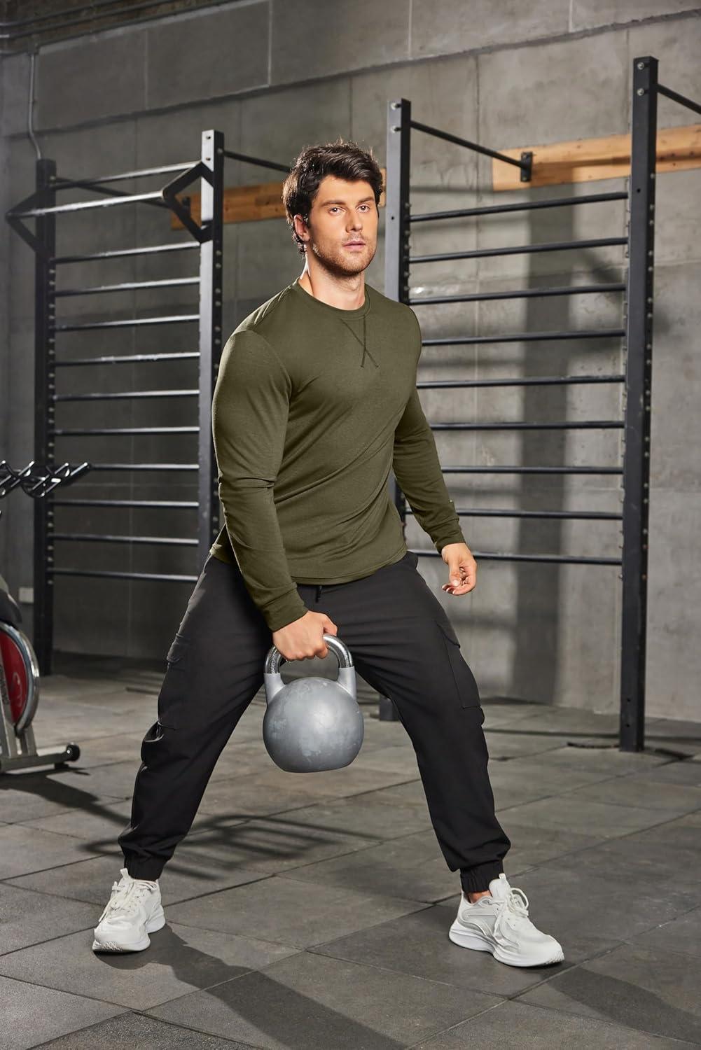 COOFANDY Mens Cotton Hipster Hip Hop Longline Crewneck T Shirts Casual Long Sleeve Tees Curved Hem Gym Shirts(One Piece- Army Green)