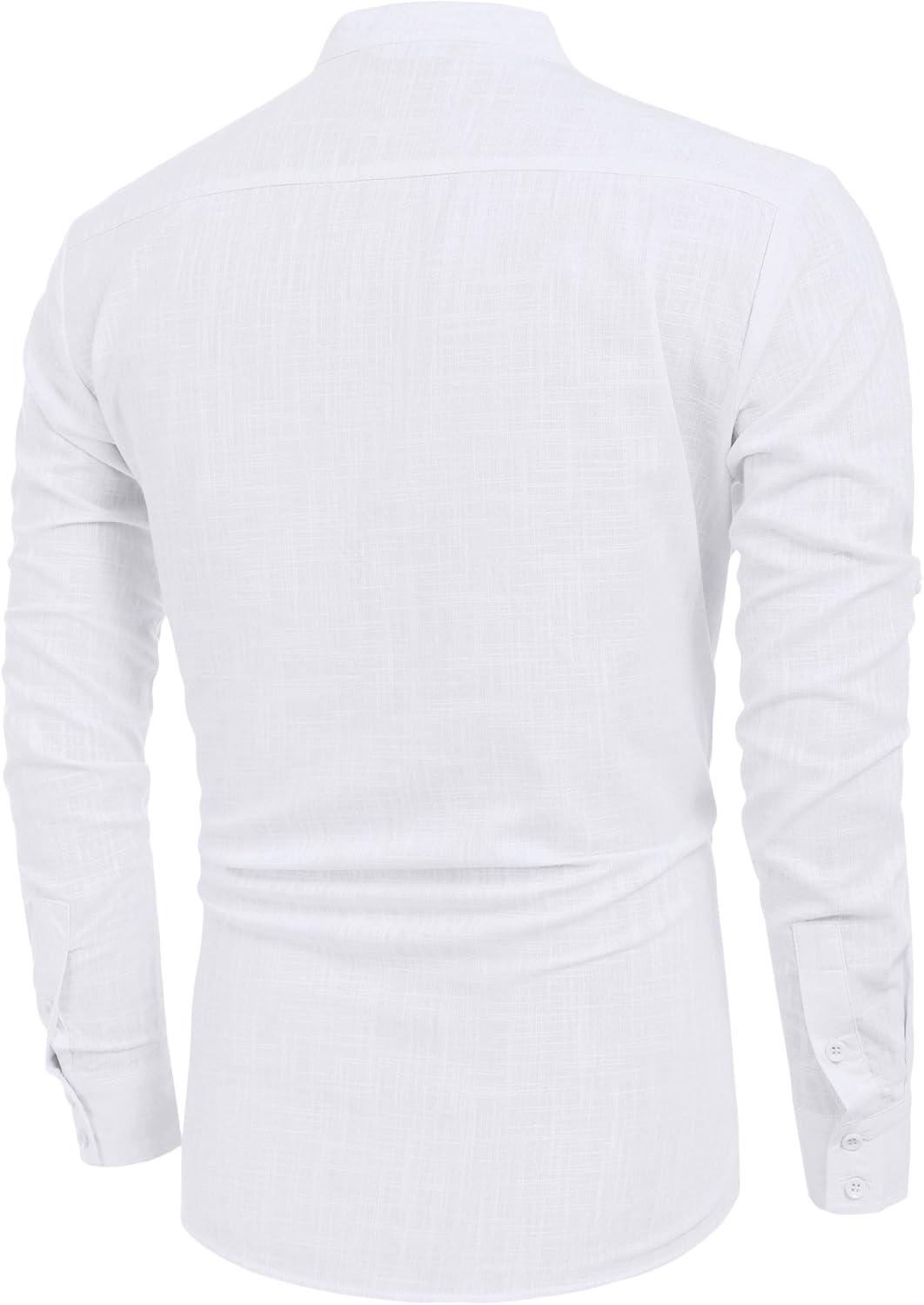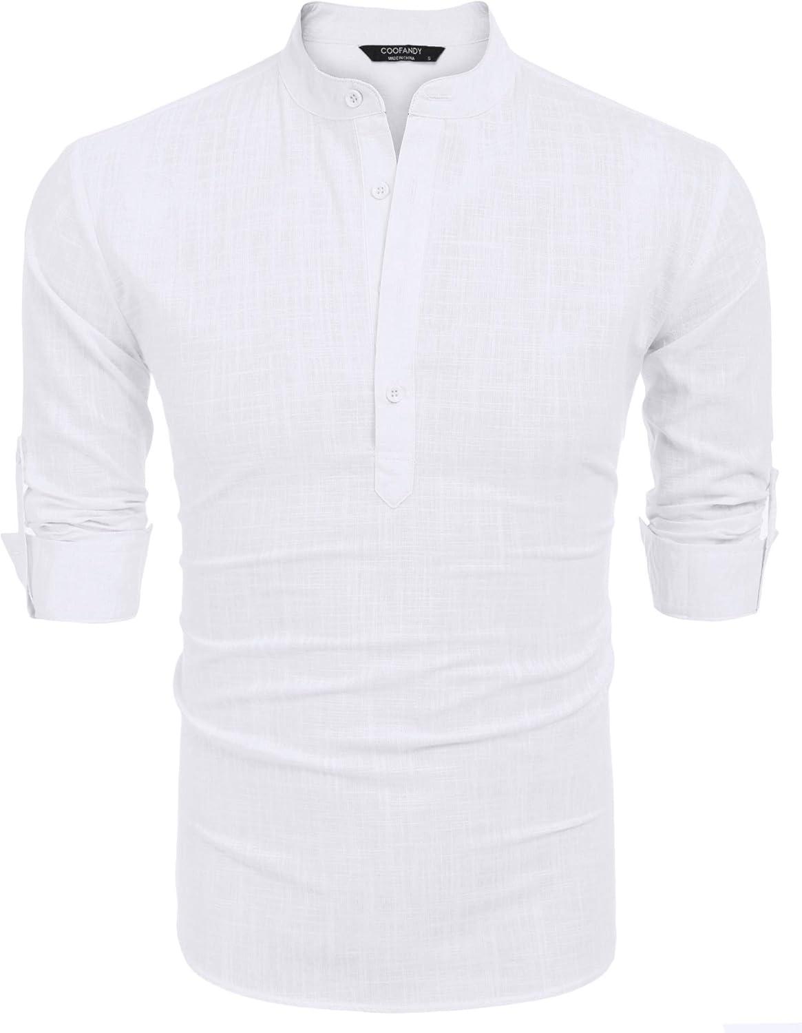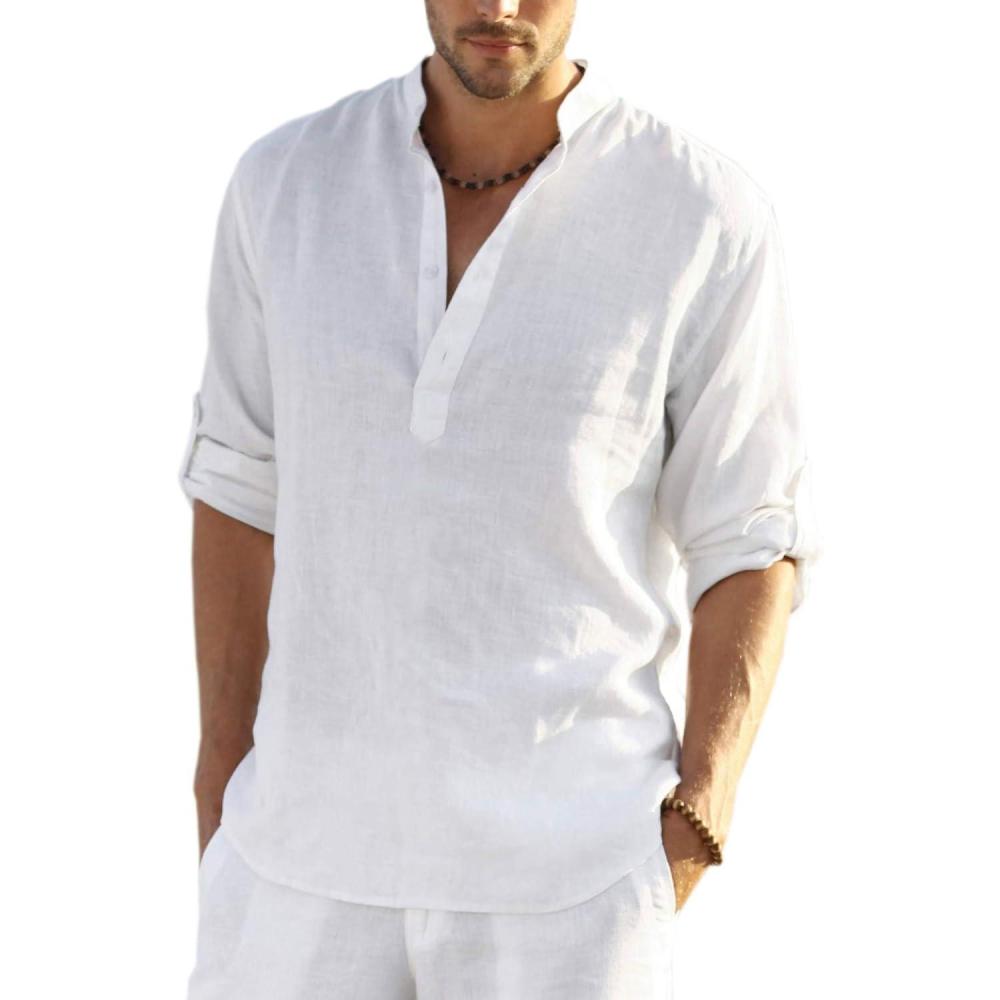 COOFANDY Men’s Cotton Linen Henley T-Shirt Long Sleeve Hippie Casual Beach T-Shirts(01-white)