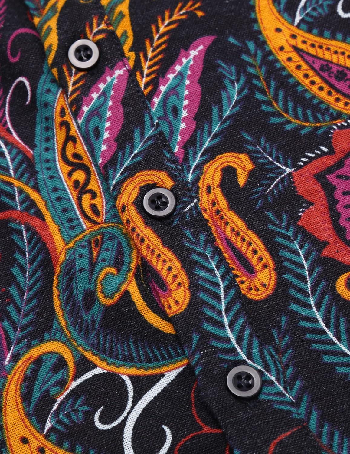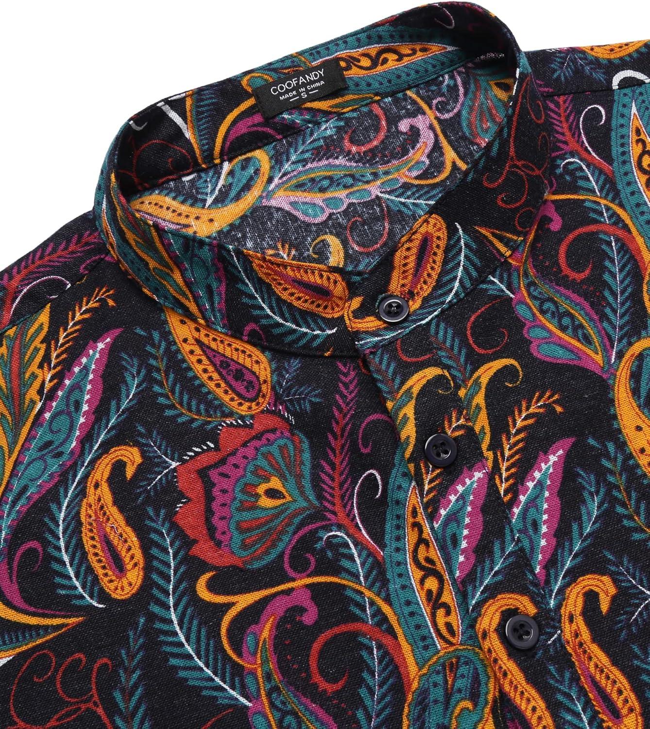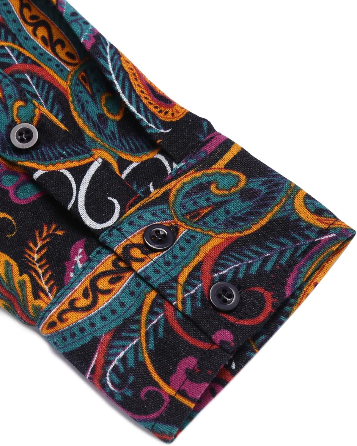 COOFANDY Men’s Cotton Linen Henley T-Shirt Long Sleeve Hippie Casual Beach T-Shirts(Black Paisley)