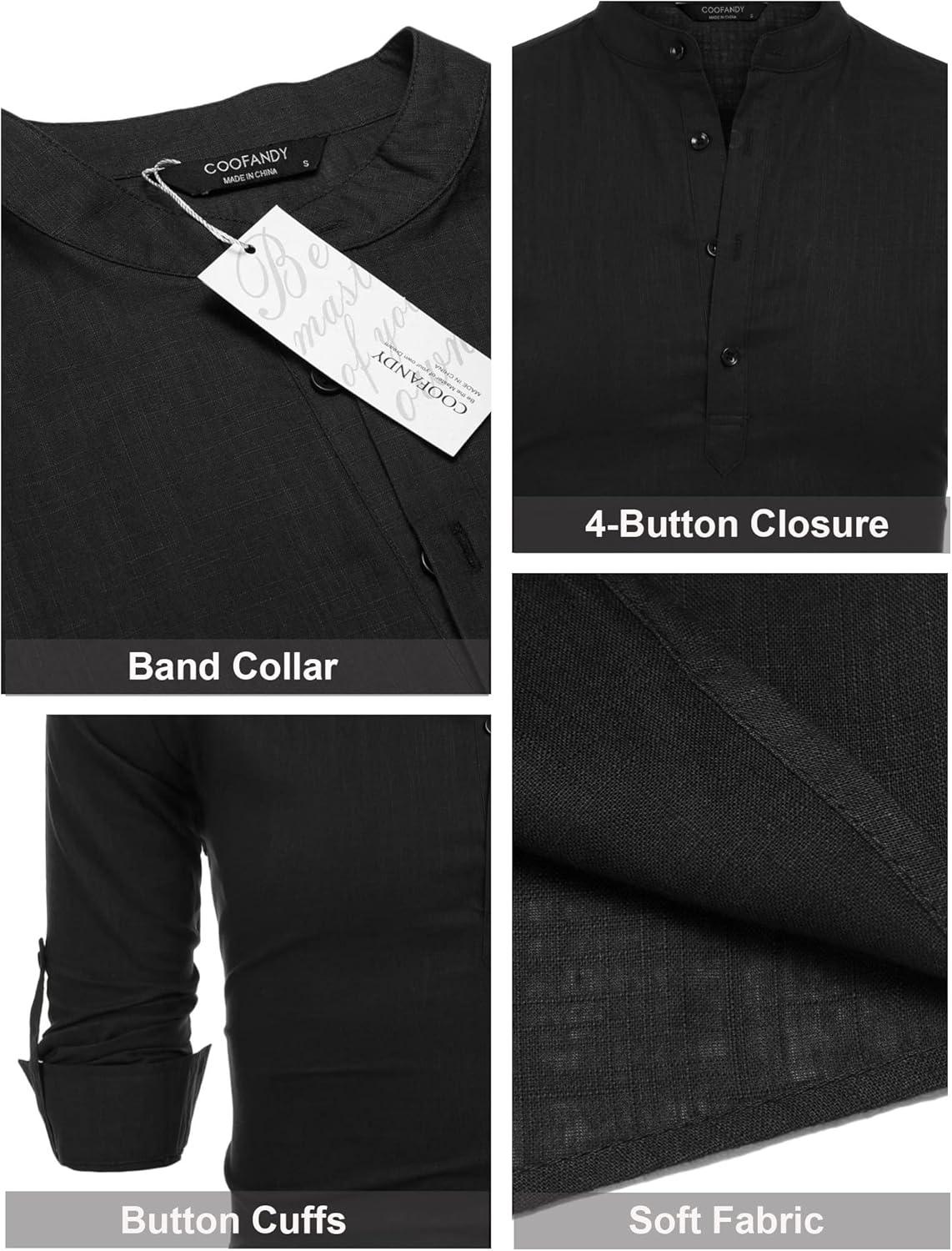 COOFANDY Men’s Cotton Linen Henley T-Shirt Long Sleeve Hippie Casual Beach T-Shirts(Black)