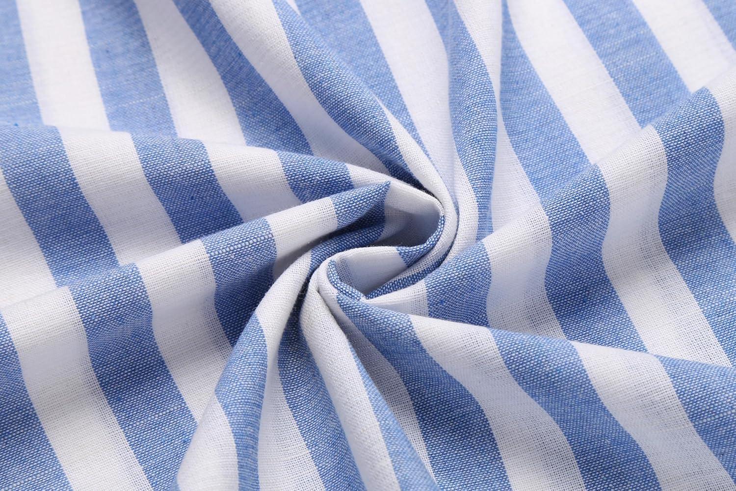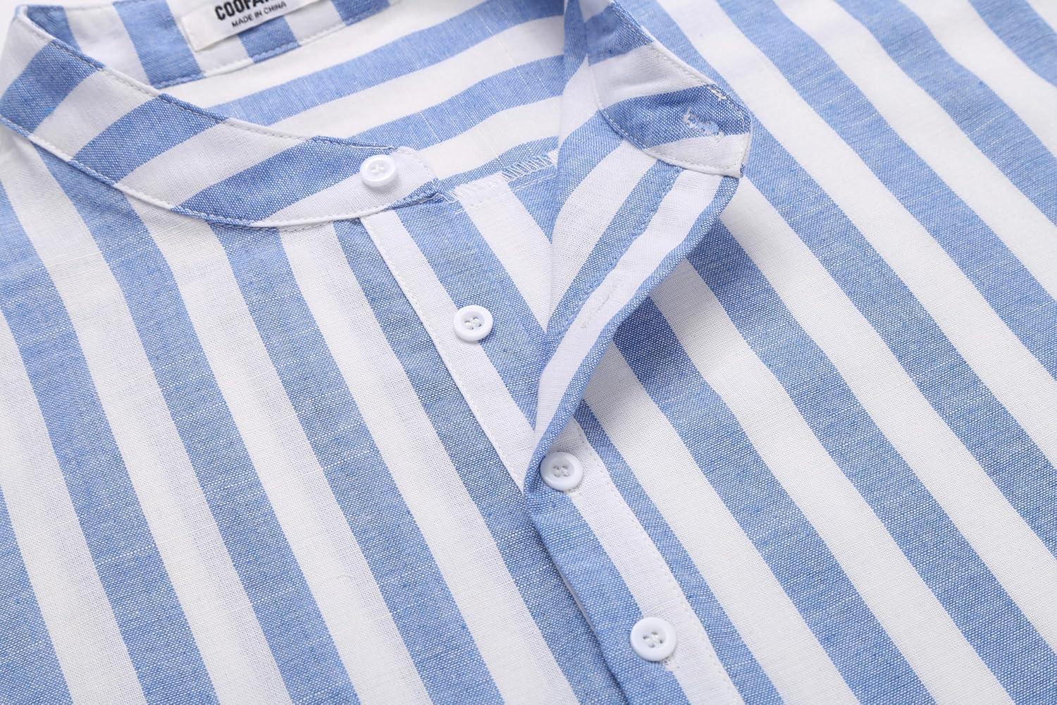 COOFANDY Men’s Cotton Linen Henley T-Shirt Long Sleeve Hippie Casual Beach T-Shirts(Blue White Striped)