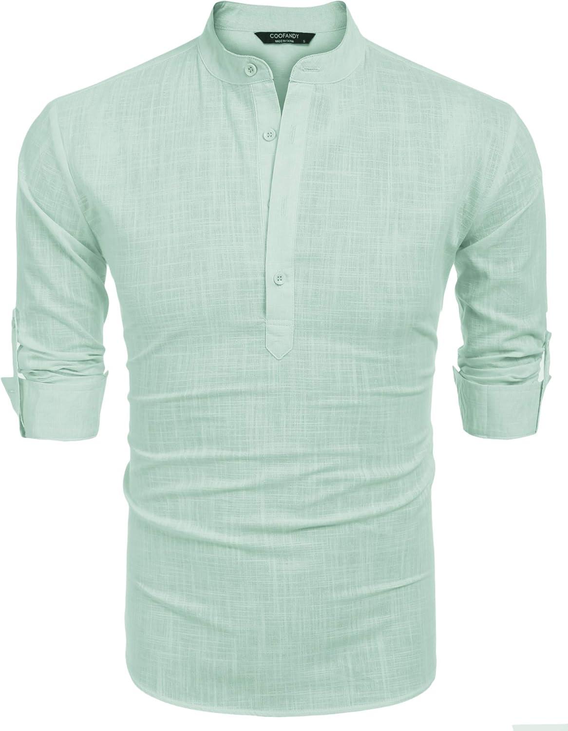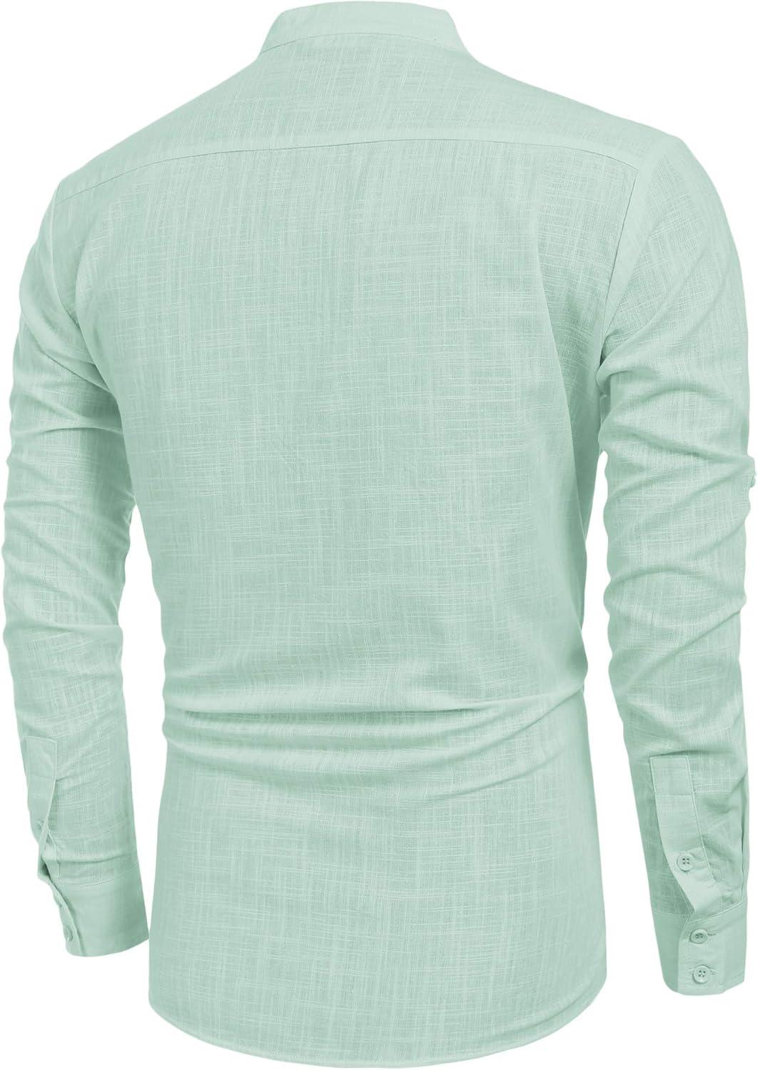 COOFANDY Men’s Cotton Linen Henley T-Shirt Long Sleeve Hippie Casual Beach T-Shirts(Green)