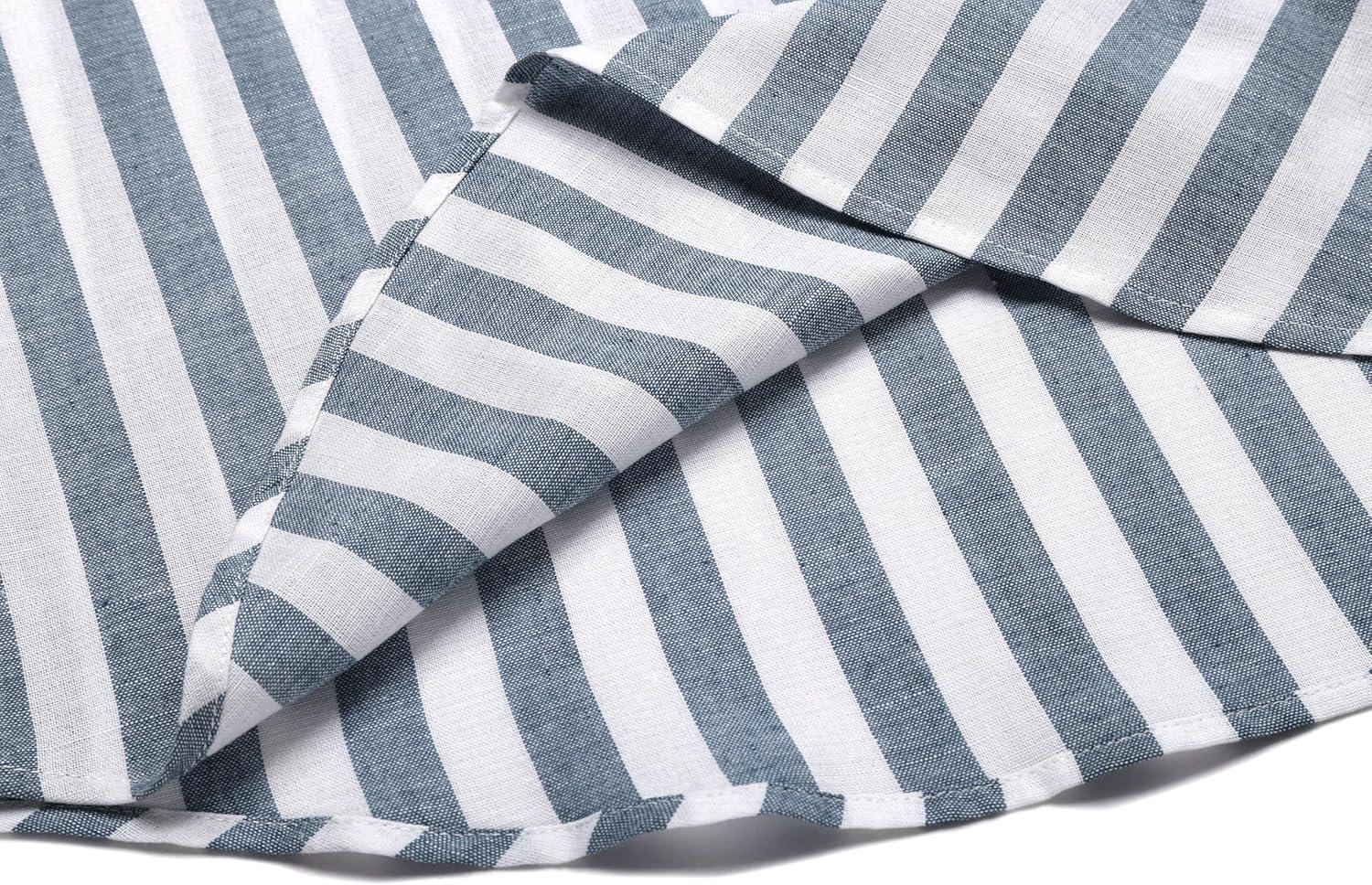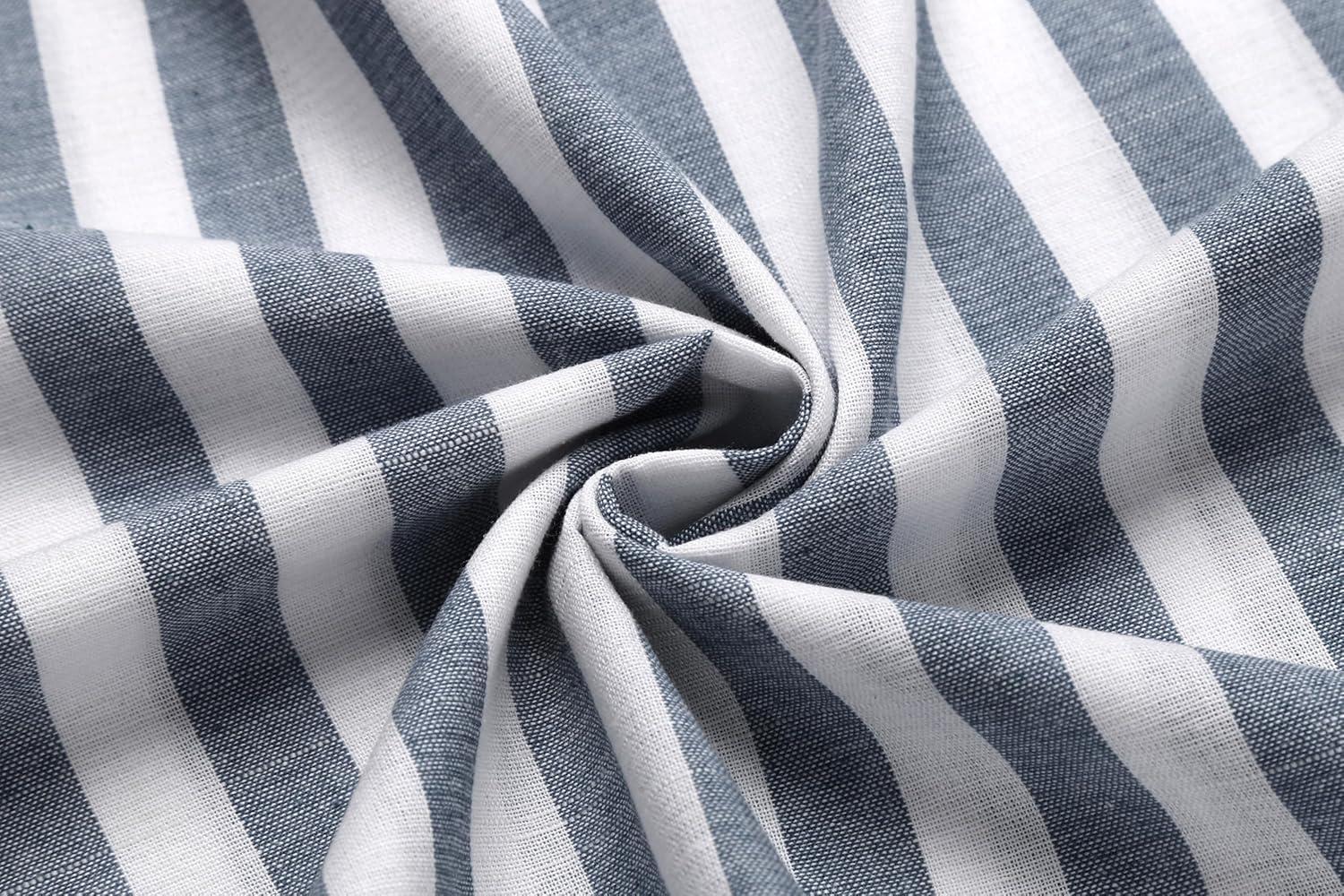 COOFANDY Men’s Cotton Linen Henley T-Shirt Long Sleeve Hippie Casual Beach T-Shirts(Grey Blue Striped)