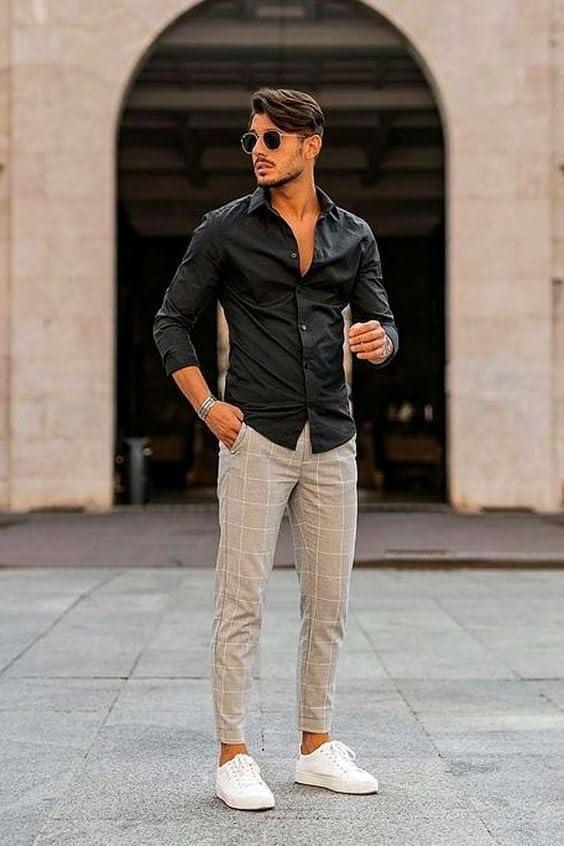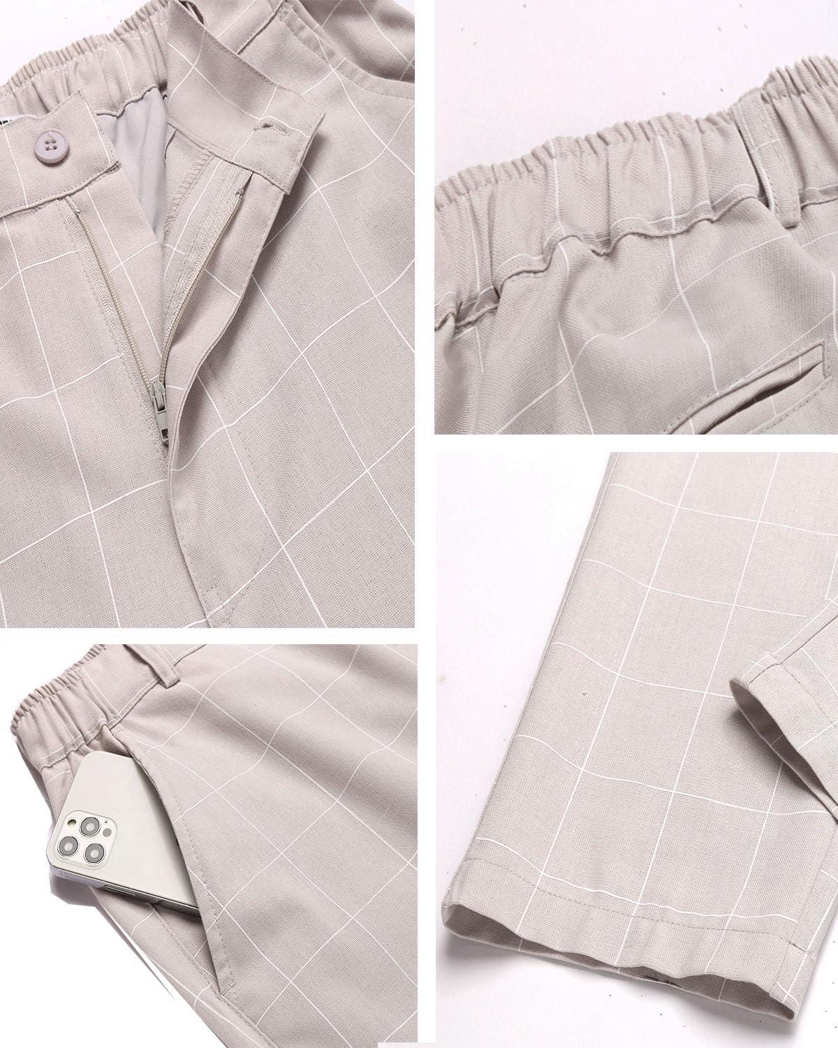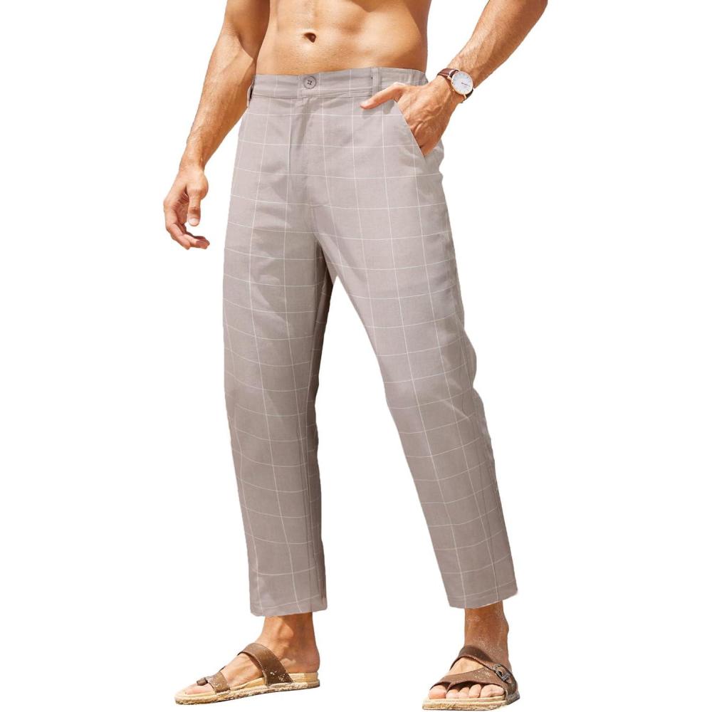 COOFANDY Men’s Cotton Linen Pants Elastic Waist Lightweight Casual Pants Relaxed Fit Yoga Beach Pants with Pockets(Grey( Plaid ))