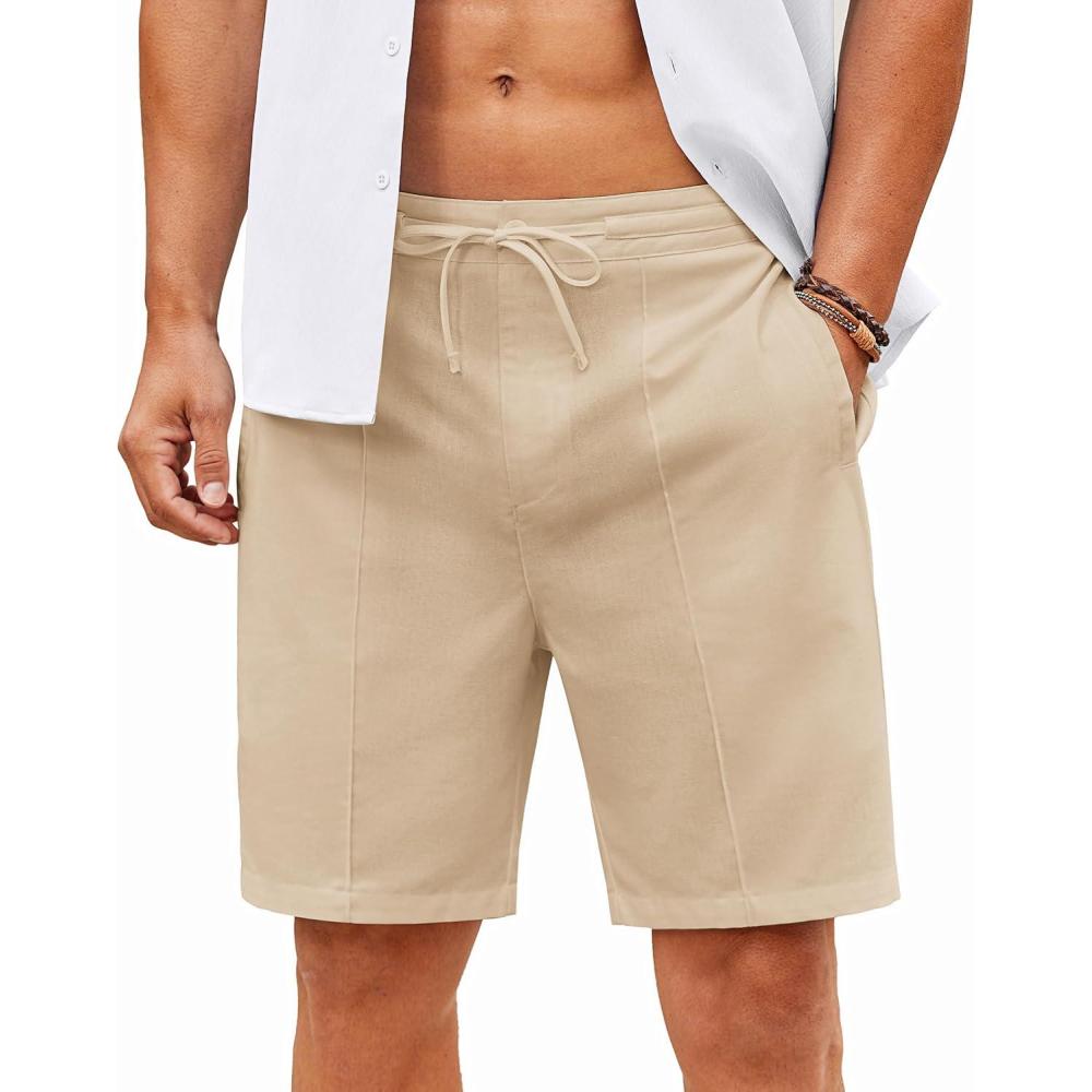 COOFANDY Men’s Cotton Linen Shorts 8 Inch Inseam Stretch Casual Dress Summer Beach Golf Shorts with Pockets(Khaki)