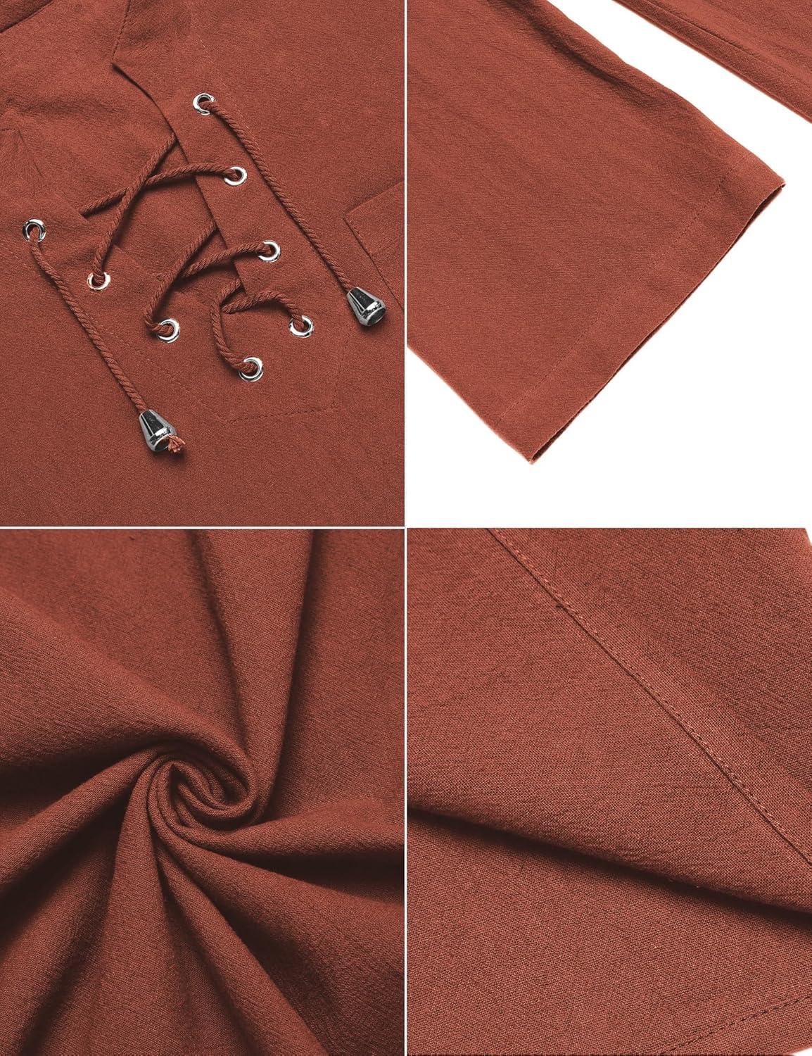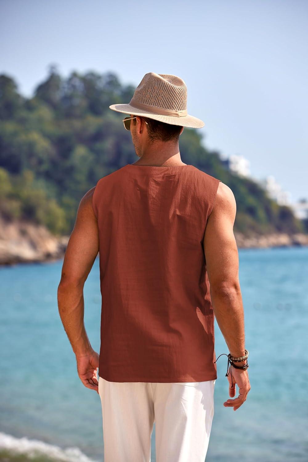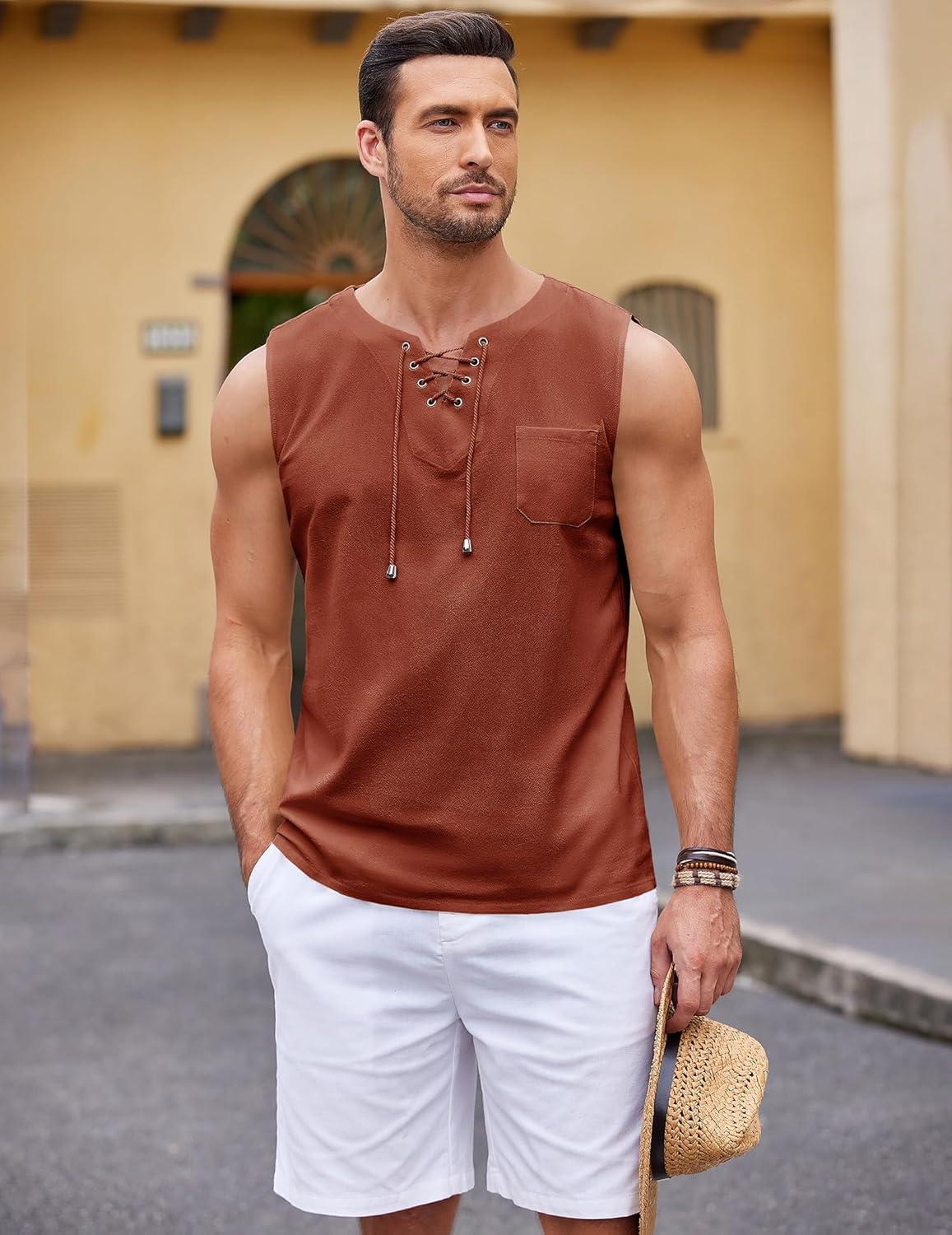 COOFANDY Men’s Cotton Linen Tank Top Shirts Casual Sleeveless Lace Up Beach Hippie Tops Bohemian Renaissance Pirate Tunic(Brick)