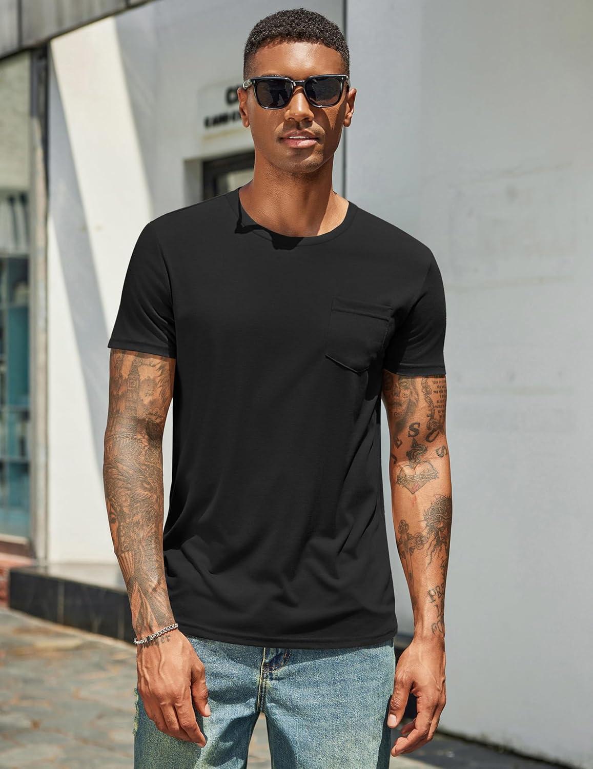 COOFANDY Men’s Cotton Pocket Tee Shirts Soft Crew Neck Stretch T Shirt Plain Casual Short Sleeve Summer Basic Tops(1 Pack- All Black)