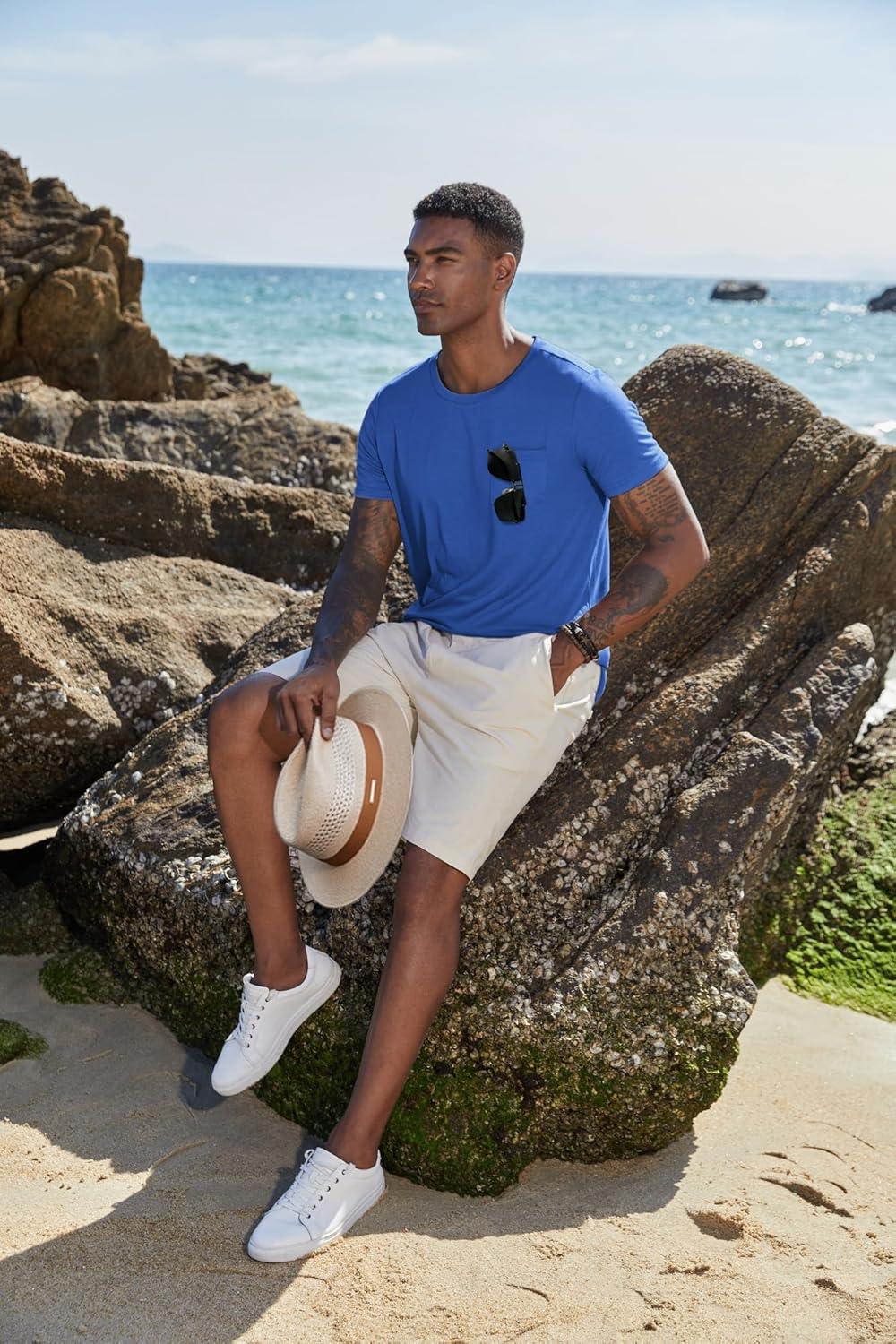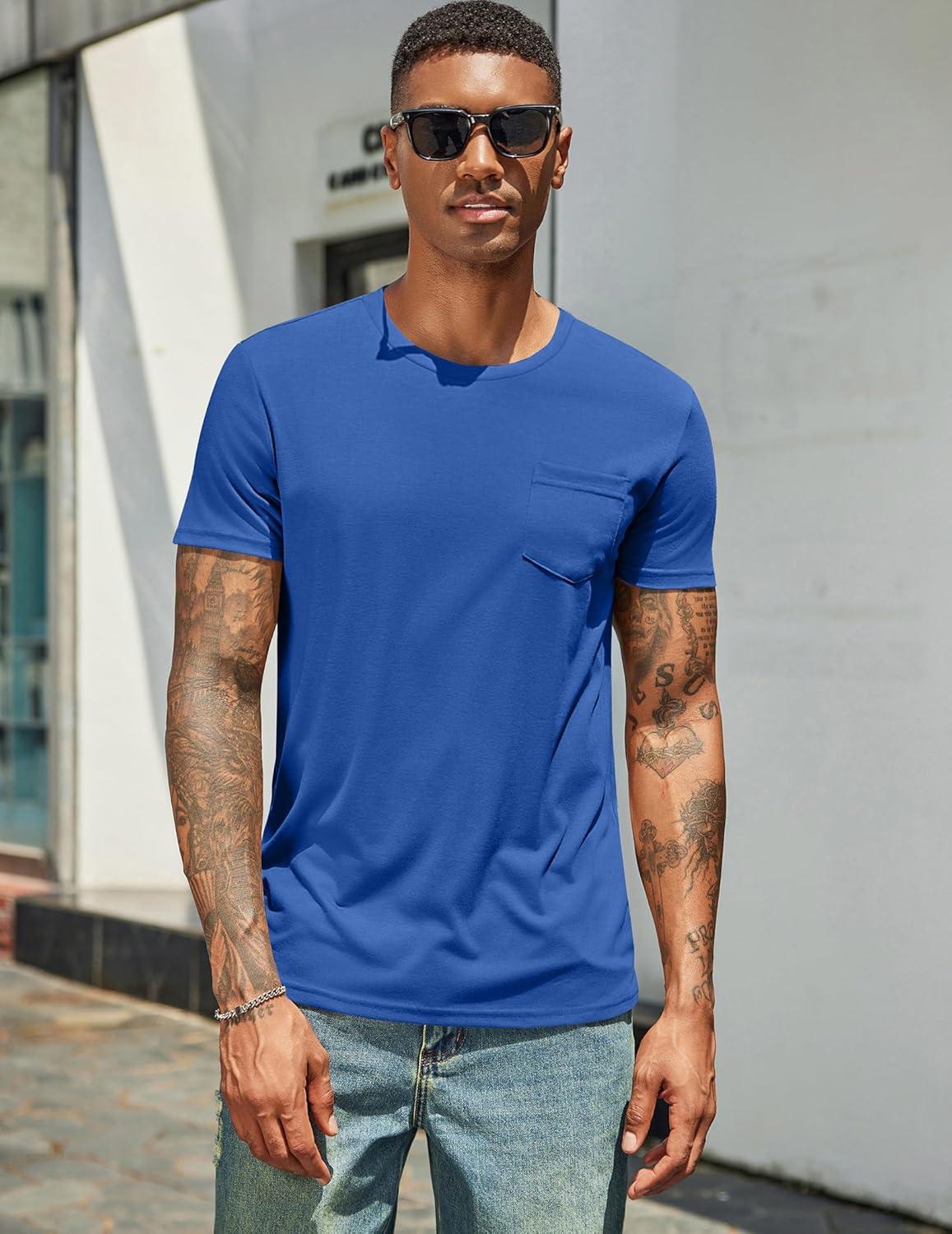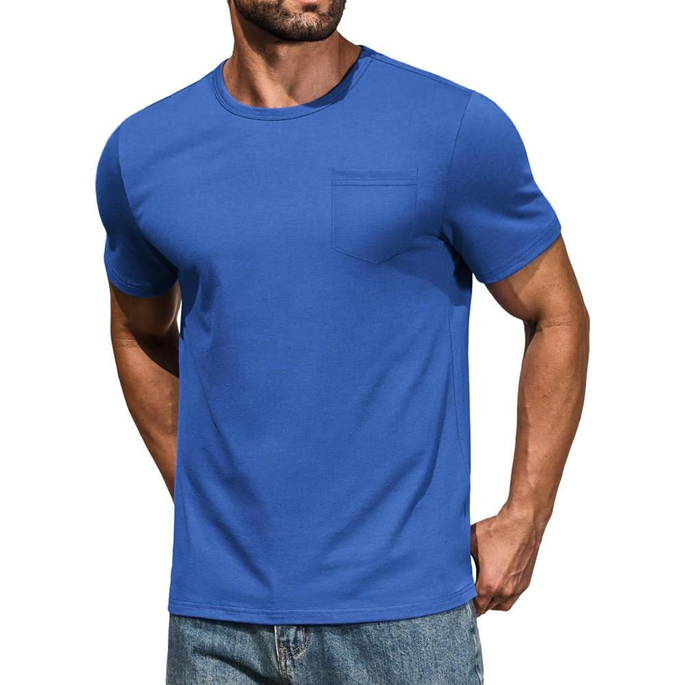 COOFANDY Men’s Cotton Pocket Tee Shirts Soft Crew Neck Stretch T Shirt Plain Casual Short Sleeve Summer Basic Tops(1 Pack- Blue)