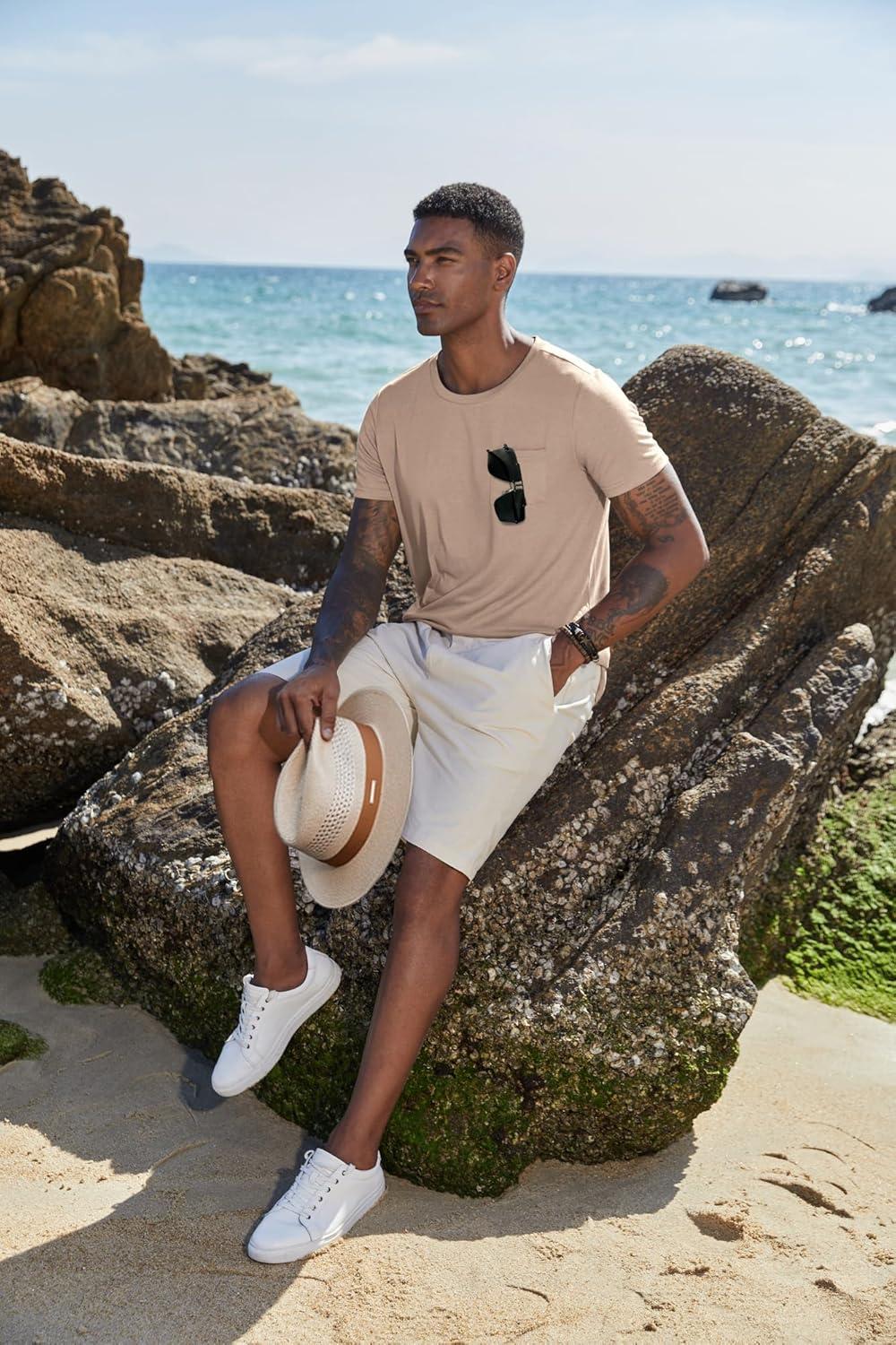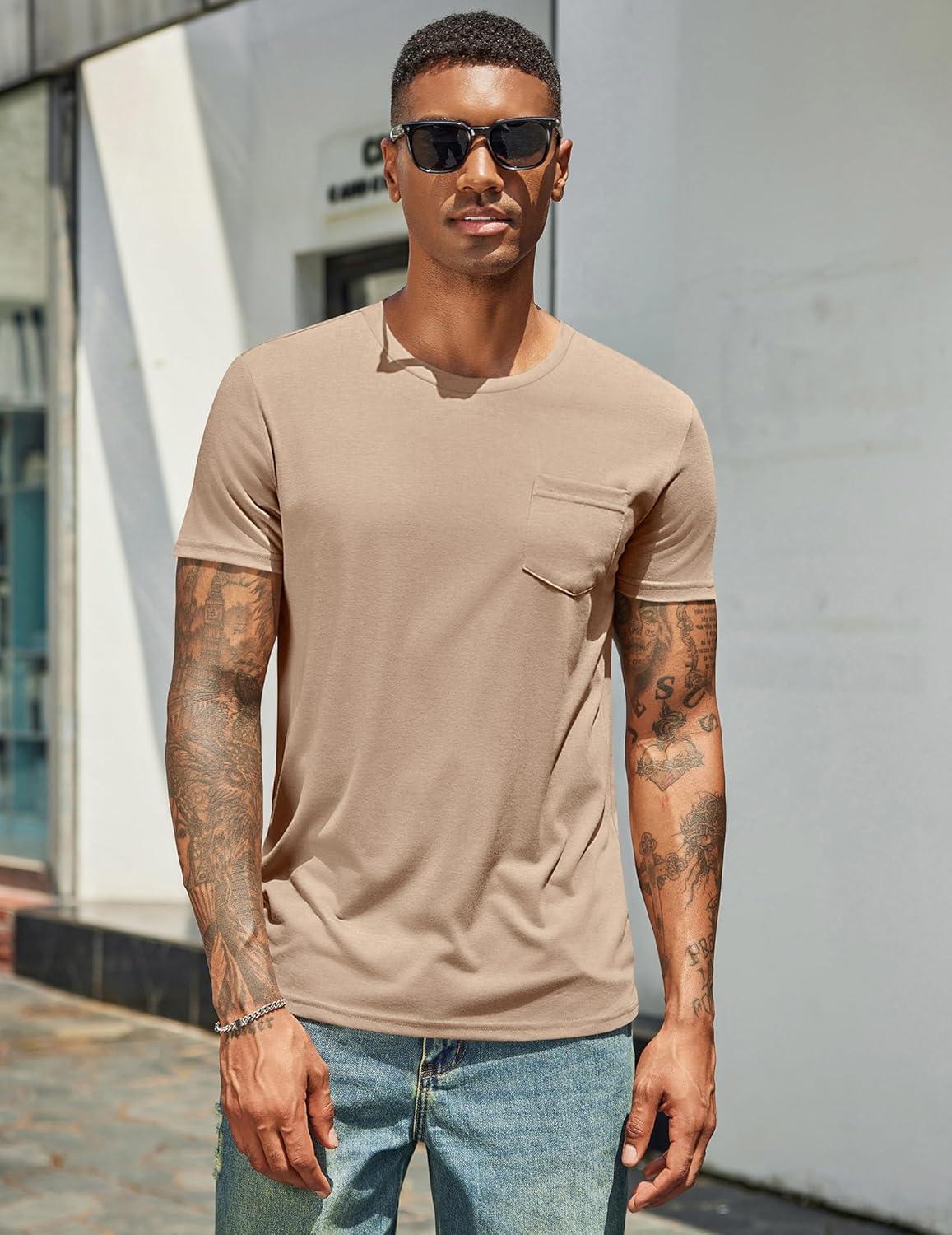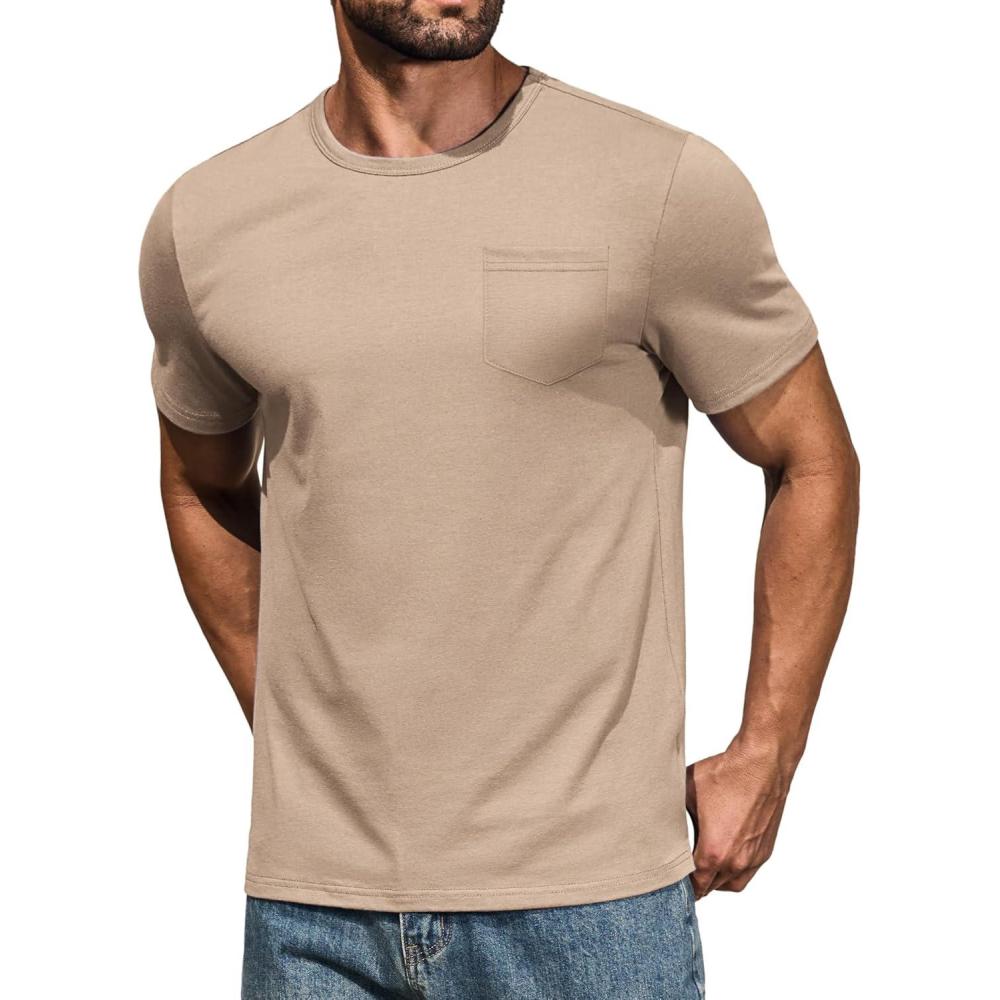 COOFANDY Men’s Cotton Pocket Tee Shirts Soft Crew Neck Stretch T Shirt Plain Casual Short Sleeve Summer Basic Tops(1 Pack- Khaki)