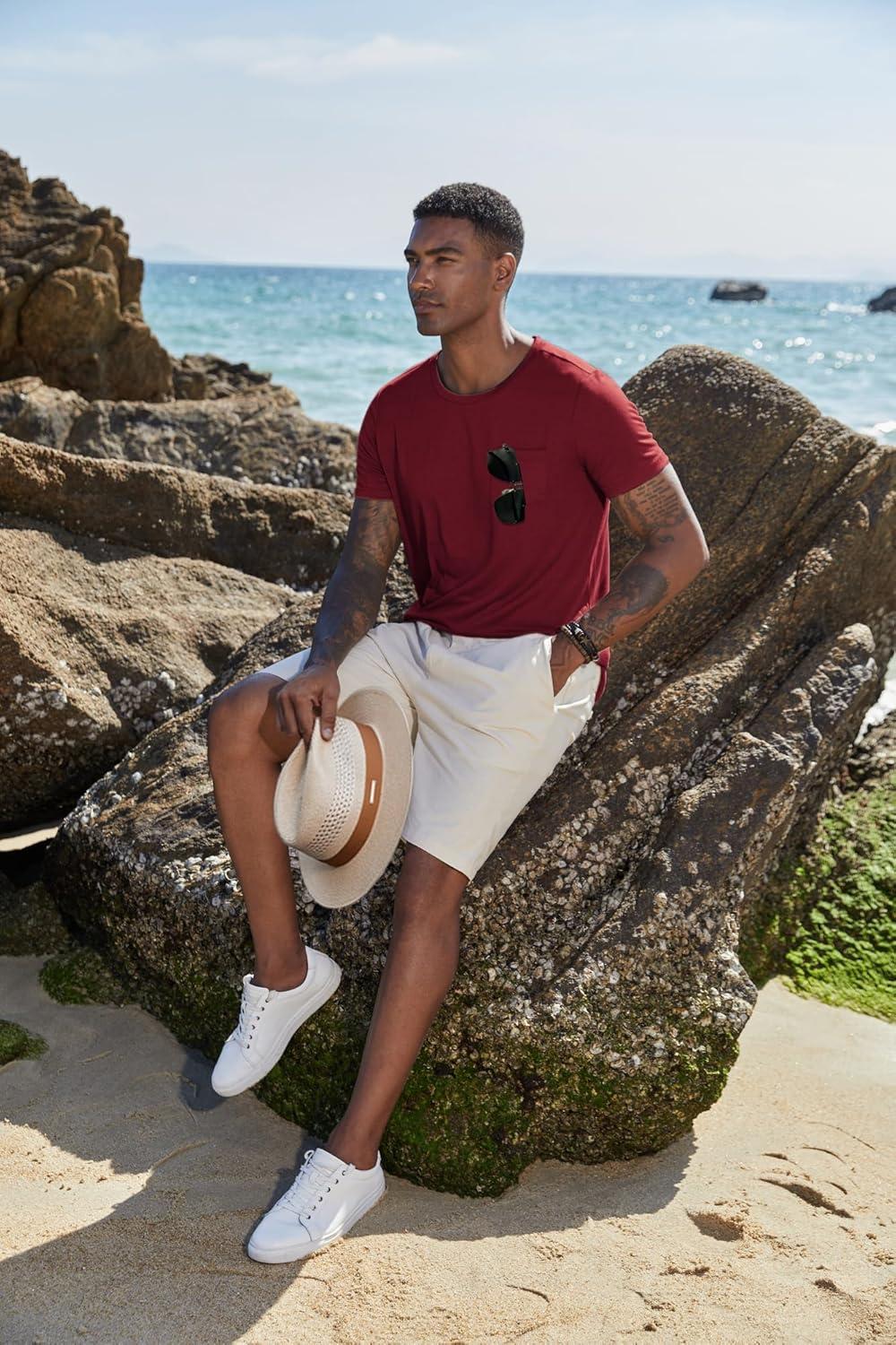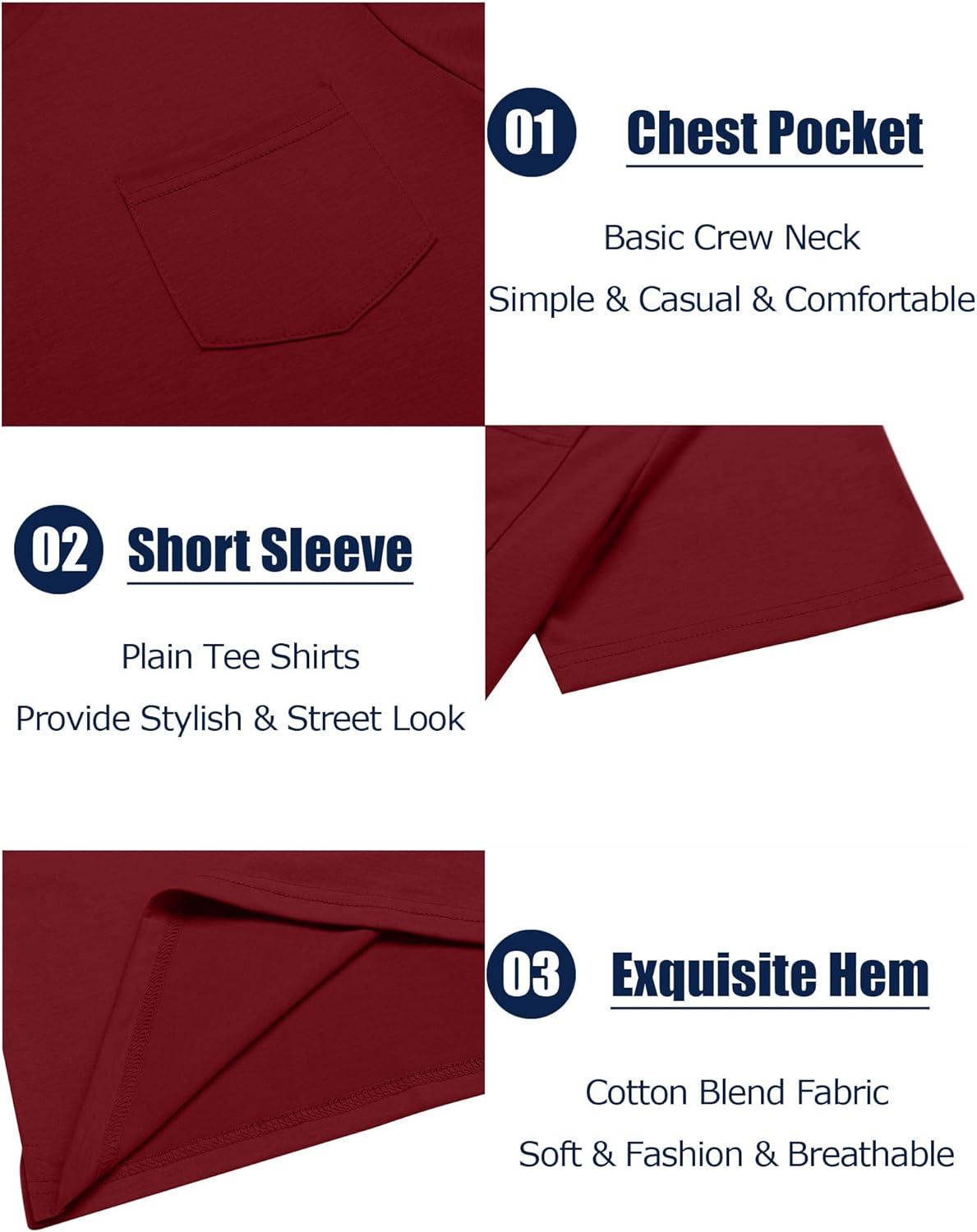 COOFANDY Men’s Cotton Pocket Tee Shirts Soft Crew Neck Stretch T Shirt Plain Casual Short Sleeve Summer Basic Tops(2 Pack(wine Red+navy Blue))