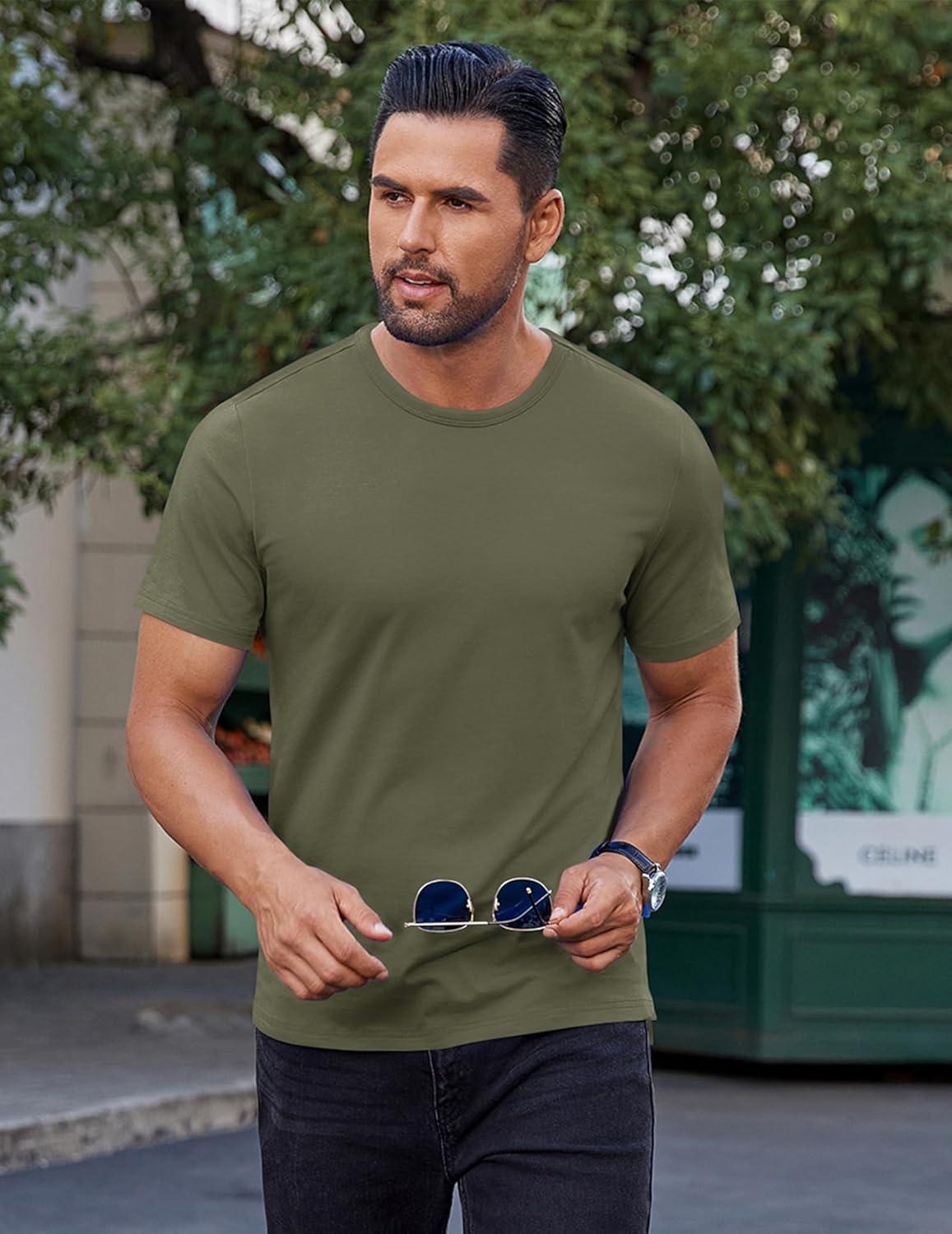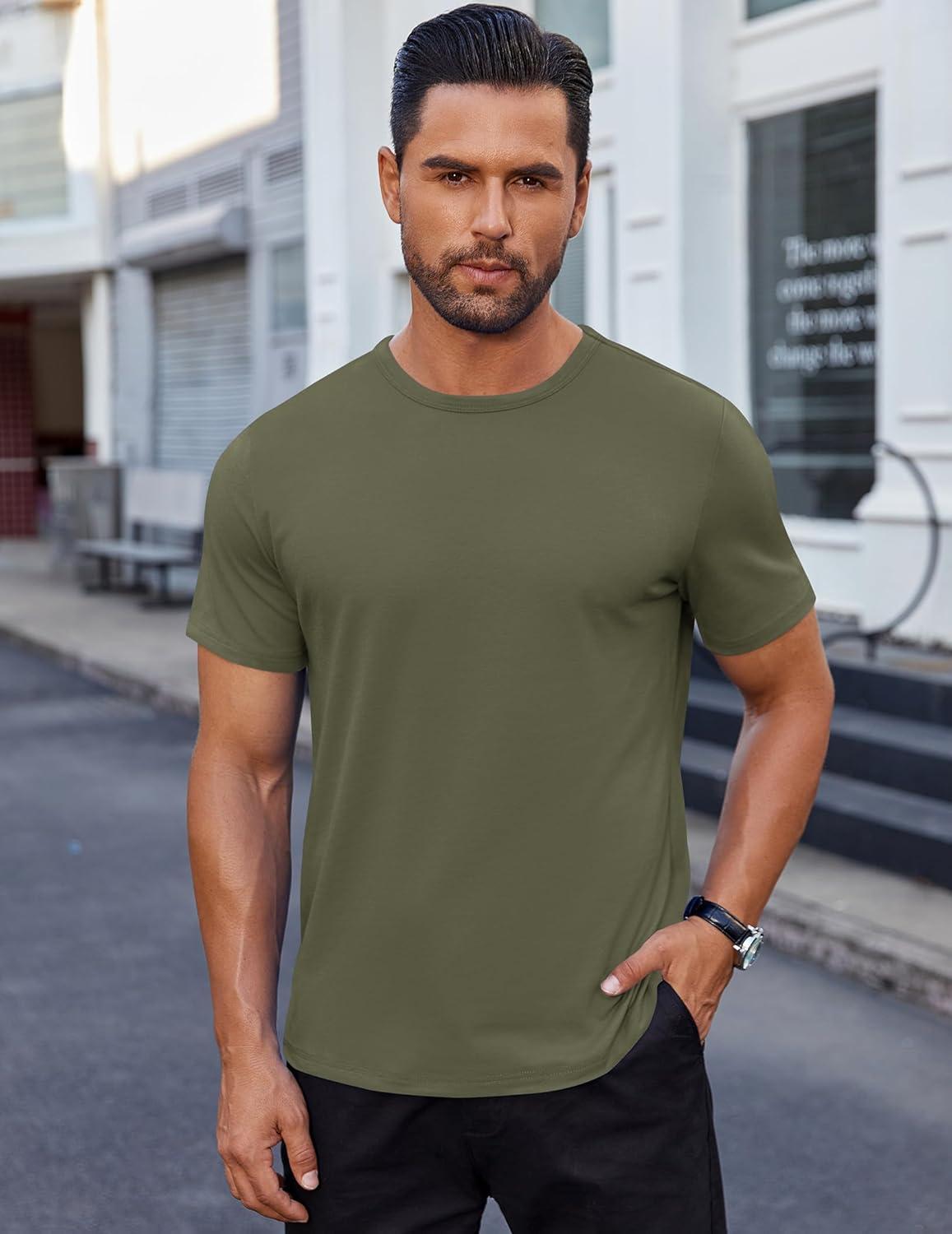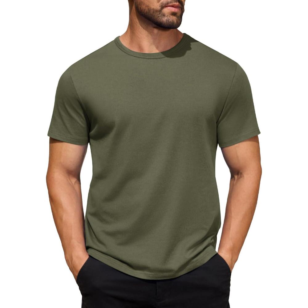 COOFANDY Men’s Cotton T-Shirt Short Sleeve Crew Neck Tee Shirts Casual Solid Basic Tops(Army Green)