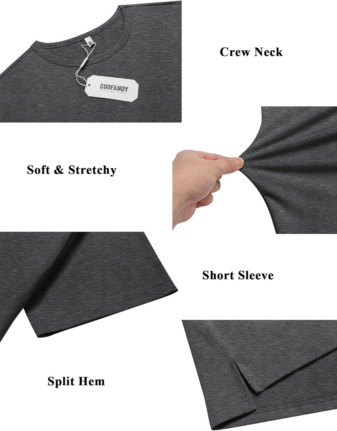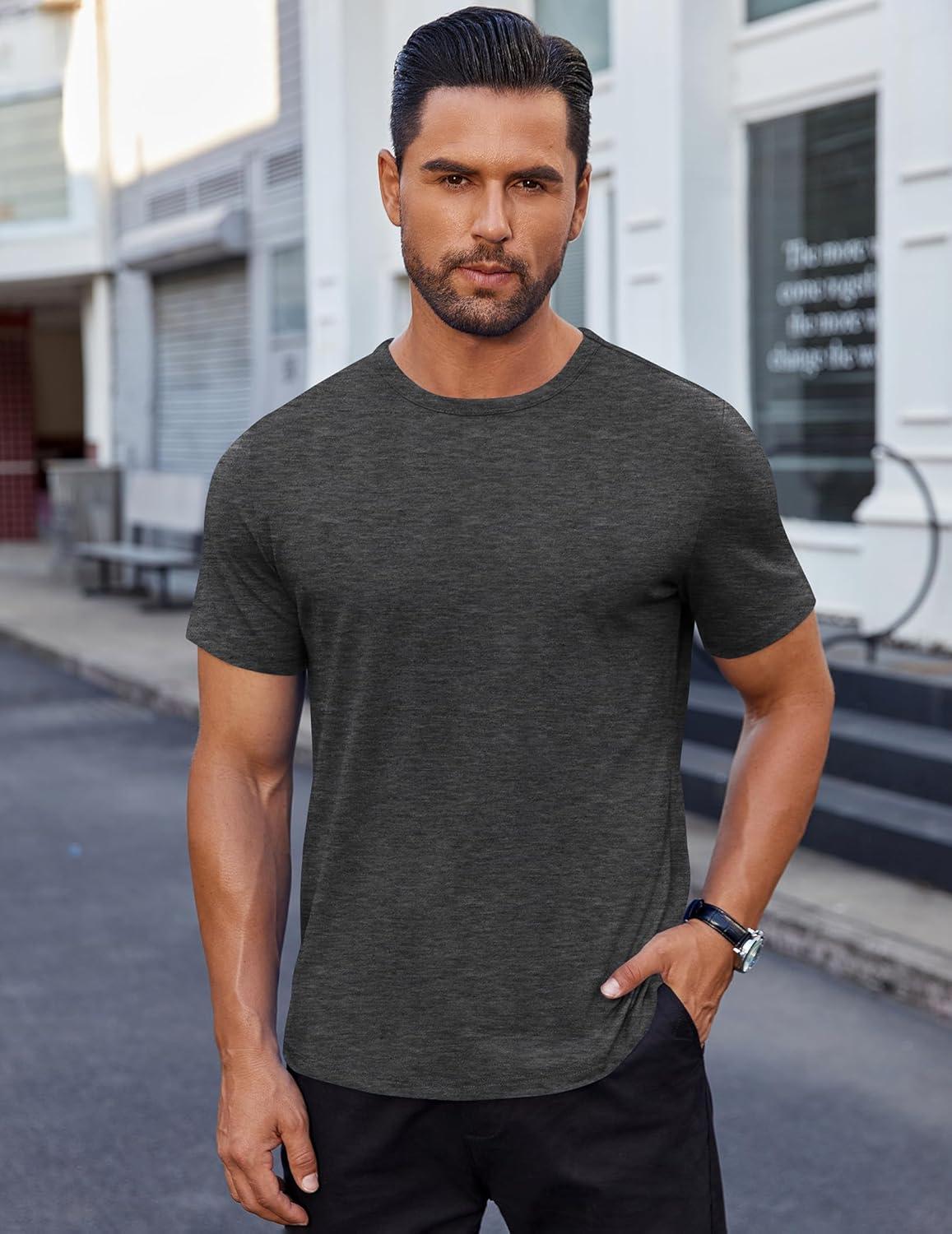COOFANDY Men’s Cotton T-Shirt Short Sleeve Crew Neck Tee Shirts Casual Solid Basic Tops(Dark Grey)