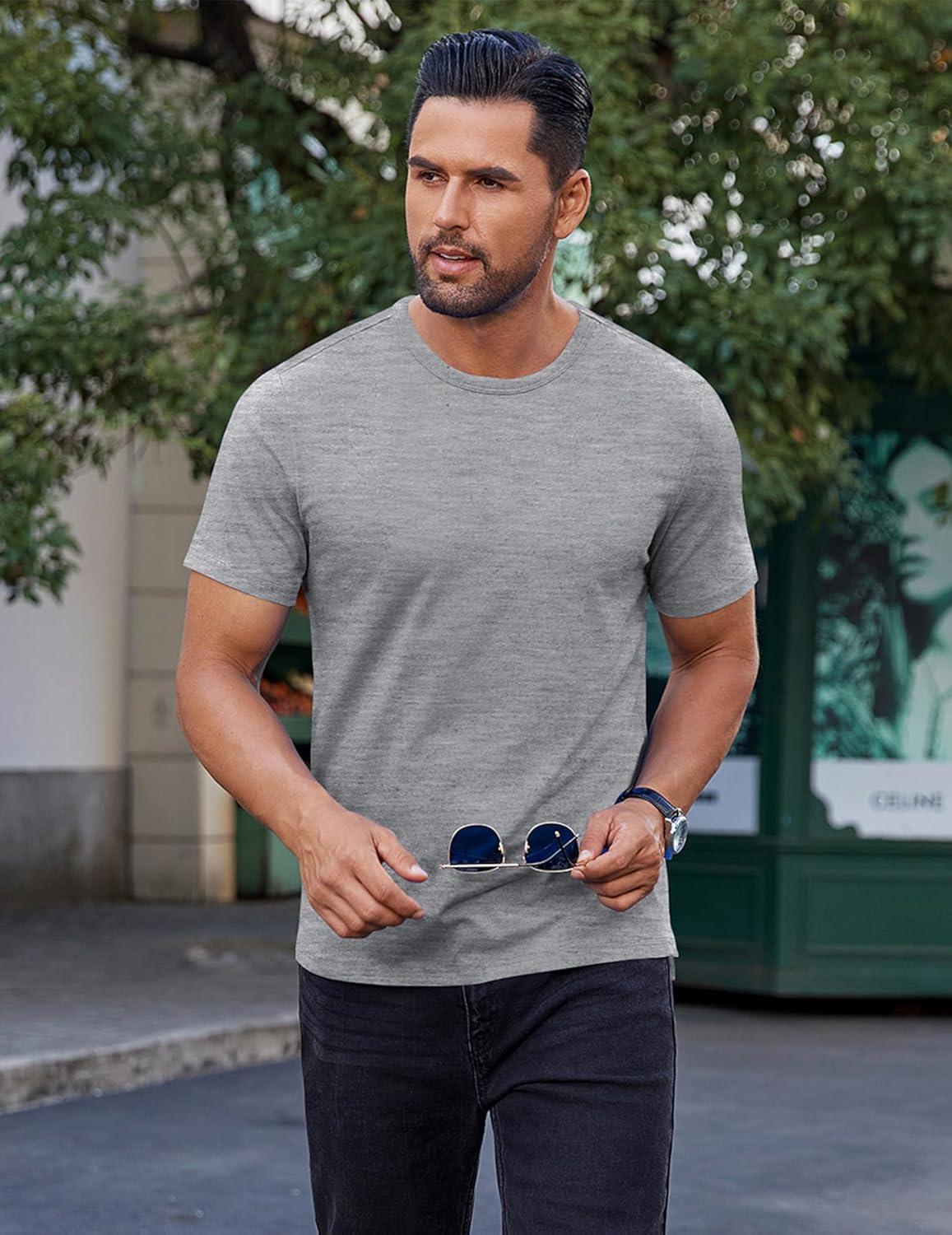 COOFANDY Men’s Cotton T-Shirt Short Sleeve Crew Neck Tee Shirts Casual Solid Basic Tops(Light Grey)