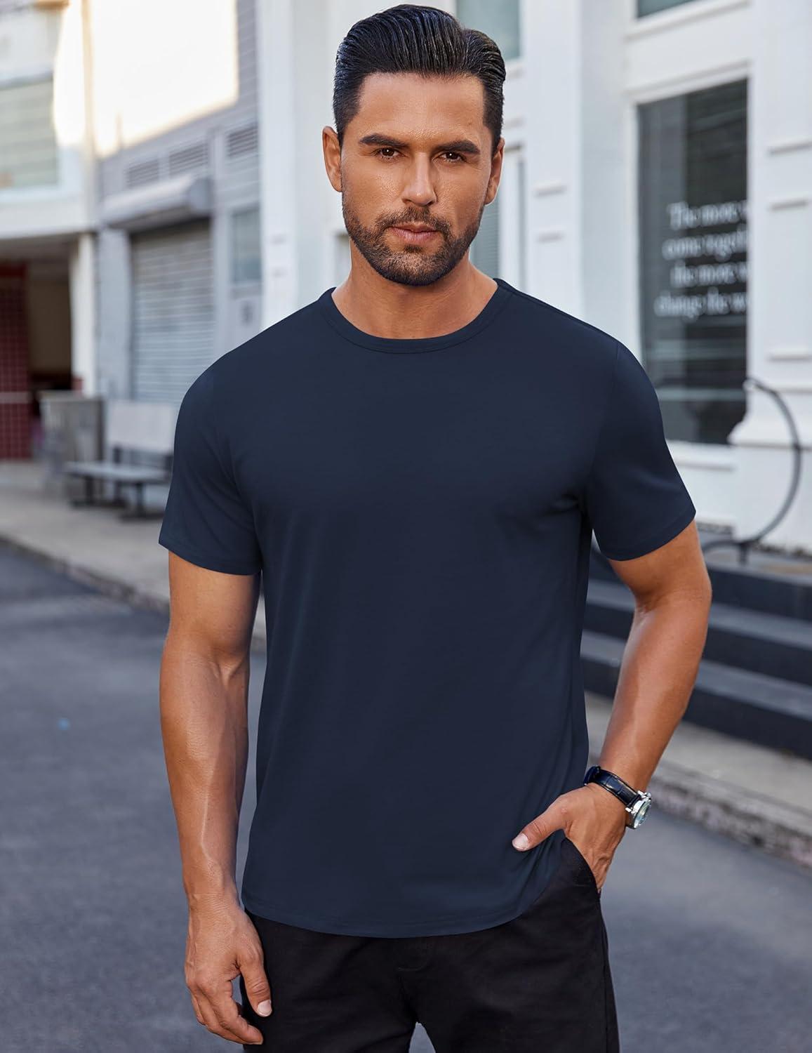 COOFANDY Men’s Cotton T-Shirt Short Sleeve Crew Neck Tee Shirts Casual Solid Basic Tops(Navy Blue)