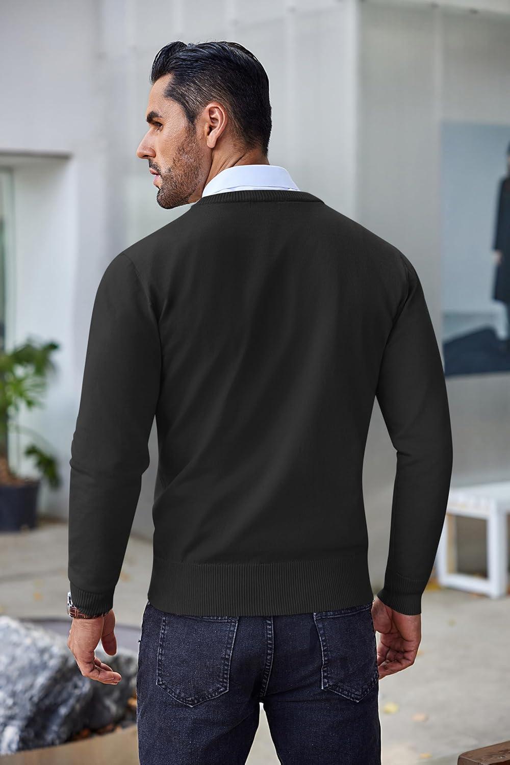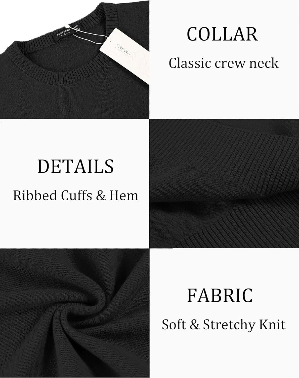 COOFANDY Men’s Crew Neck Sweater Slim Fit Lightweight Sweatshirts Knitted Pullover for Casual Or Dressy Wear(Black)