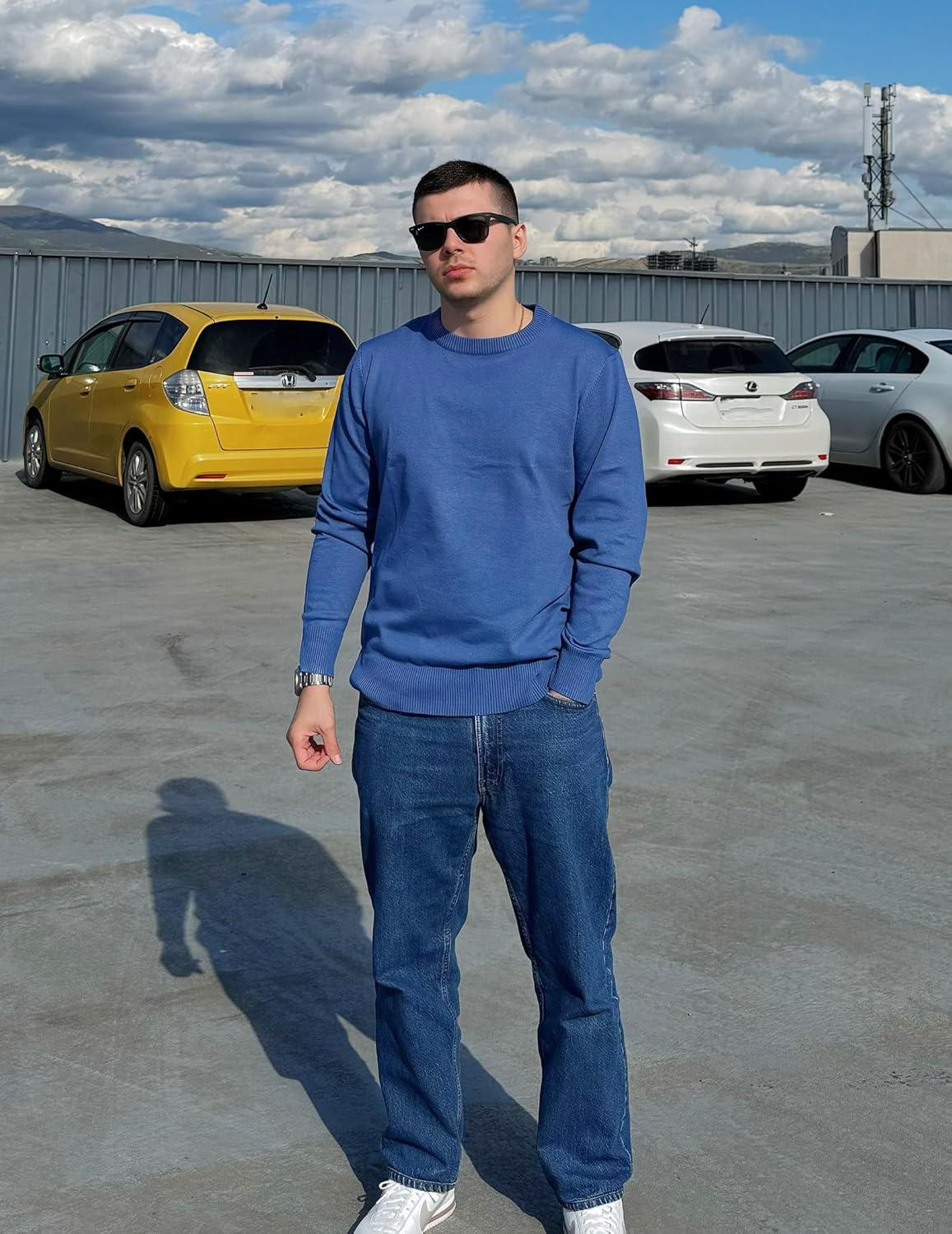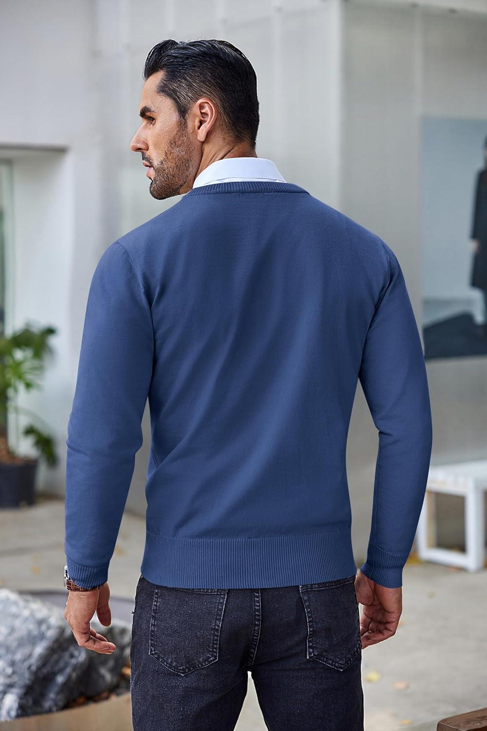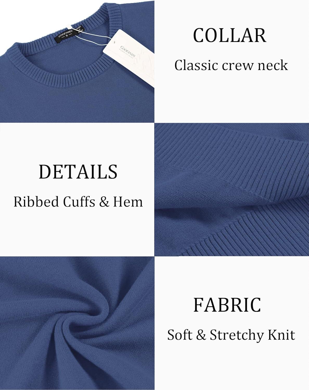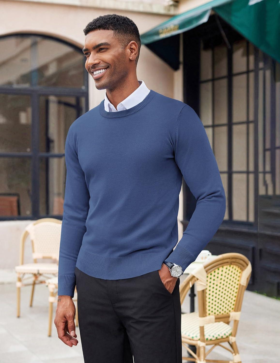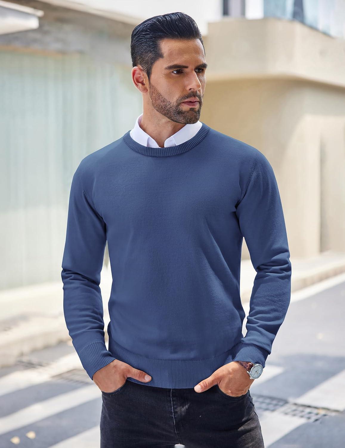 COOFANDY Men’s Crew Neck Sweater Slim Fit Lightweight Sweatshirts Knitted Pullover for Casual Or Dressy Wear(Blue)