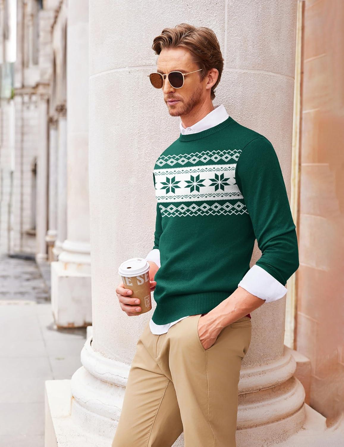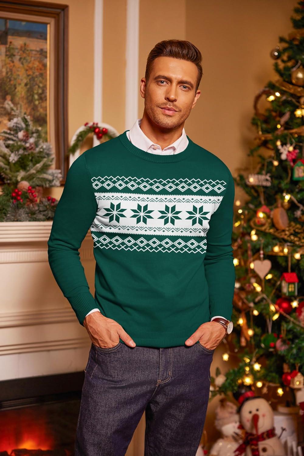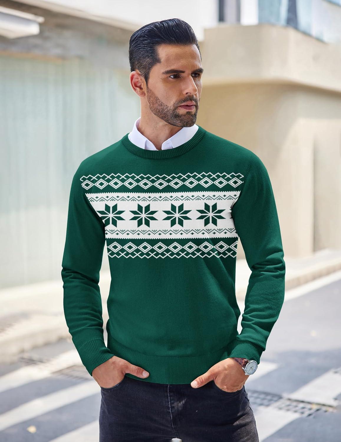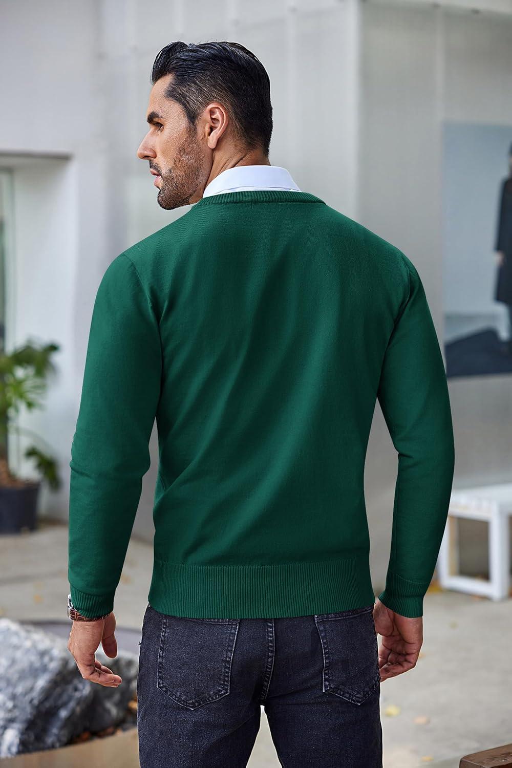 COOFANDY Men’s Crew Neck Sweater Slim Fit Lightweight Sweatshirts Knitted Pullover for Casual Or Dressy Wear(Christmas Green)