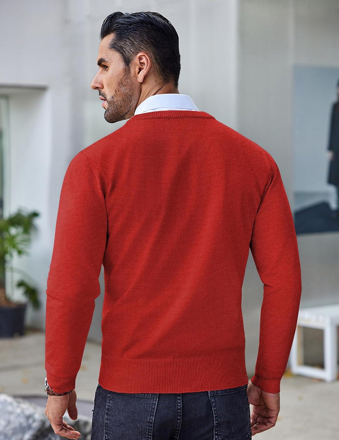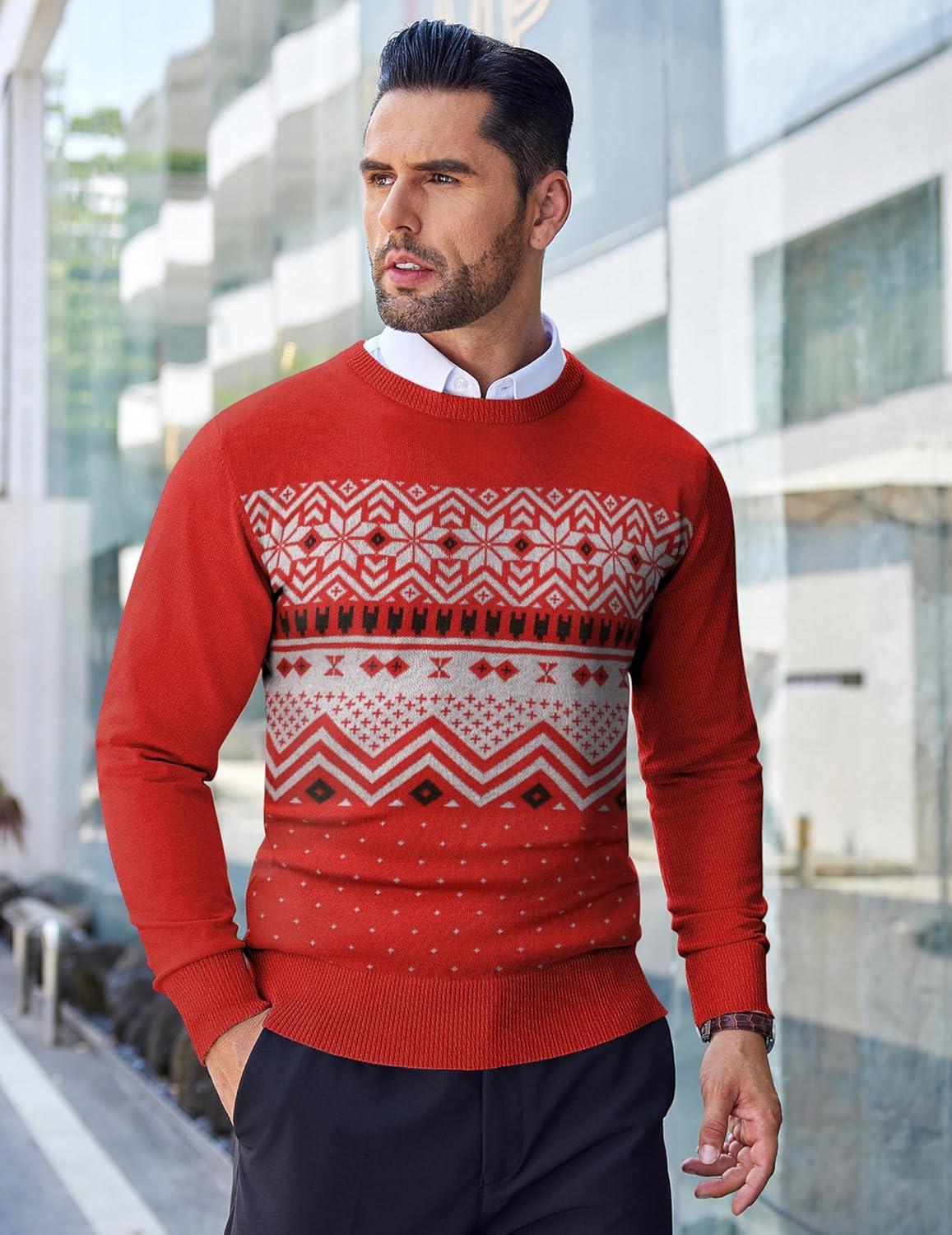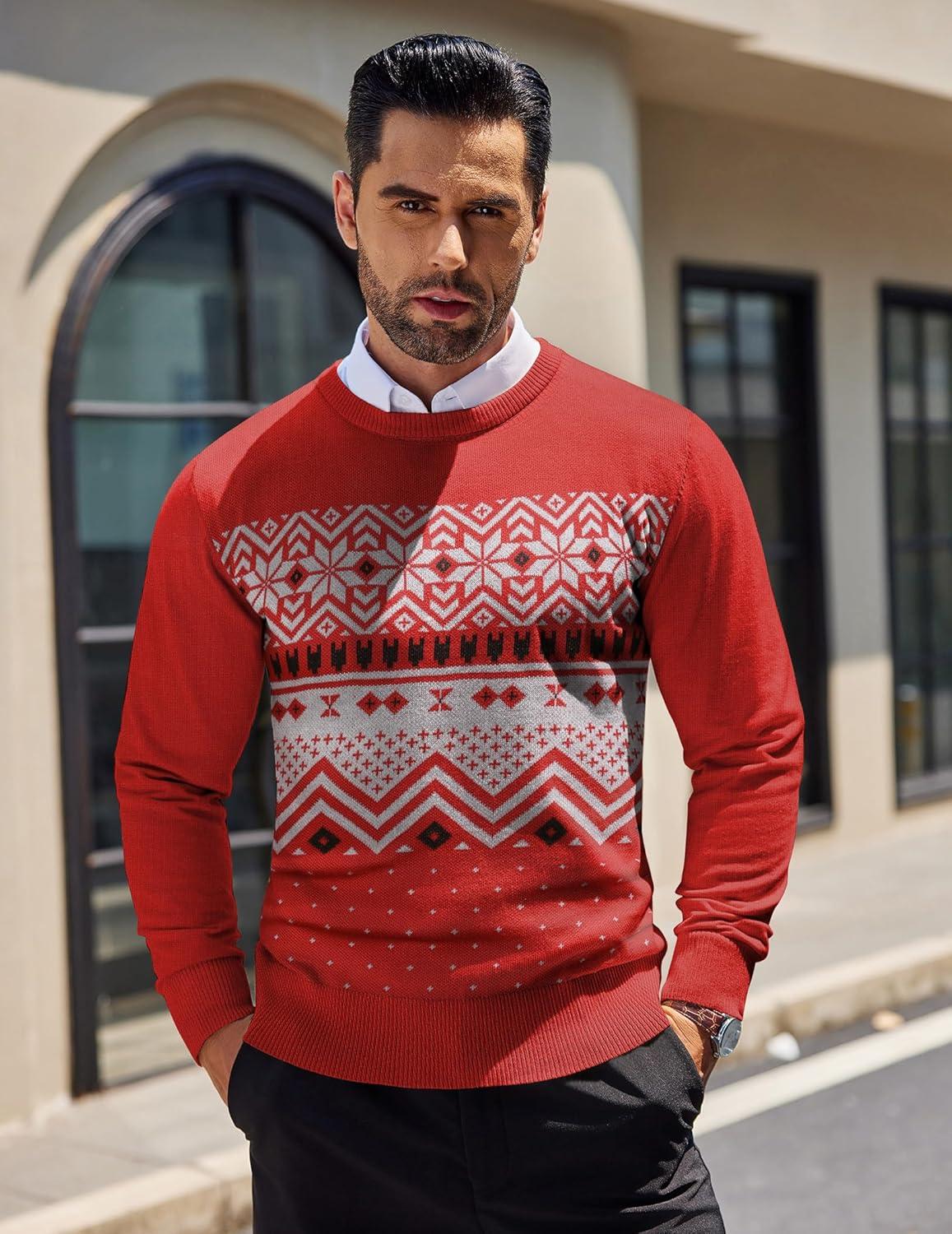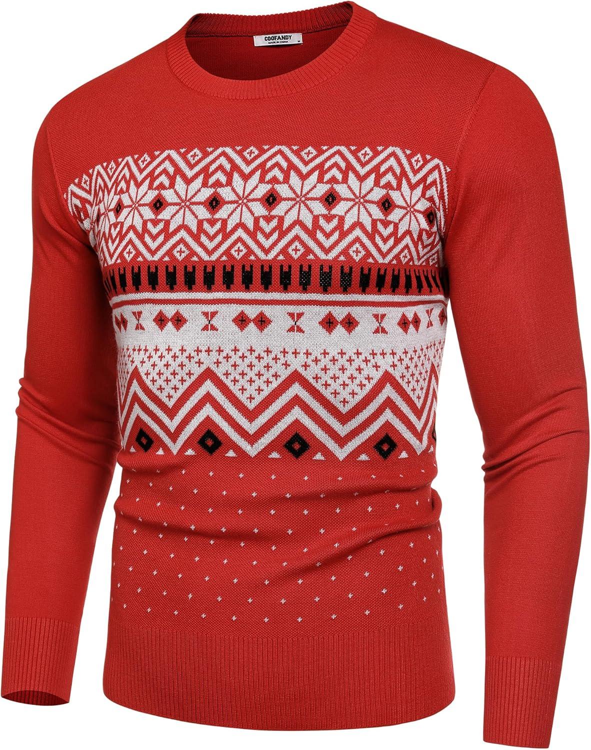 COOFANDY Men’s Crew Neck Sweater Slim Fit Lightweight Sweatshirts Knitted Pullover for Casual Or Dressy Wear(Christmas Red/White)