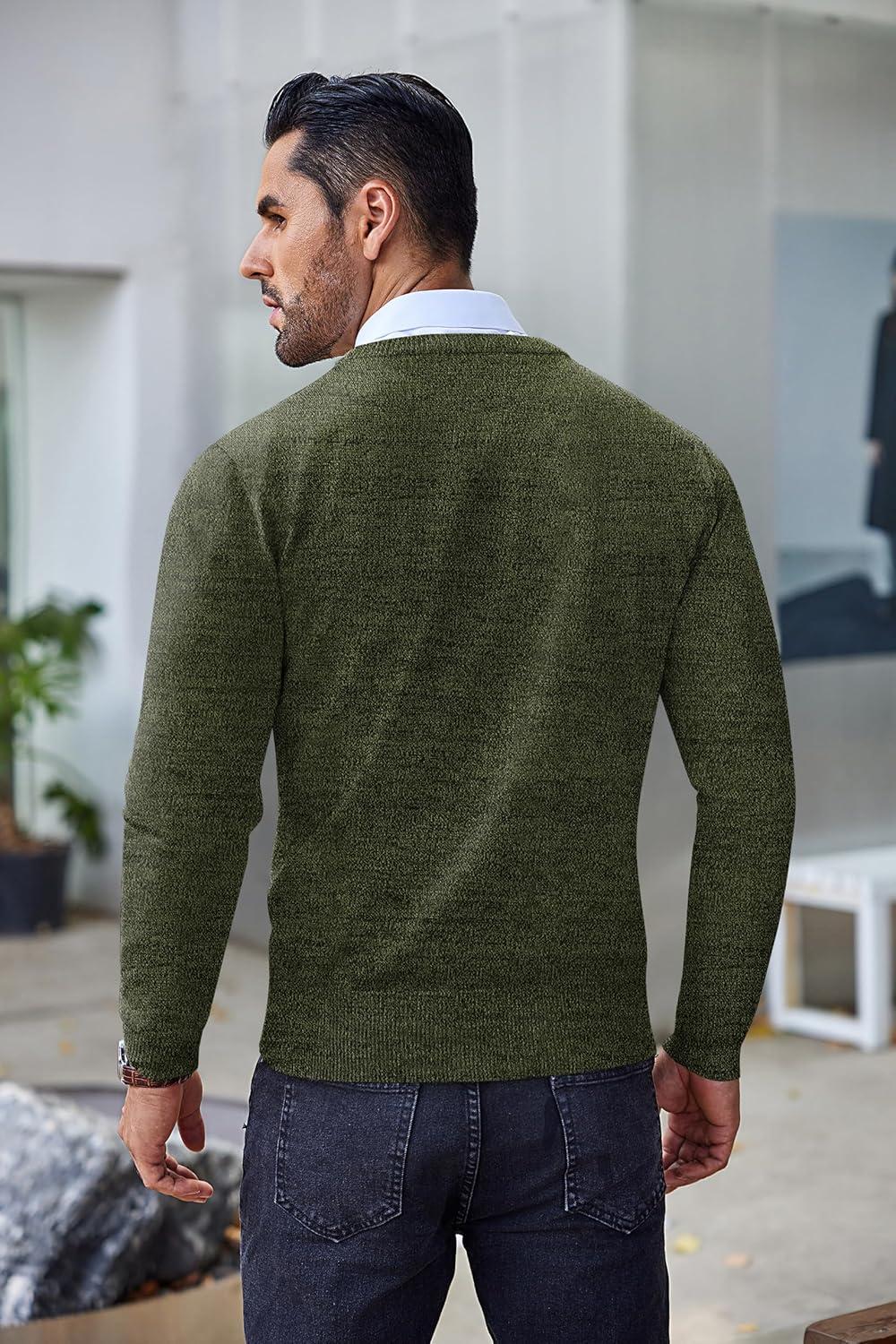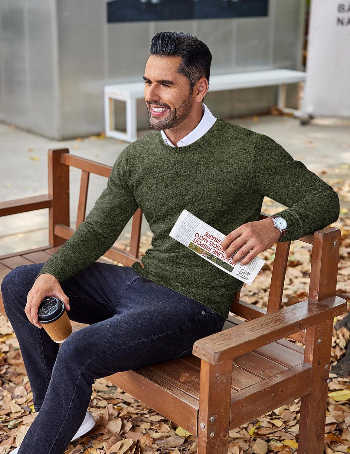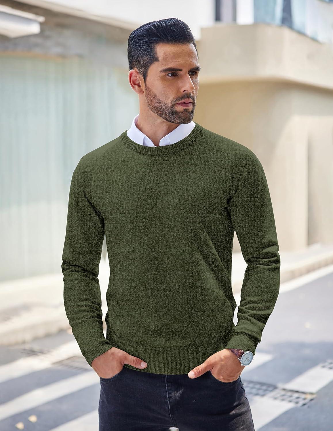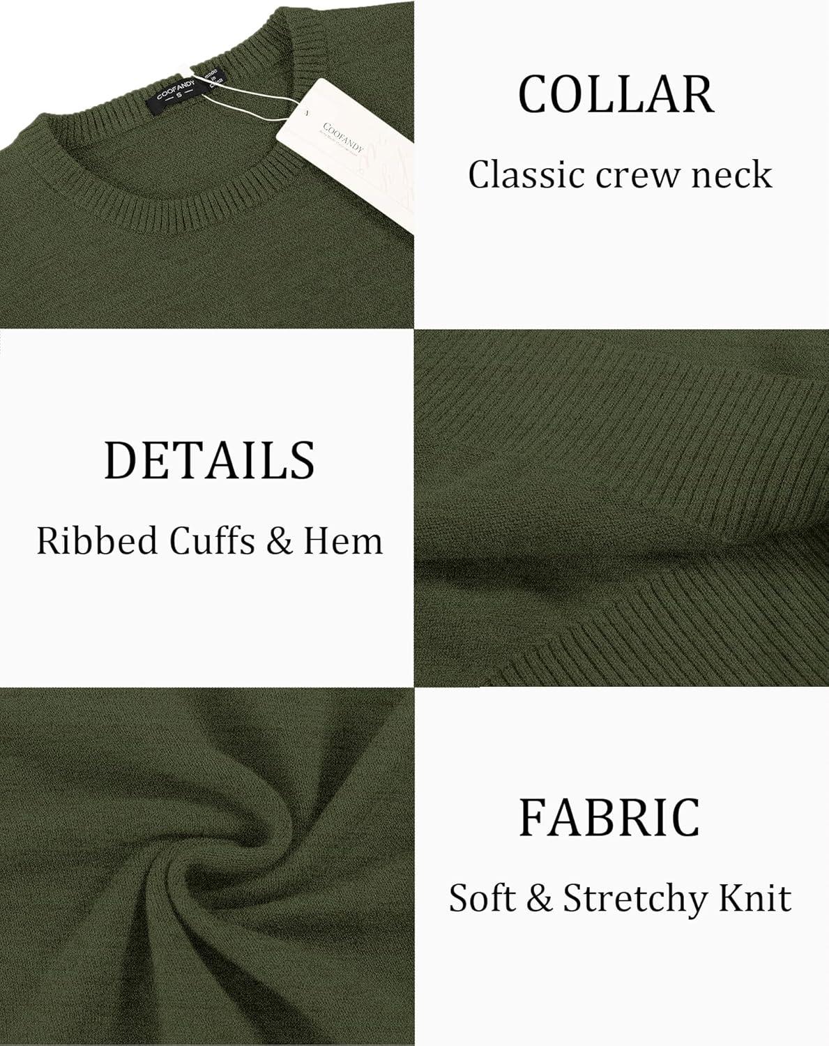 COOFANDY Men’s Crew Neck Sweater Slim Fit Lightweight Sweatshirts Knitted Pullover for Casual Or Dressy Wear(Green/Black (Two-tone Colors))