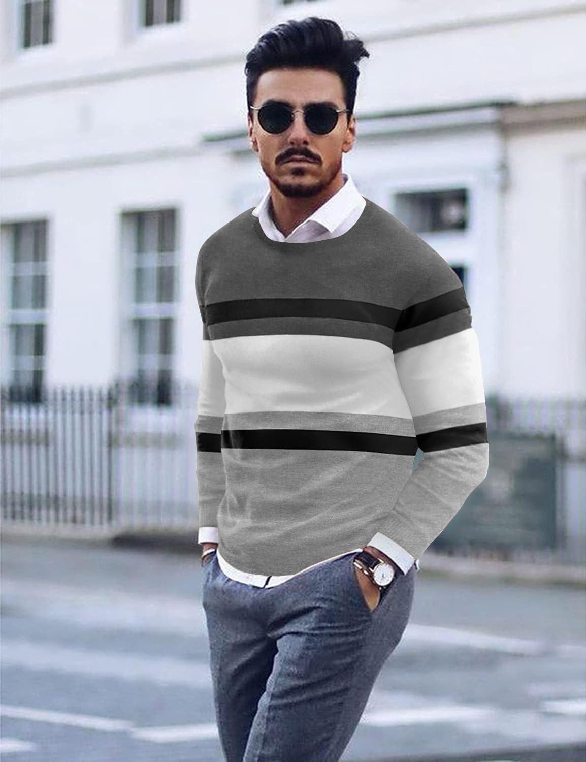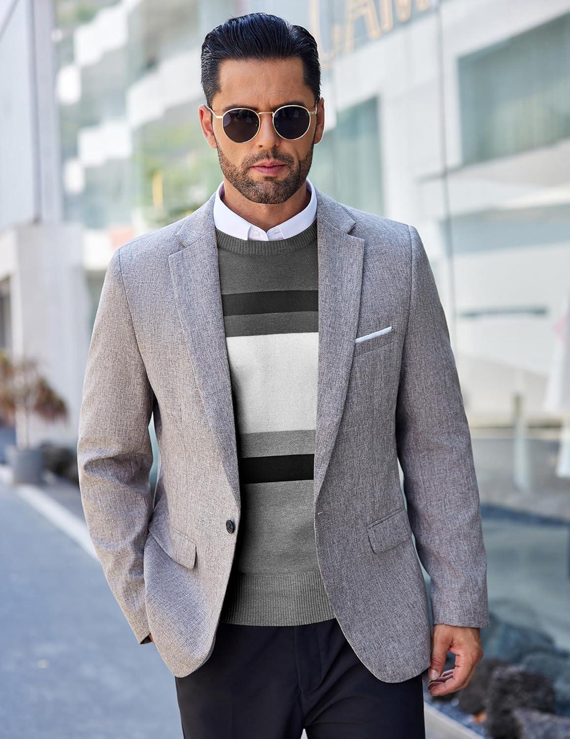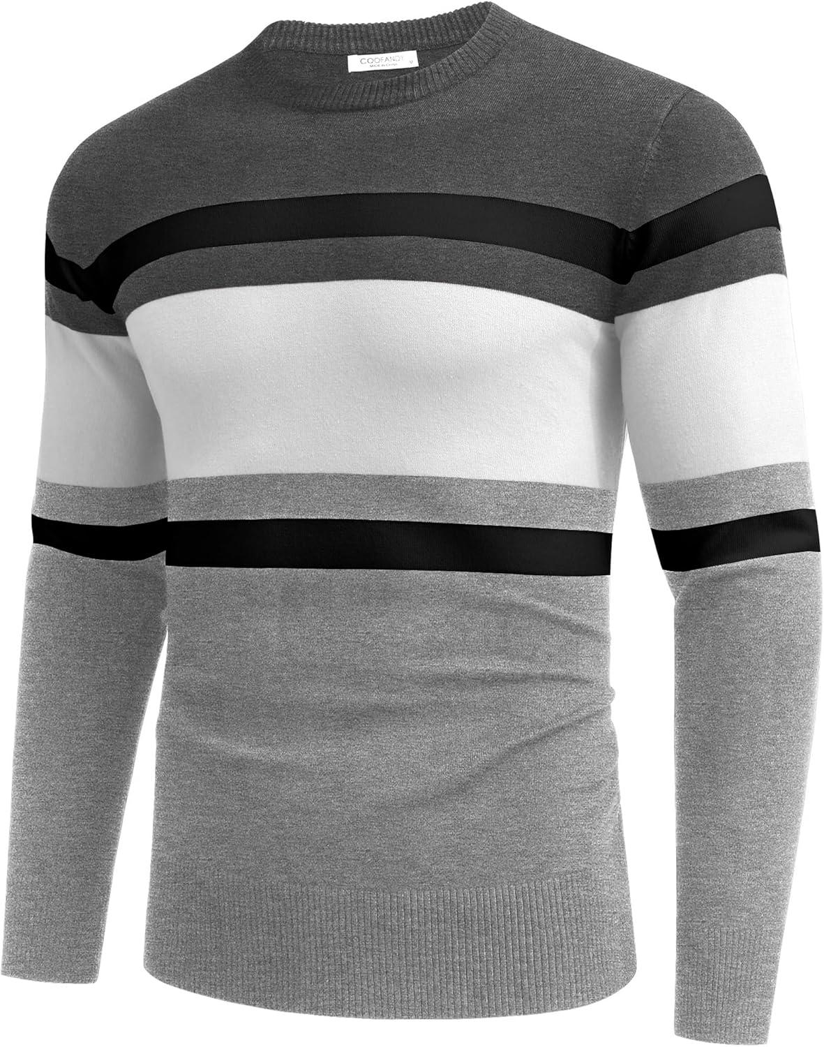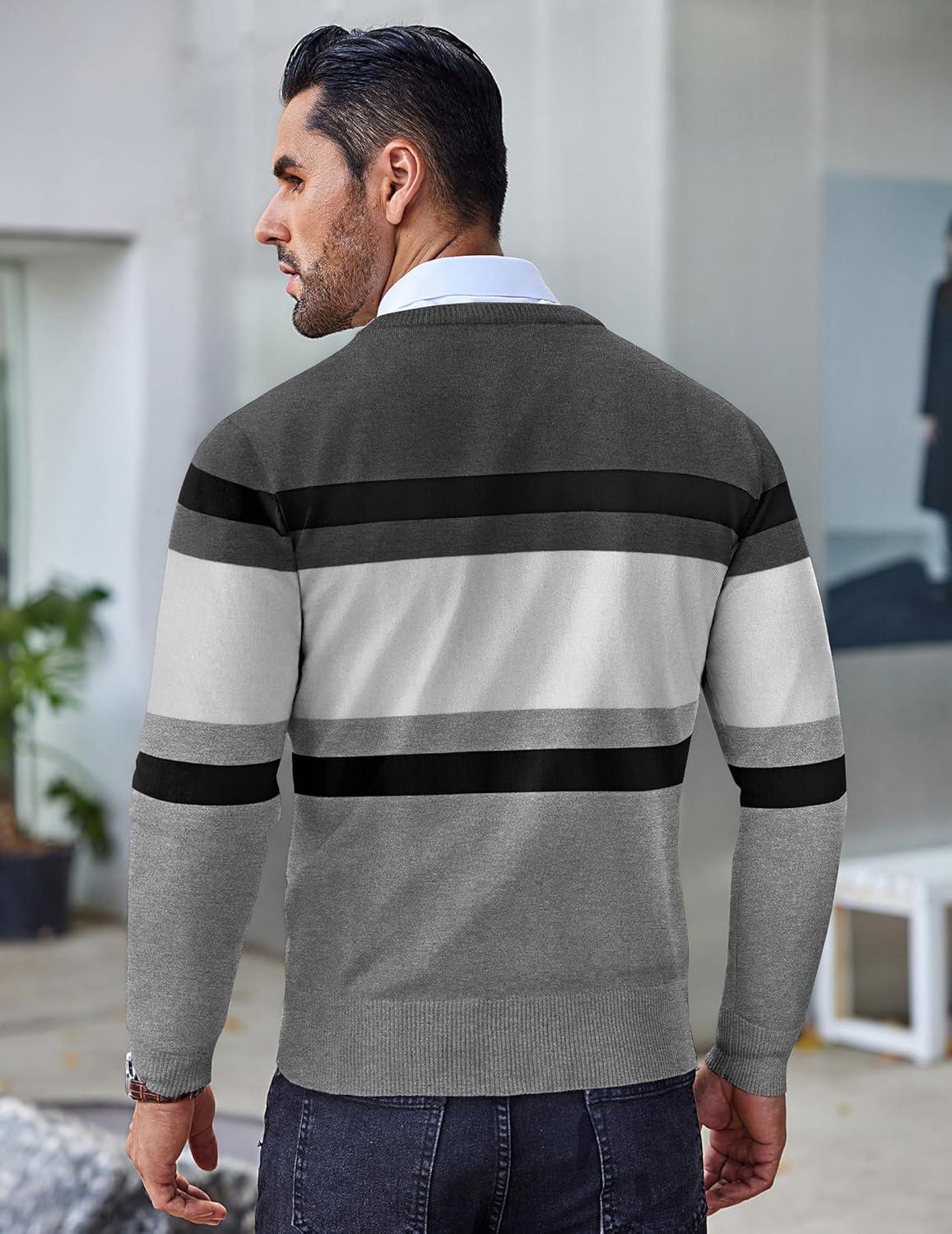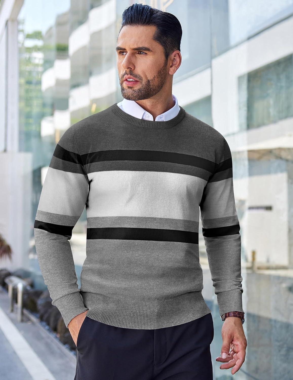 COOFANDY Men’s Crew Neck Sweater Slim Fit Lightweight Sweatshirts Knitted Pullover for Casual Or Dressy Wear(Grey/White)