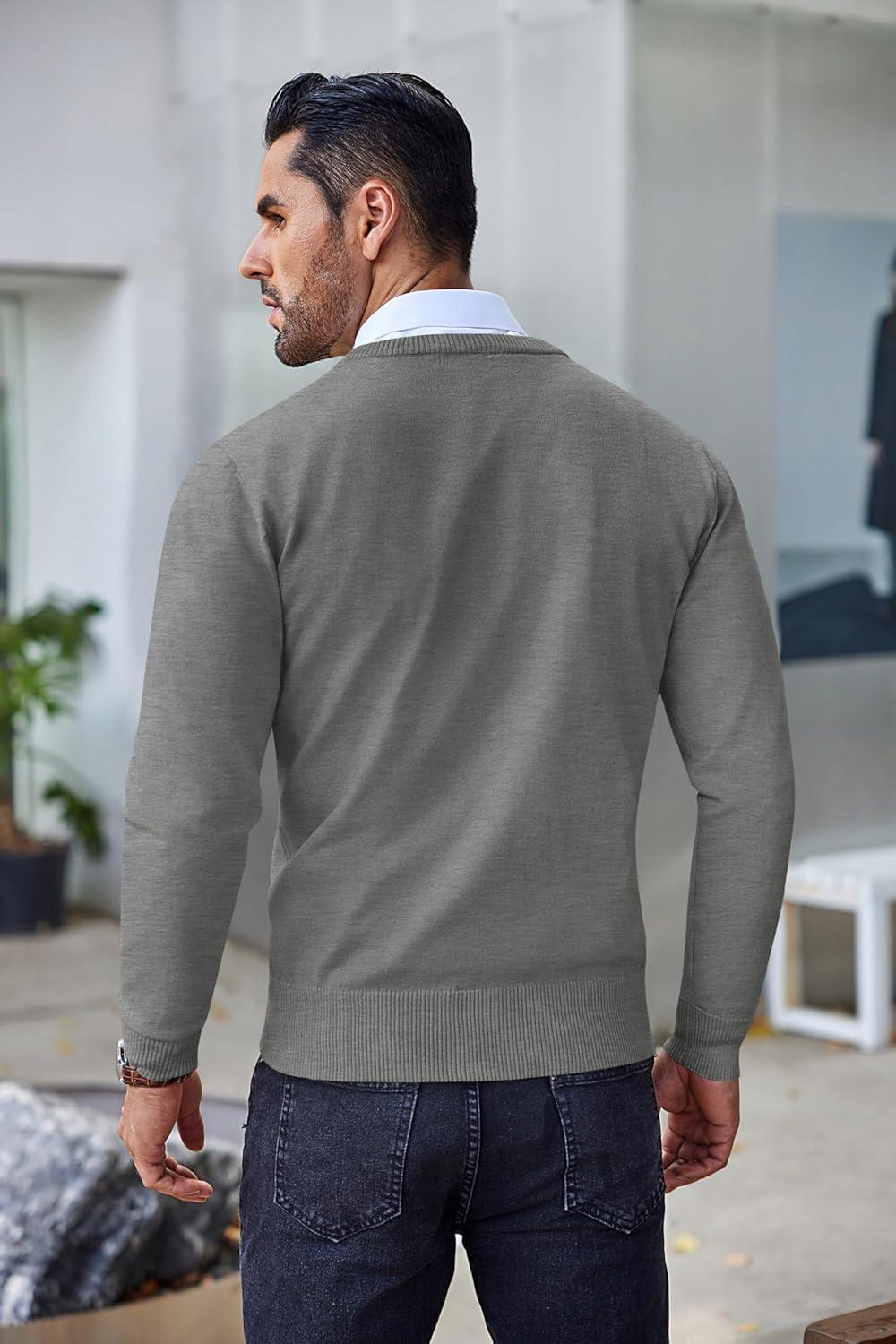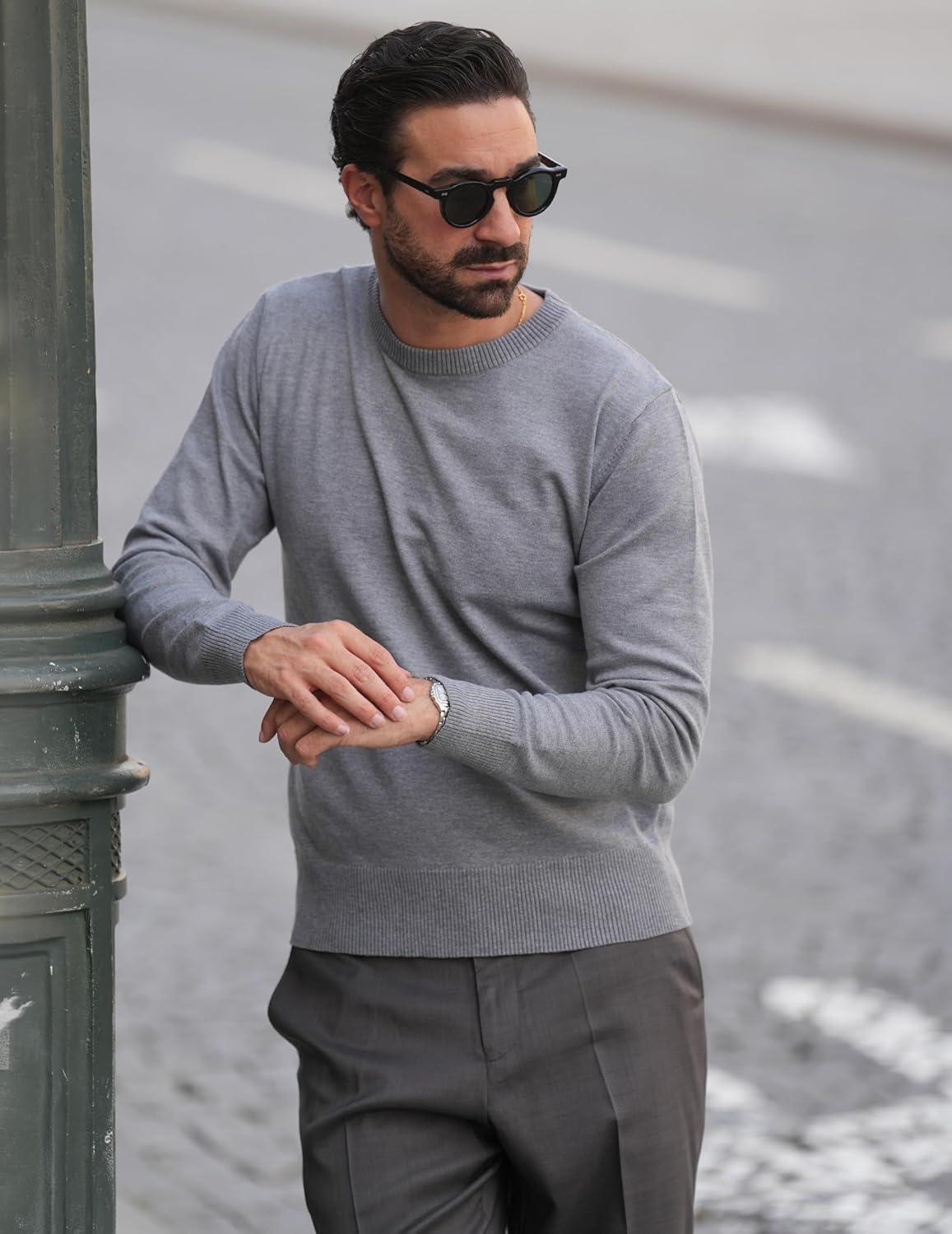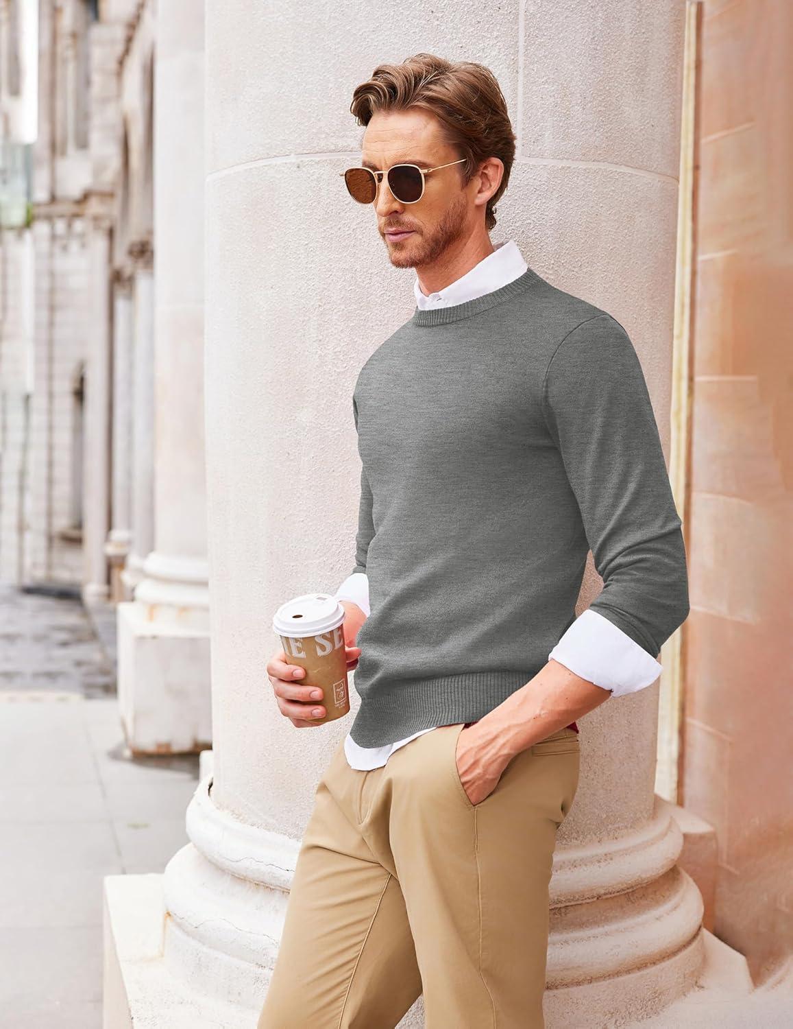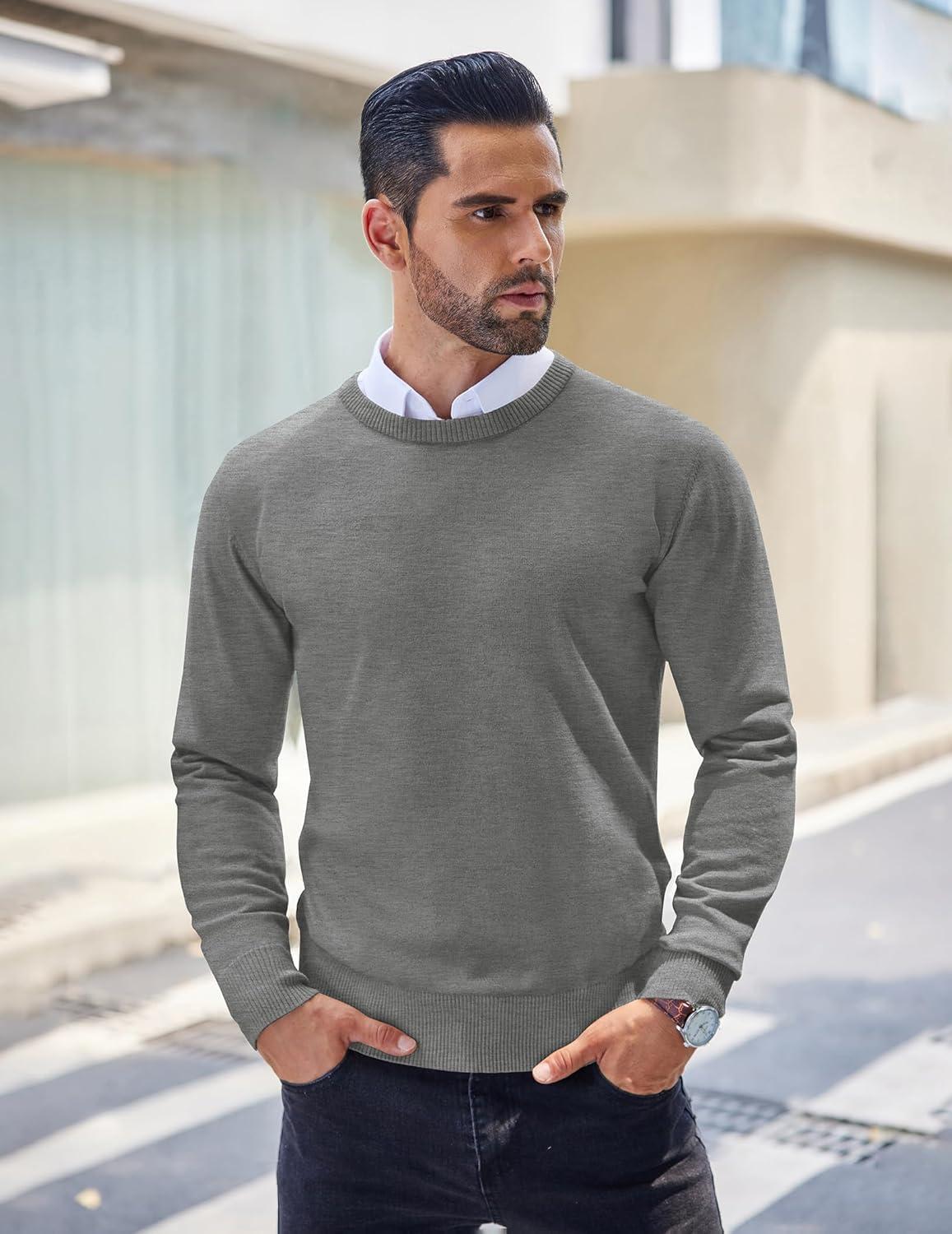 COOFANDY Men’s Crew Neck Sweater Slim Fit Lightweight Sweatshirts Knitted Pullover for Casual Or Dressy Wear(Grey)
