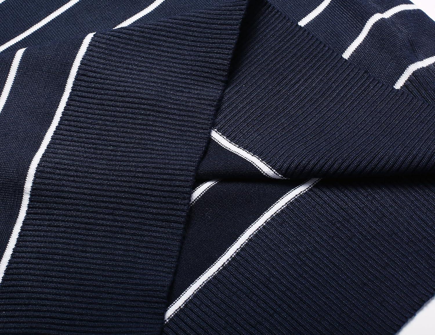 COOFANDY Men’s Crew Neck Sweater Slim Fit Lightweight Sweatshirts Knitted Pullover for Casual Or Dressy Wear(Horizontal Stripes White & Navy Blue)