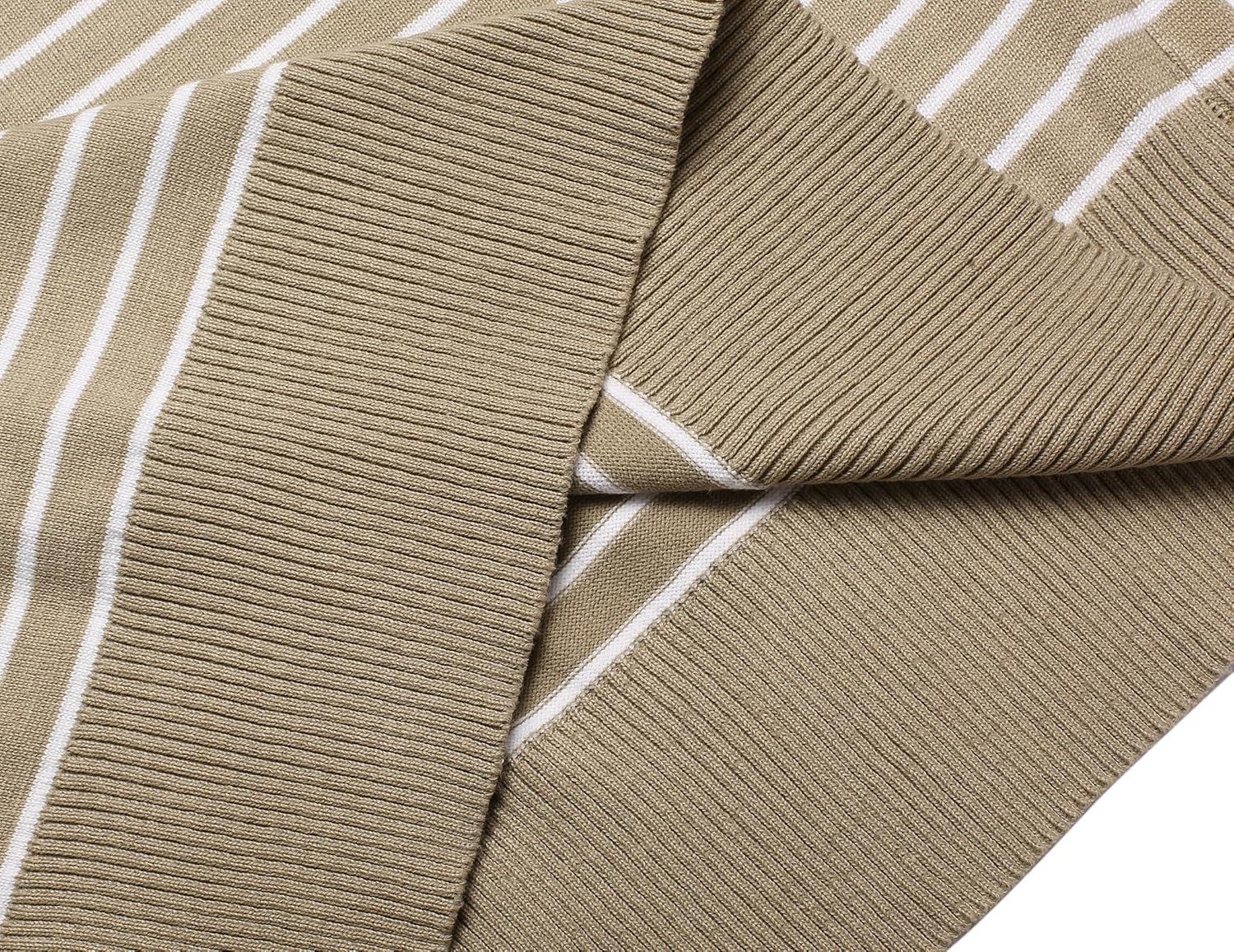 COOFANDY Men’s Crew Neck Sweater Slim Fit Lightweight Sweatshirts Knitted Pullover for Casual Or Dressy Wear(Pinstripes White & Khaki)