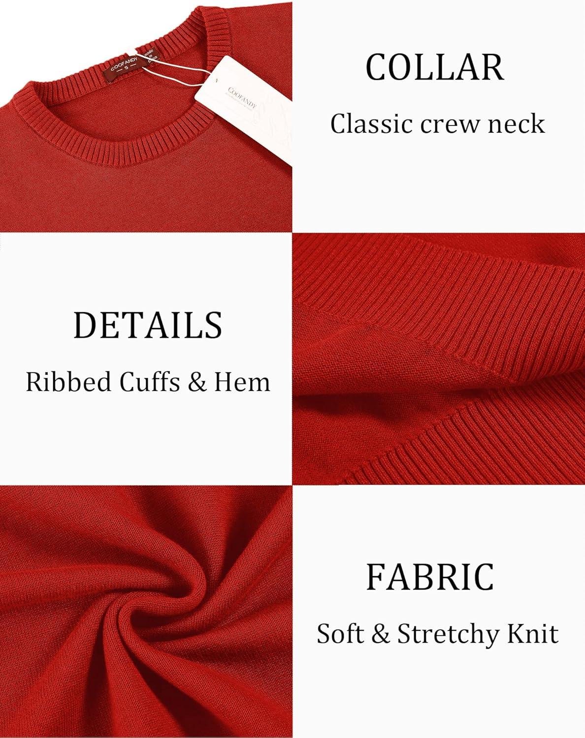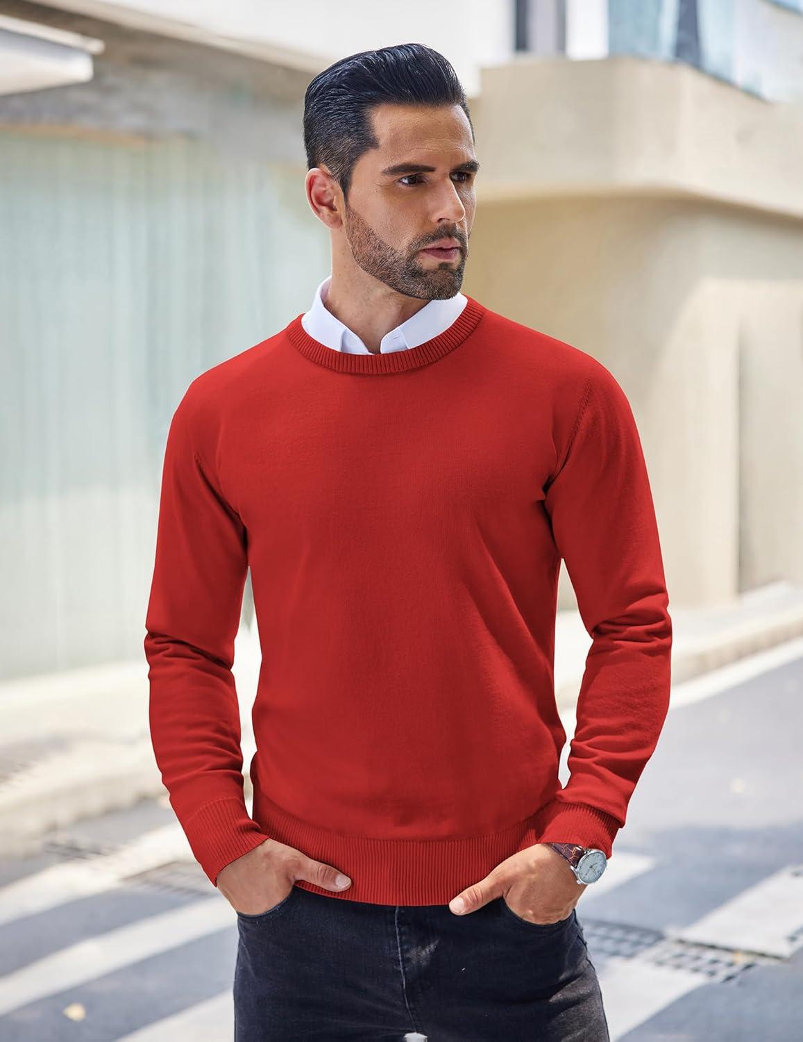 COOFANDY Men’s Crew Neck Sweater Slim Fit Lightweight Sweatshirts Knitted Pullover for Casual Or Dressy Wear(Red)