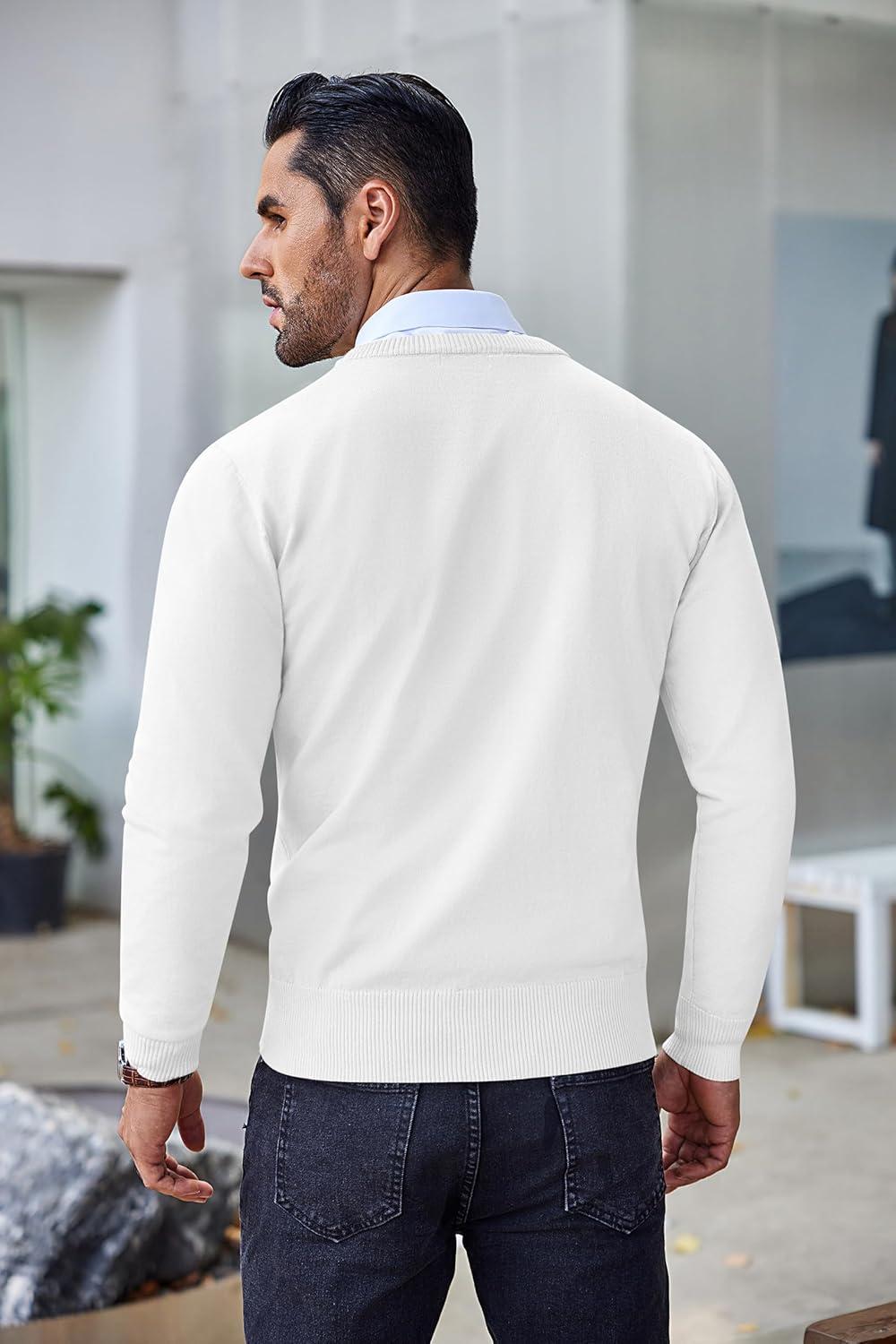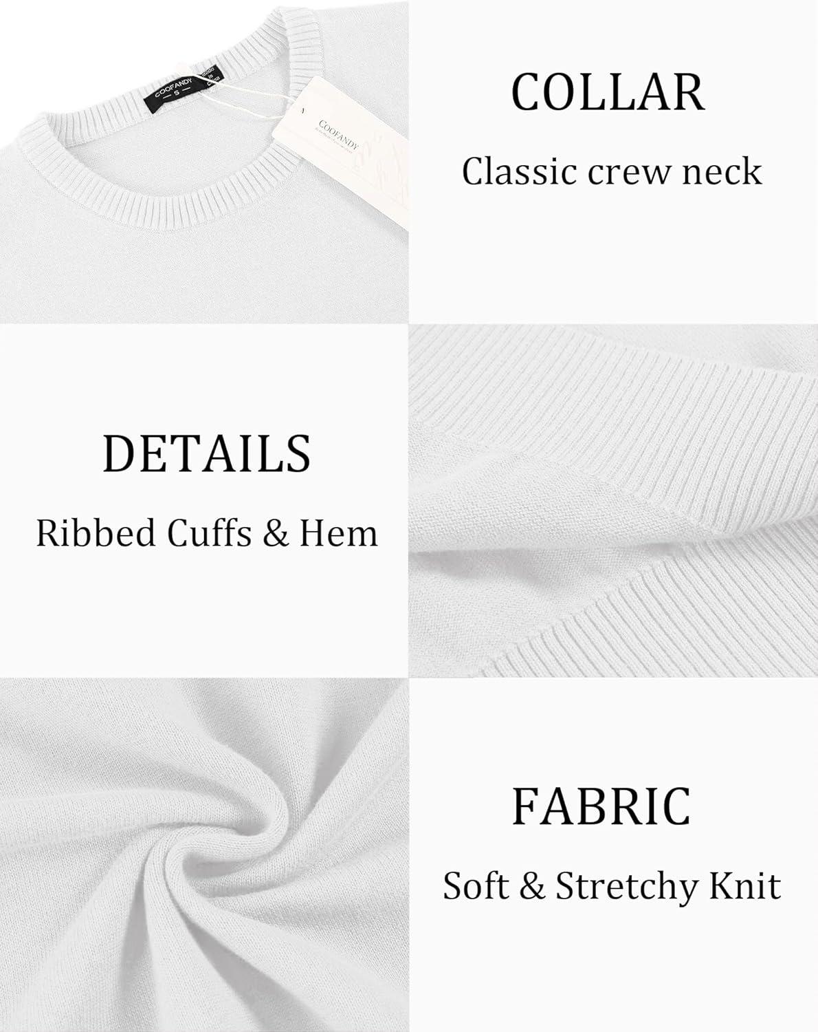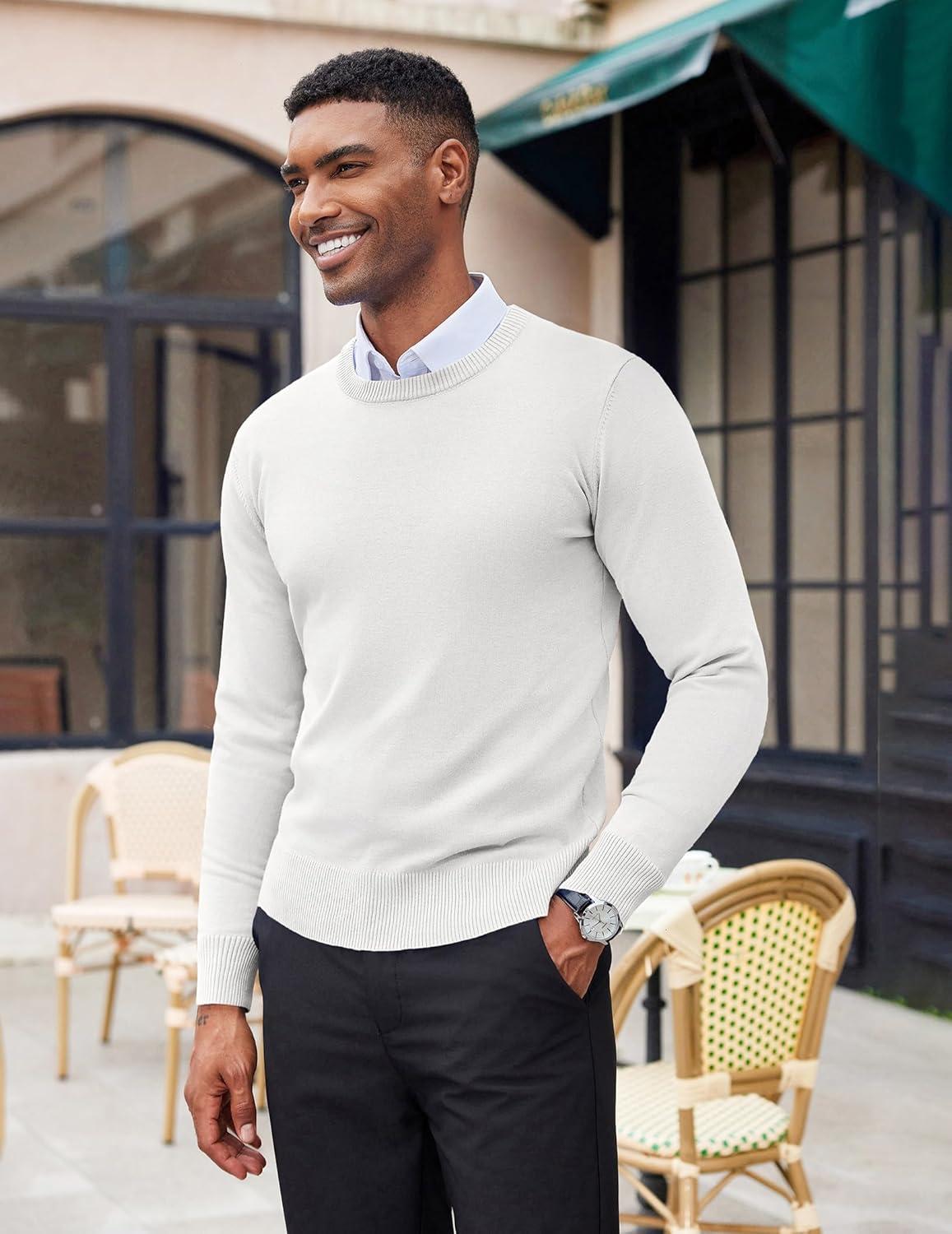 COOFANDY Men’s Crew Neck Sweater Slim Fit Lightweight Sweatshirts Knitted Pullover for Casual Or Dressy Wear(White)