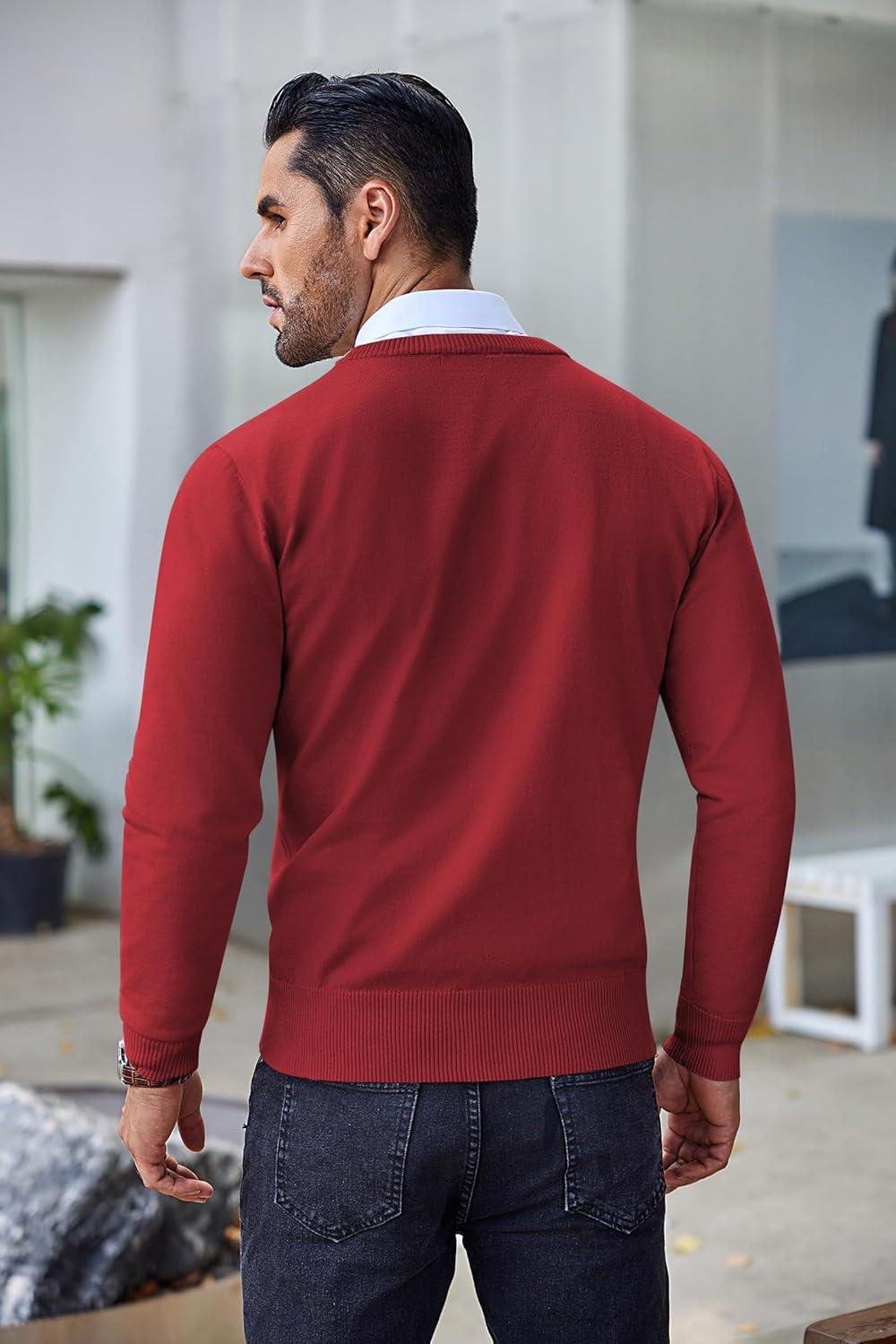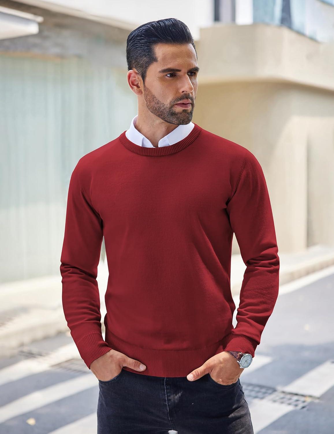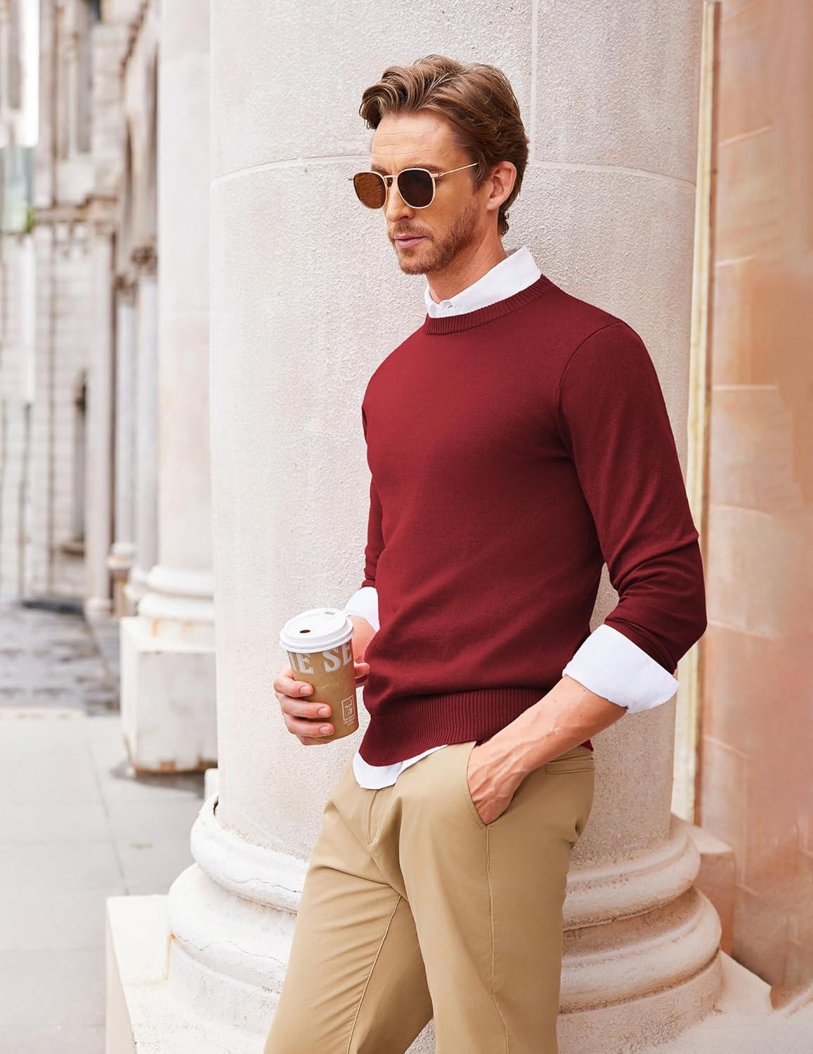 COOFANDY Men’s Crew Neck Sweater Slim Fit Lightweight Sweatshirts Knitted Pullover for Casual Or Dressy Wear(Wine Red)