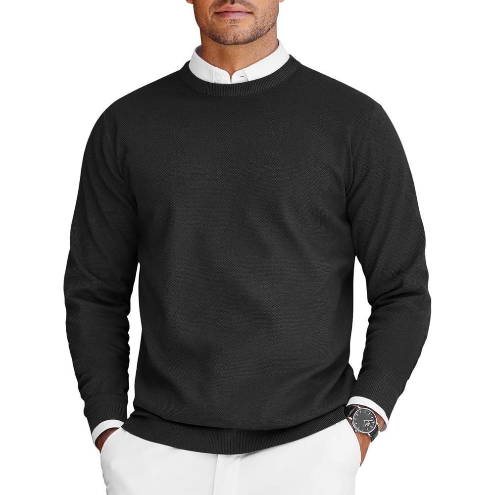 COOFANDY Mens Crew Neck Sweaters Long Sleeve Lightweight Knit Dress Pullover Sweaters(Black)