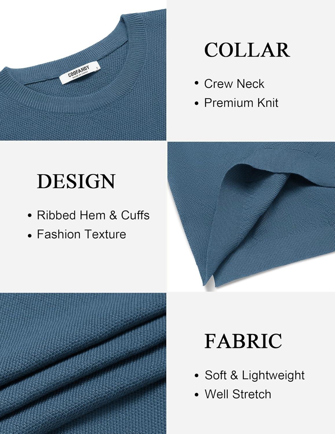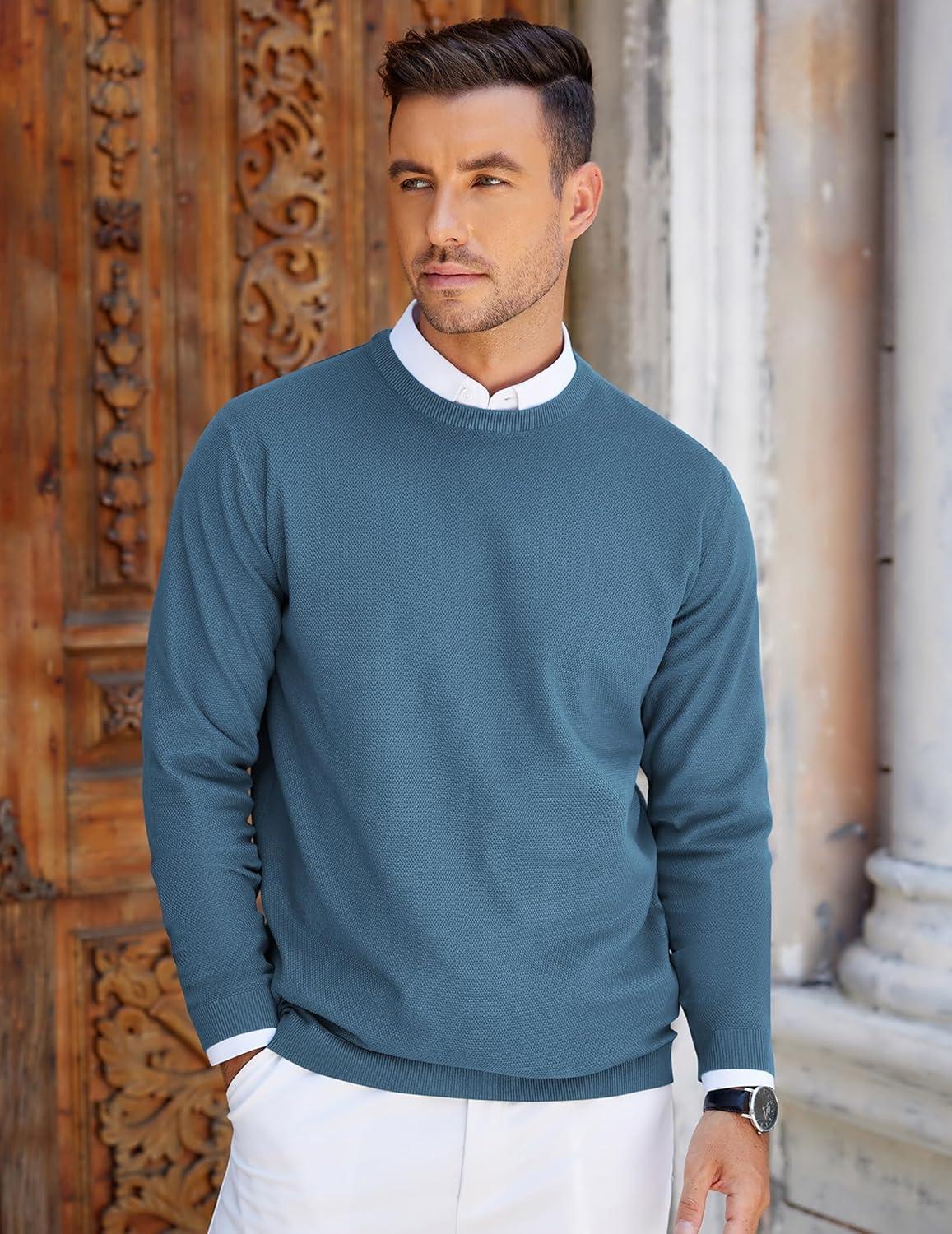 COOFANDY Mens Crew Neck Sweaters Long Sleeve Lightweight Knit Dress Pullover Sweaters(Blue)
