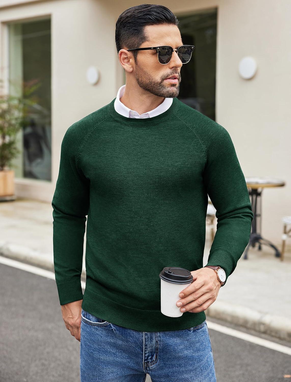 COOFANDY Mens Crew Neck Sweaters Long Sleeve Lightweight Knit Dress Pullover Sweaters(Green)