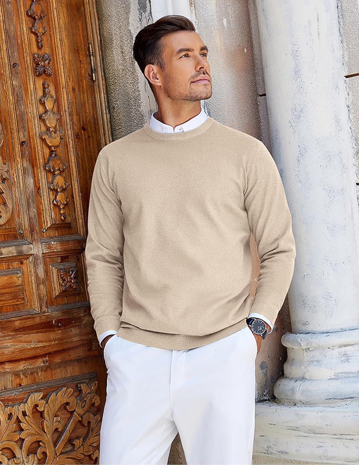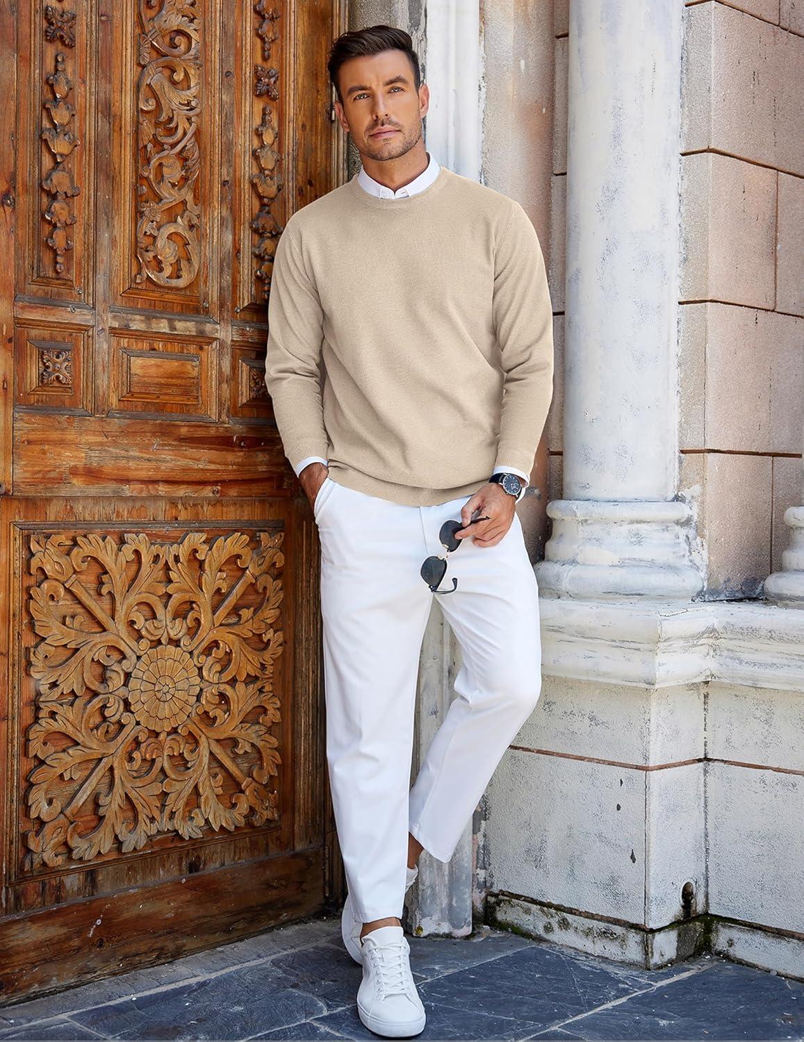 COOFANDY Mens Crew Neck Sweaters Long Sleeve Lightweight Knit Dress Pullover Sweaters(Khaki)