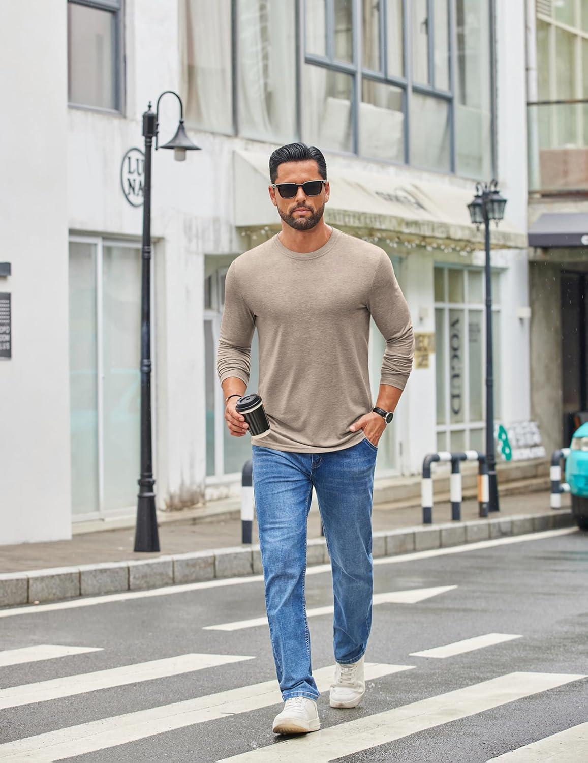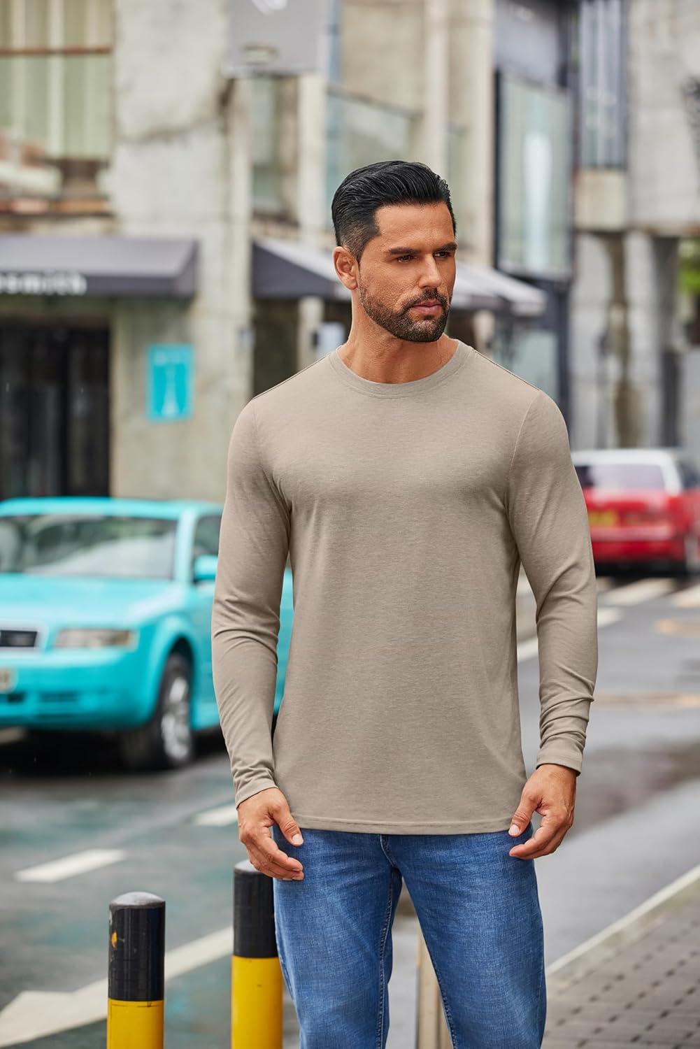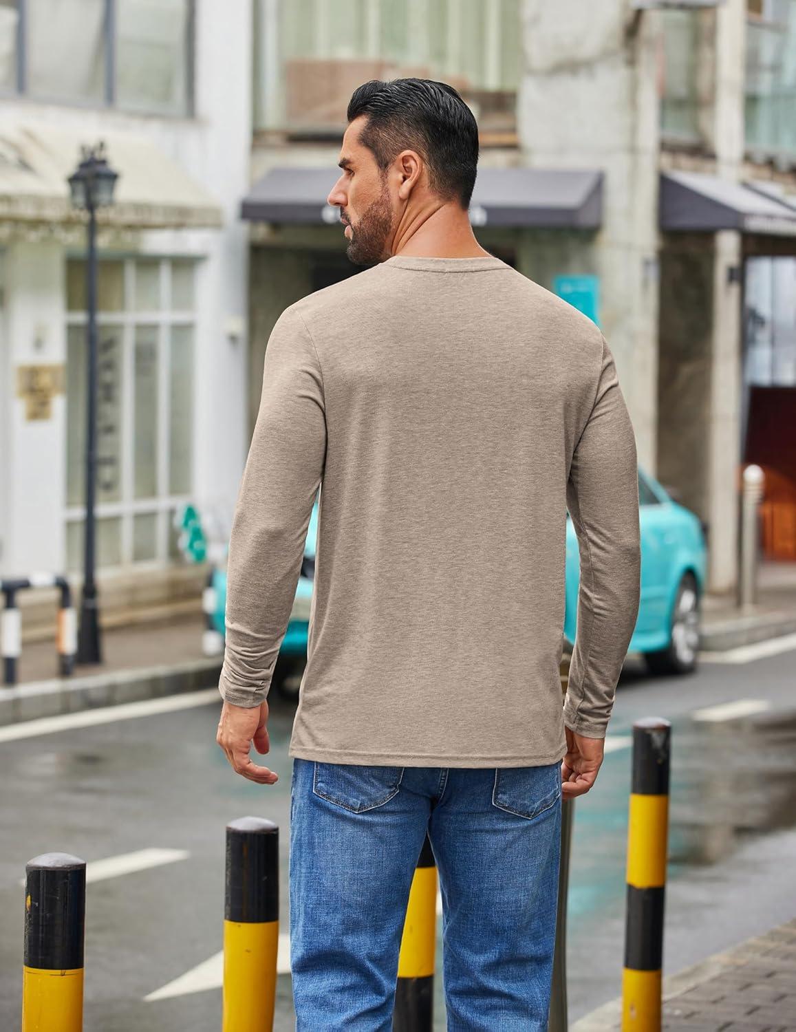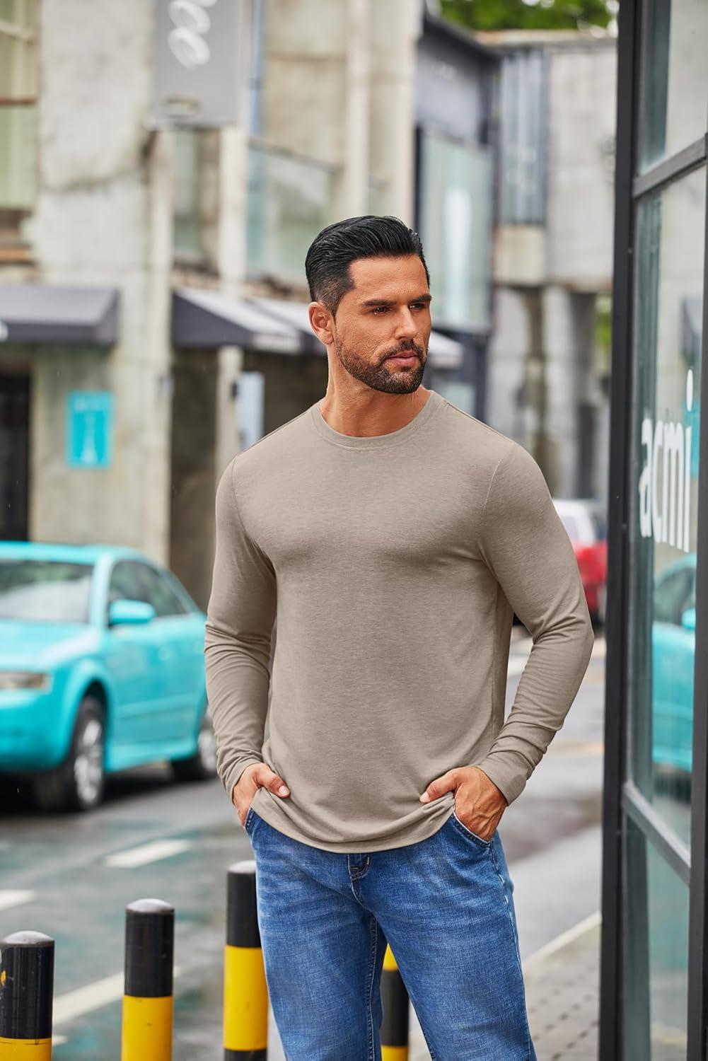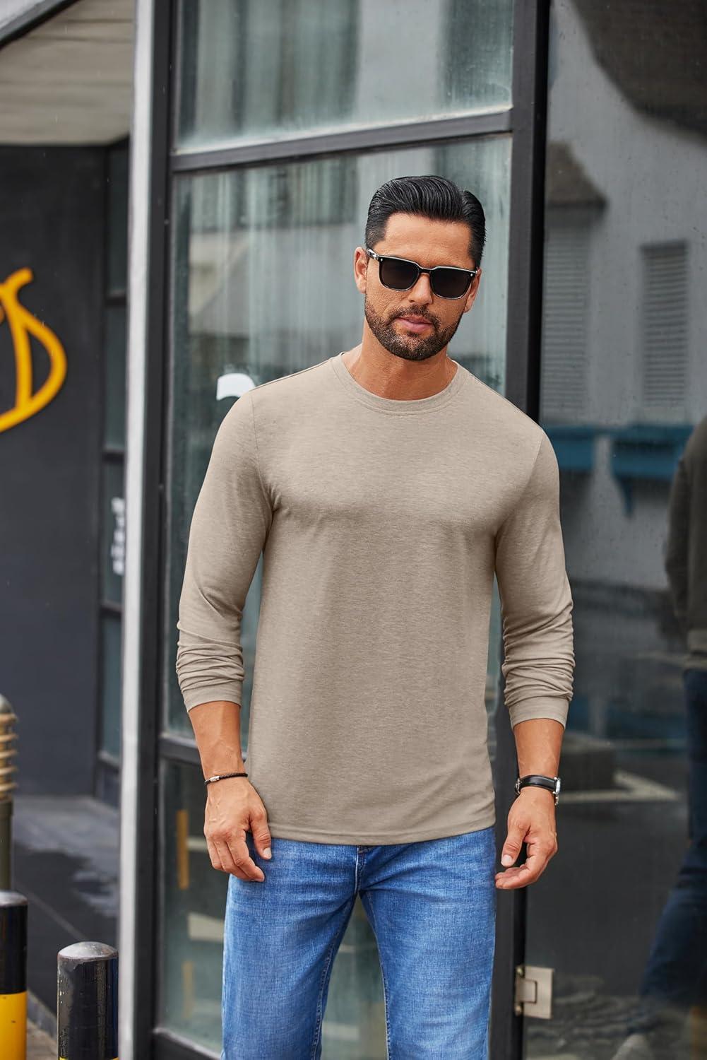 COOFANDY Men’s Crew Neck T-Shirt Long Sleeve Casual Pullover Tees Soft Stretch Basic Tee Shirts(Khaki)