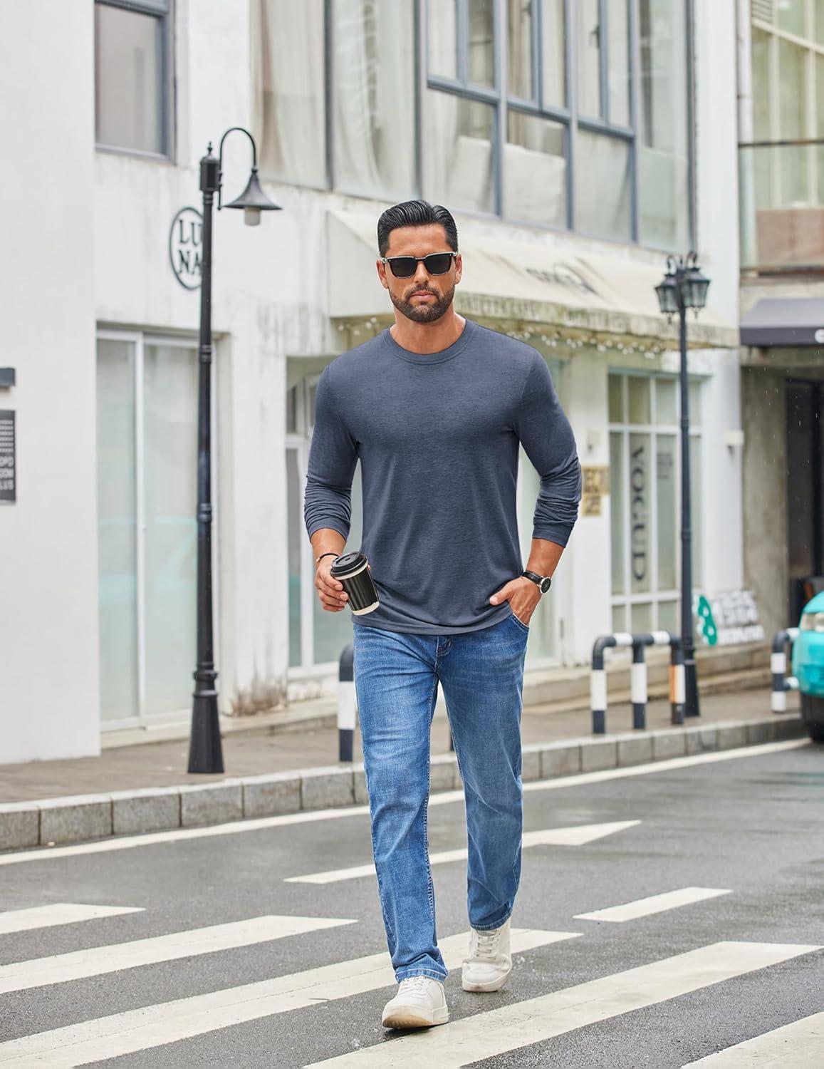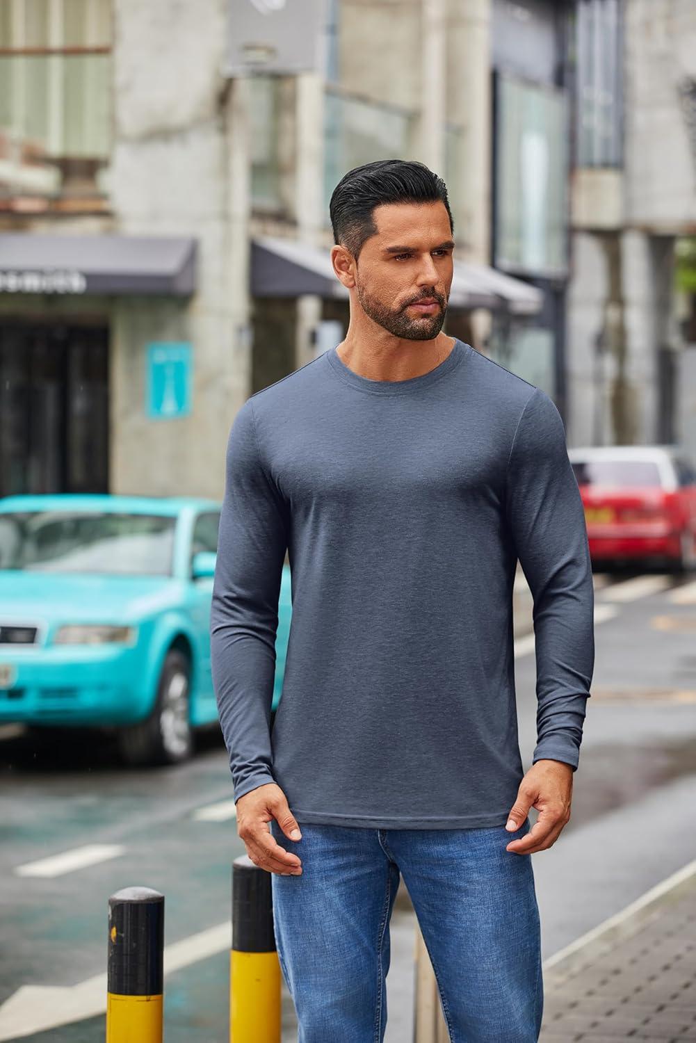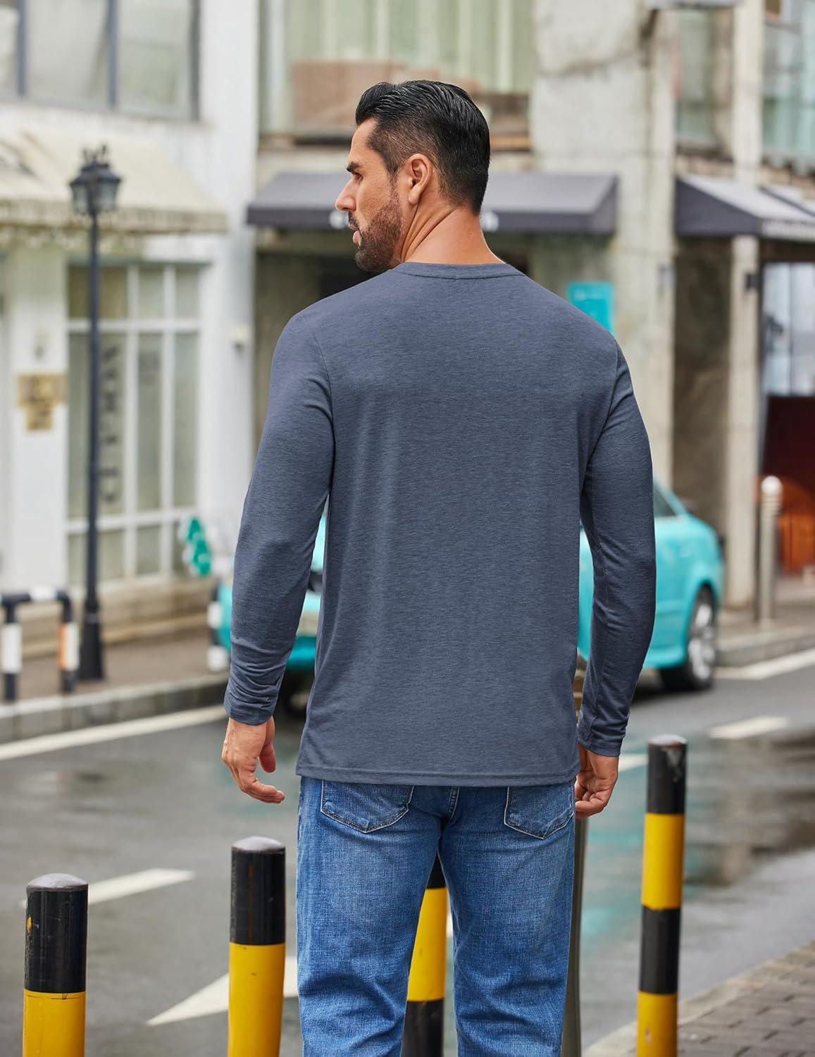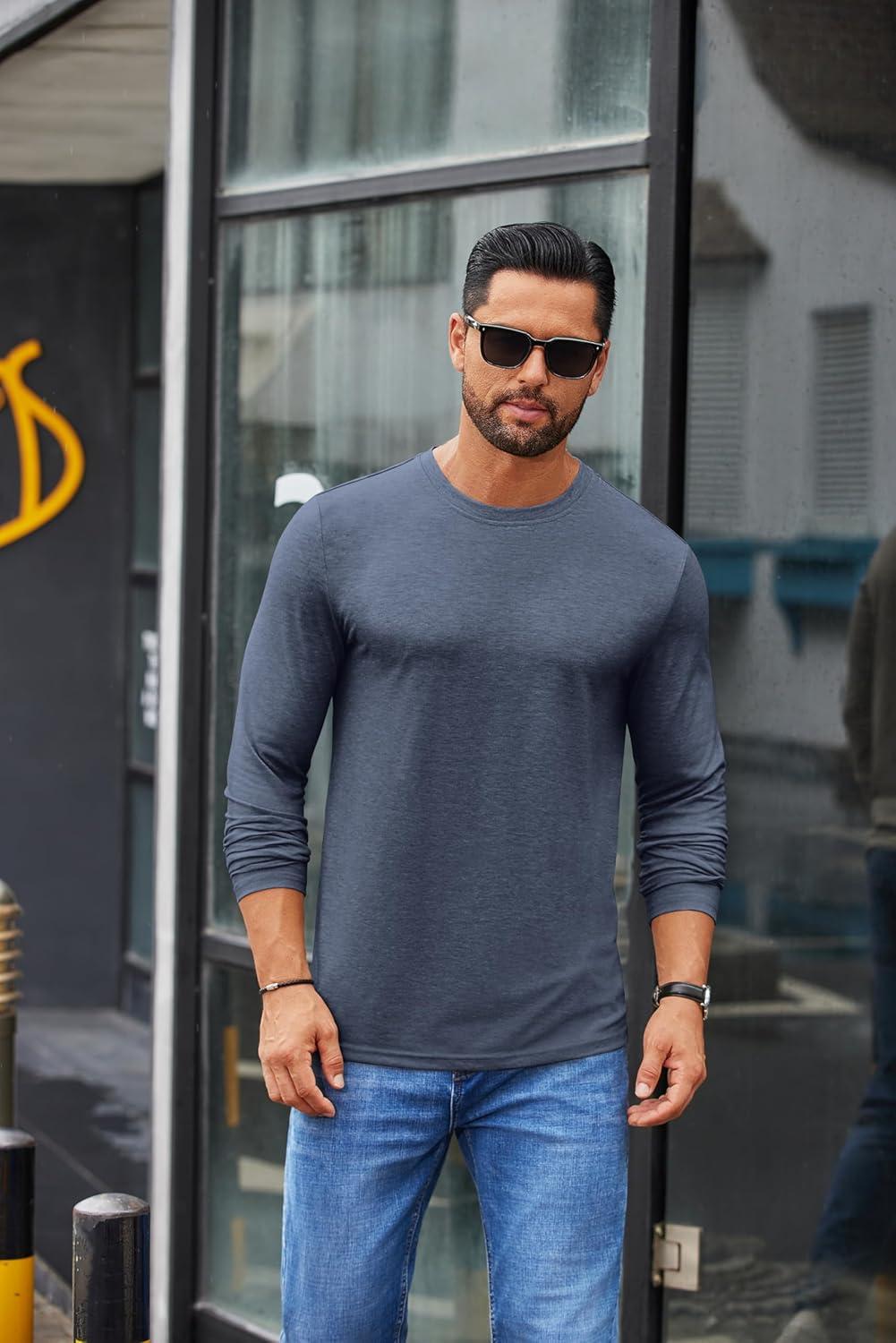 COOFANDY Men’s Crew Neck T-Shirt Long Sleeve Casual Pullover Tees Soft Stretch Basic Tee Shirts(Navy Blue)