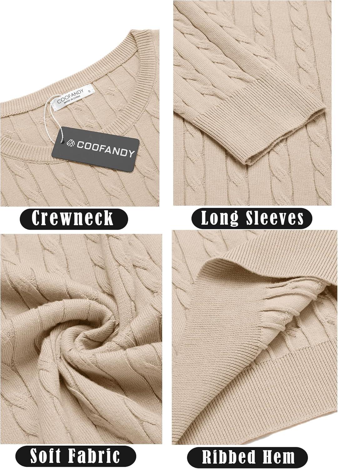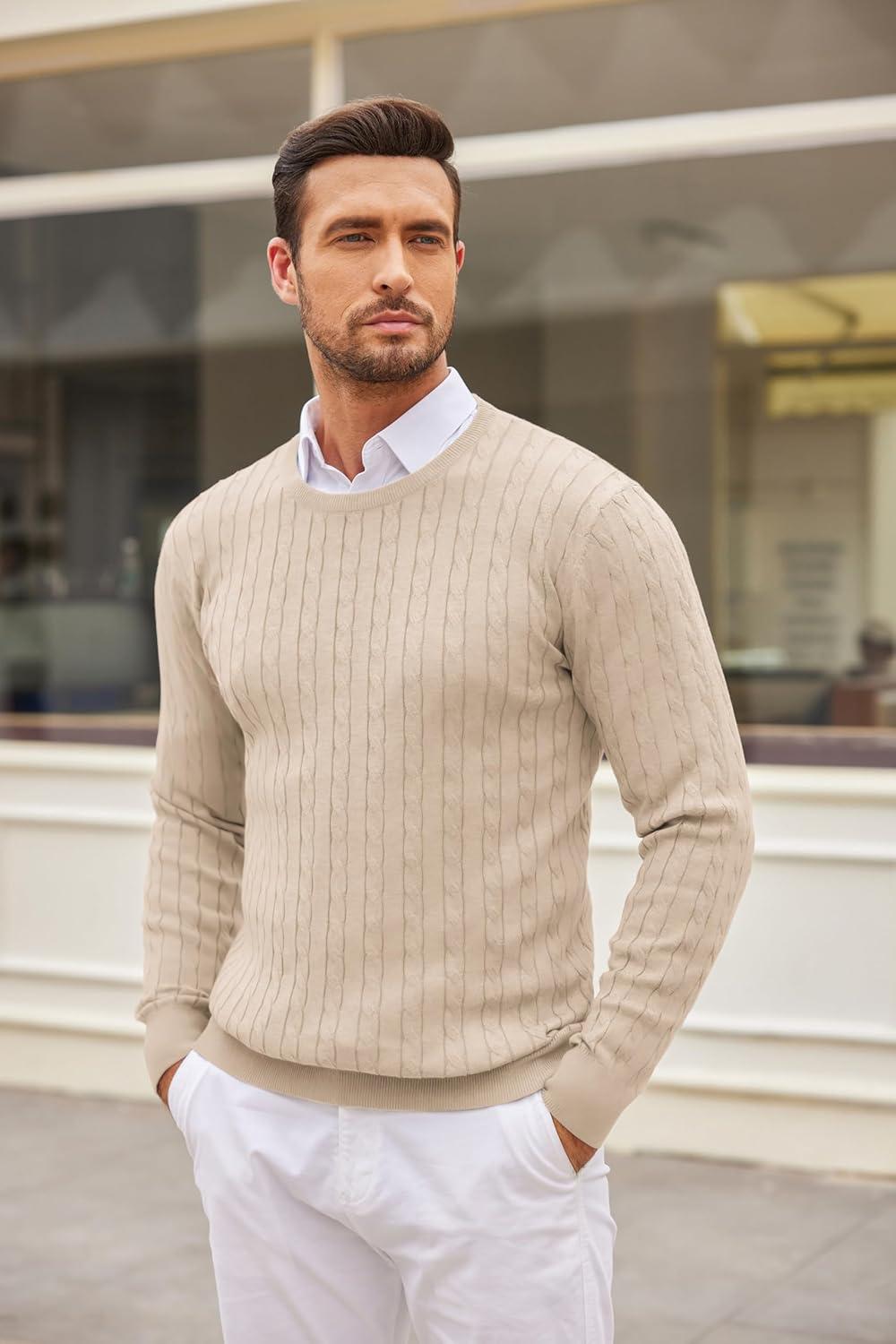 COOFANDY Men’s Crewneck Knit Sweater Slim Fit Lightweight Casual Twist Patterned Cable Knitted Pullover